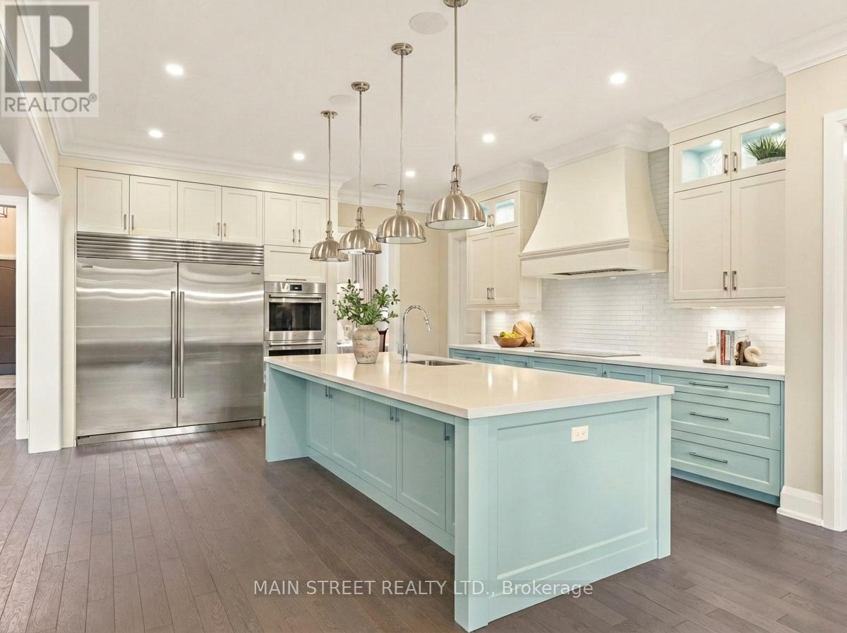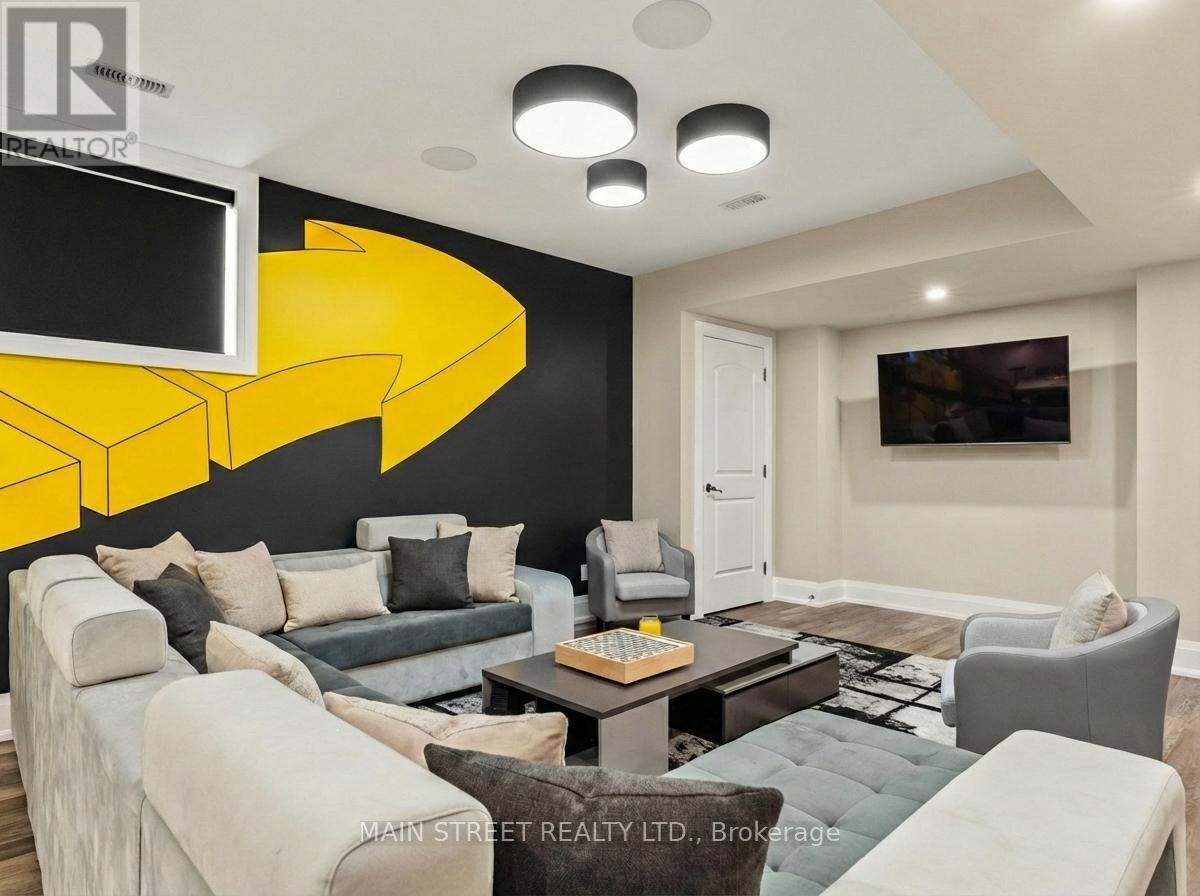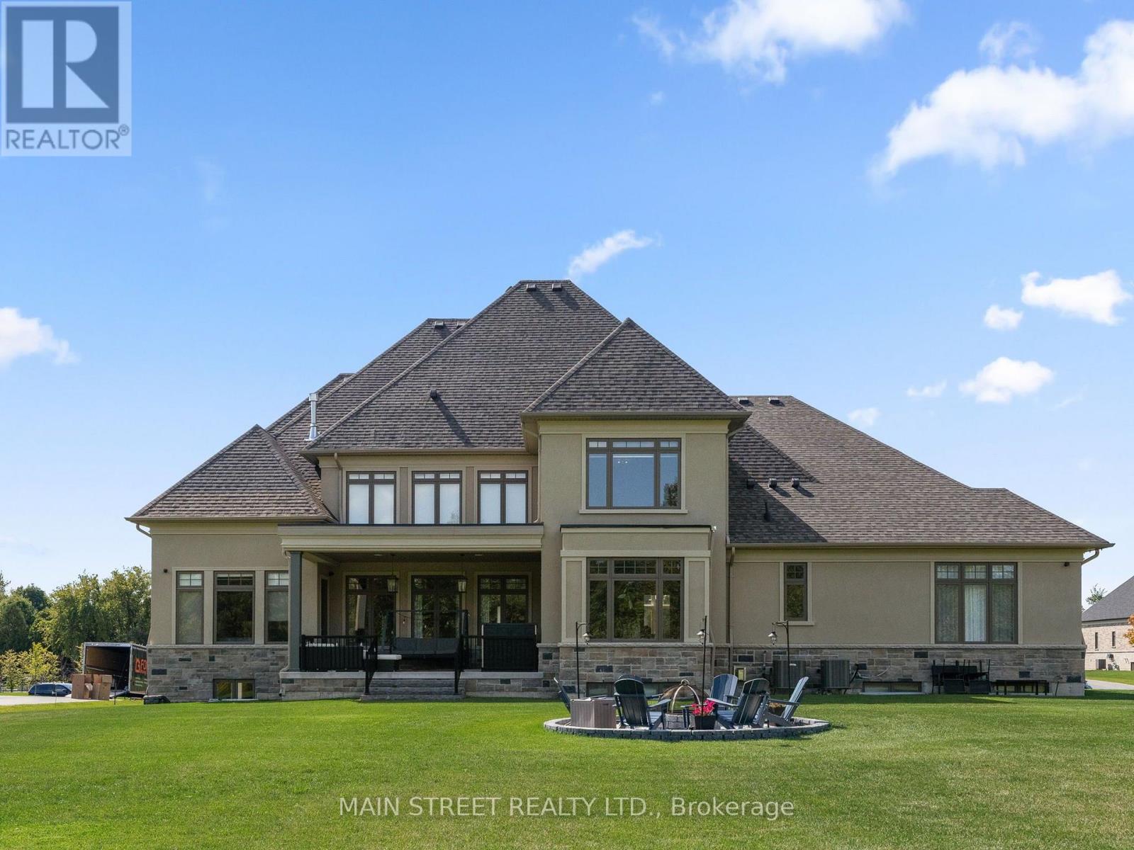 Experience elevated living in this 8,000+ sq. ft. custom-built estate set on a prestigious ~1-acre lot backing onto the renowned Deer Creek Golf Course. Thoughtfully designed with 6 bedrooms, 7 bathrooms, and 3 kitchens, this residence blends timeless elegance with state-of-the-art technology. The main floor primary retreat showcases two expansive walk-in closets, and a spa-inspired ensuite with freestanding tub, oversized shower, and integrated Sonos sound. A main floor nanny/in-law suite is a private haven for family or guests. At the heart of the home, the chef's kitchen boasts Wolf induction cooktop and double ovens, oversized SubZero refrigerator and freezer, Cove dishwasher, built-in microwave, and oversized island. A walk-in pantry, dedicated coffee bar, and sunlit breakfast area complete this culinary masterpiece. Walk out to a covered patio with Sonos speakers, overlooking manicured grounds with irrigation and a custom fire pit. The main level also showcases an open living room with soaring 22-foot coffered ceilings and gas fireplace, a formal dining room, private office, oversized mudroom with garage access, and main floor laundry. The lower level is designed for unparalleled entertaining and wellness, boasting 9-foot ceilings, heated floors throughout, a gym, a pre-wired theatre or golf simulator room, a spacious custom recreation space, custom kitchenette/bar, and abundant storage. A private basement apartment with separate entrance includes a full custom kitchen, bedroom with walk-in closet, 5-piece bath, dedicated laundry, living room, and office, offering multi-generational living. Smart home features include Sonos sound, UniFi extenders, custom window coverings, motorized roller shades, and full security system. Exterior highlights feature a 3-car garage, dual furnaces & A/Cs, professional landscaping, and expansive outdoor living spaces. This rare offering combines luxury, technology, and family function in one of Ajax's most coveted settings. (id:64974)