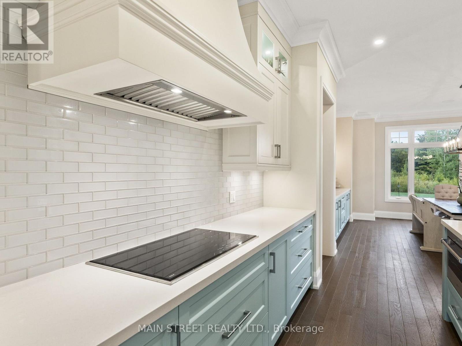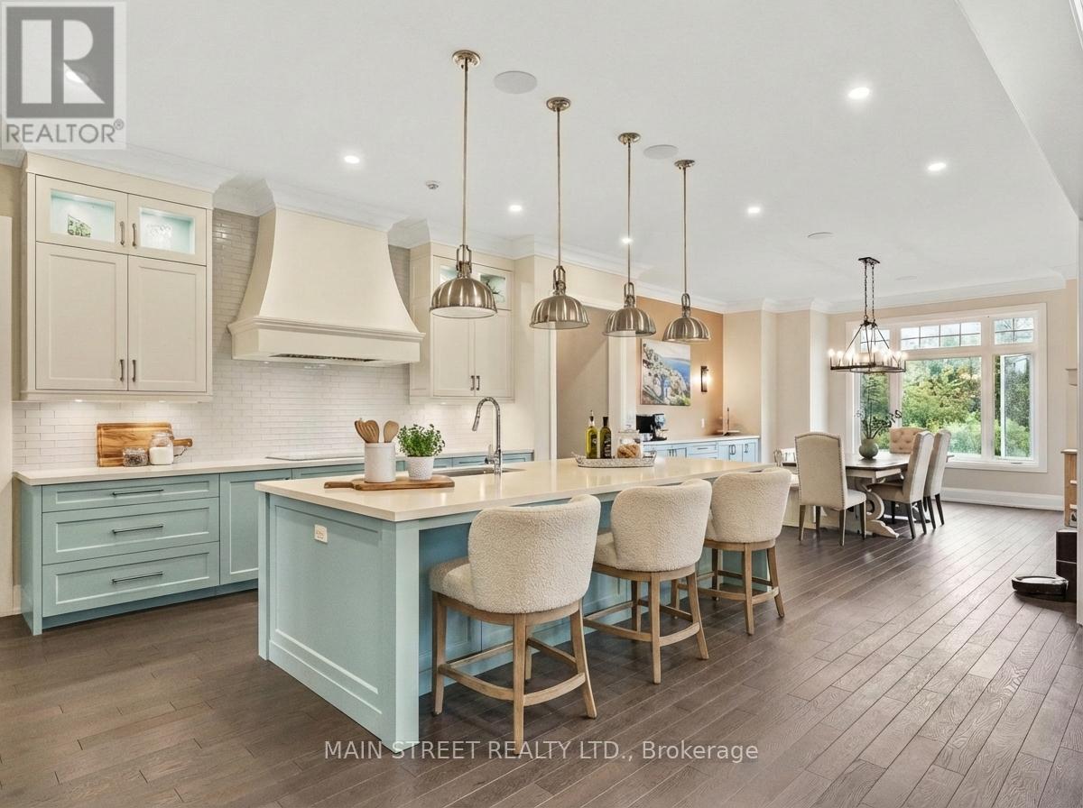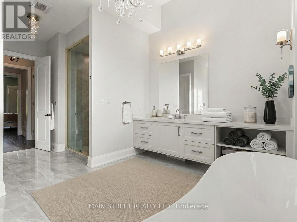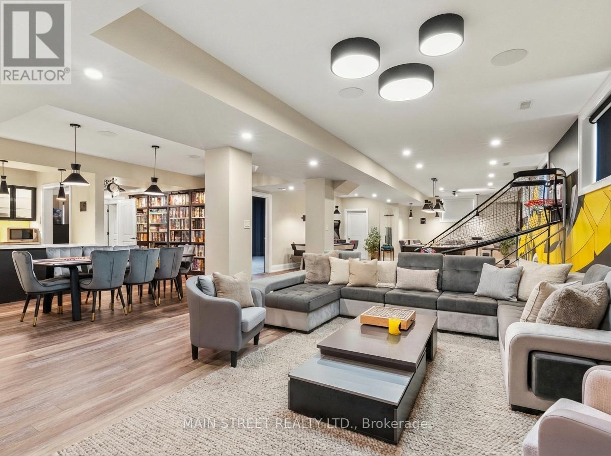 Experience elevated living in this 8,000+ sq. ft. custom-built estate set on a prestigious ~1-acre lot backing onto the renowned Deer Creek Golf Course. Thoughtfully designed with 6 bedrooms, 7 bathrooms, and 3 kitchens, this residence blends timeless elegance with state-of-the-art technology. The main floor primary retreat showcases two expansive walk-in closets, and a spa-inspired ensuite with freestanding tub, oversized shower, and integrated Sonos sound. A main floor nanny/in-law suite is a private haven for family or guests. At the heart of the home, the chef's kitchen boasts Wolf induction cooktop and double ovens, oversized SubZero refrigerator and freezer, Cove dishwasher, built-in microwave, and oversized island. A walk-in pantry, dedicated coffee bar, and sunlit breakfast area complete this culinary masterpiece. Walk out to a covered patio with Sonos speakers, overlooking manicured grounds with irrigation and a custom fire pit. The main level also showcases an open living room with soaring 22-foot coffered ceilings and gas fireplace, a formal dining room, private office, oversized mudroom with garage access, and main floor laundry. The lower level is designed for unparalleled entertaining and wellness, boasting 9-foot ceilings, heated floors throughout, a gym, a pre-wired theatre or golf simulator room, a spacious custom recreation space, custom kitchenette/bar, and abundant storage. A private basement apartment with separate entrance includes a full custom kitchen, bedroom with walk-in closet, 5-piece bath, dedicated laundry, living room, and office, offering multi-generational living. Smart home features include Sonos sound, UniFi extenders, custom window coverings, motorized roller shades, and full security system. Exterior highlights feature a 3-car garage, dual furnaces & A/Cs, professional landscaping, and expansive outdoor living spaces. This rare offering combines luxury, technology, and family function in one of Ajax's most coveted settings. (id:64974)