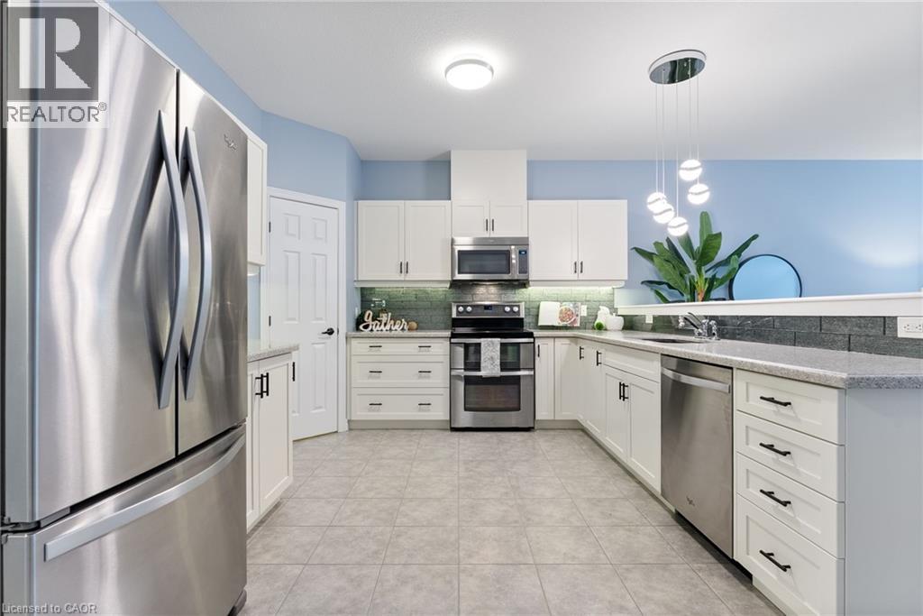 Welcome to 21 Finton Lane in the desirable Binbrook Heights community, an adult-lifestyle bungalow townhome offering comfort, convenience, and low-maintenance living. This rare layout features 2 bedrooms on the main floor with the option of a third in the finished lower level, along with 3 full bathrooms. The main level boasts a bright, open-concept design with a gourmet kitchen complete with granite countertops, stylish backsplash, corner pantry, and ample cabinetry for storage. The spacious family and dining room feature laminate flooring and direct access to your private backyard retreat. The spacious primary bedroom includes laminate flooring, a large walk-in closet, and a private 3-piece ensuite. A second bedroom and additional 3-piece bath complete this level, making one-floor living effortless. A newly installed chairlift provides easy access to the lower level, where you’ll find a cozy gas fireplace, den/flex space that could serve as a third bedroom, another 3-piece bathroom, and plenty of storage. Step outside to your private, low-maintenance backyard oasis, featuring stone pavers and an awning—perfect for entertaining or simply relaxing. An attached single-car garage and private driveway add everyday convenience. Ideally located close to shopping, dining, and amenities, this home offers a perfect blend of lifestyle and practicality. (id:64974)