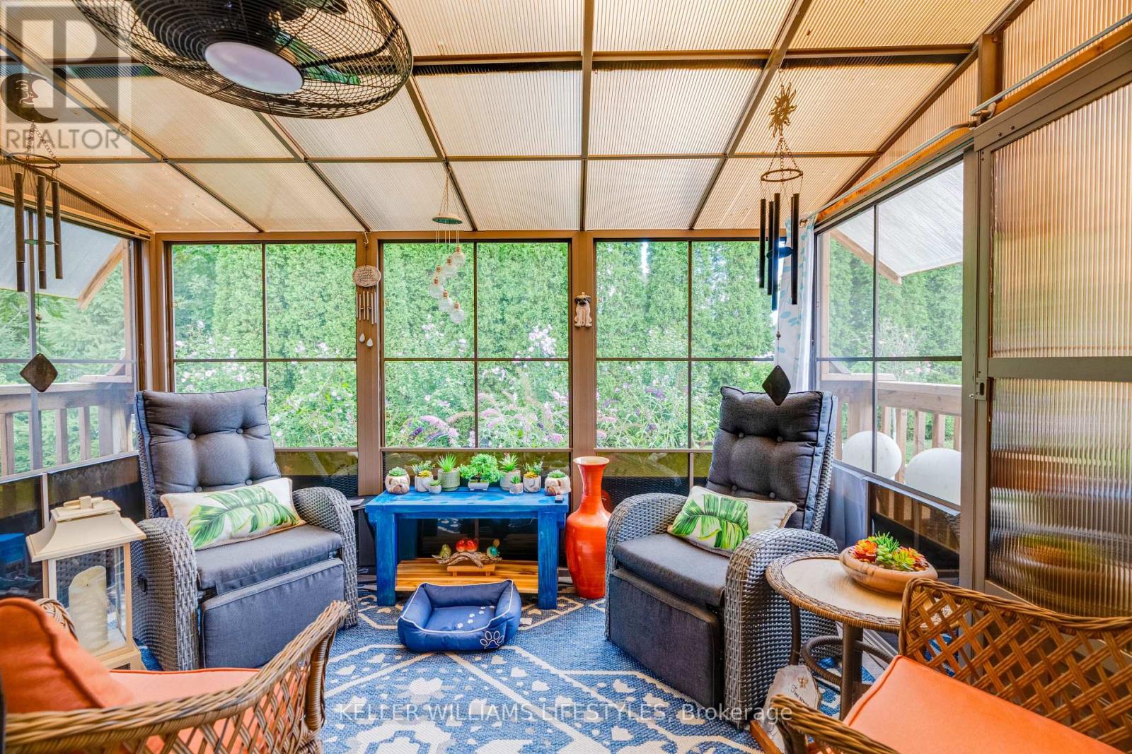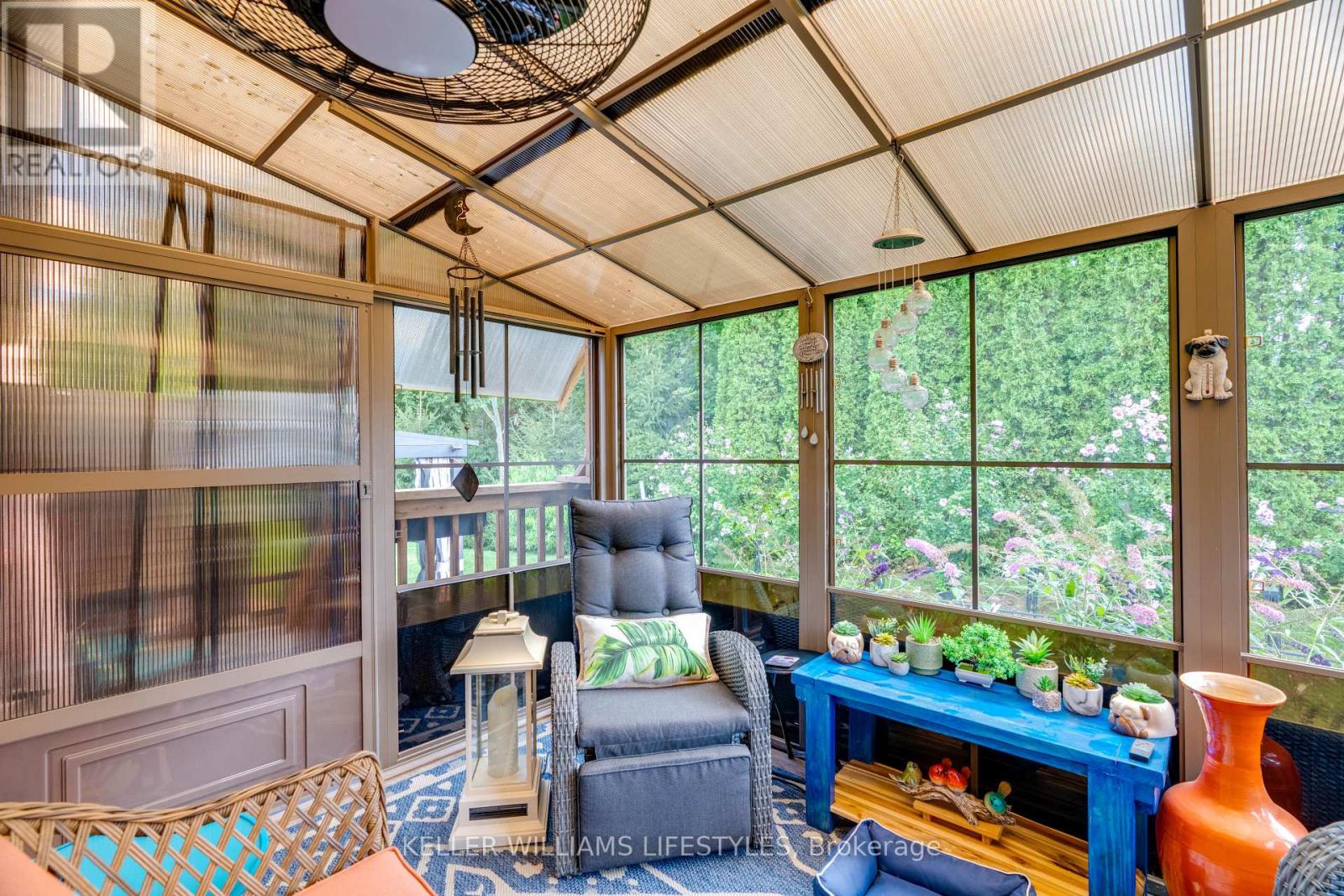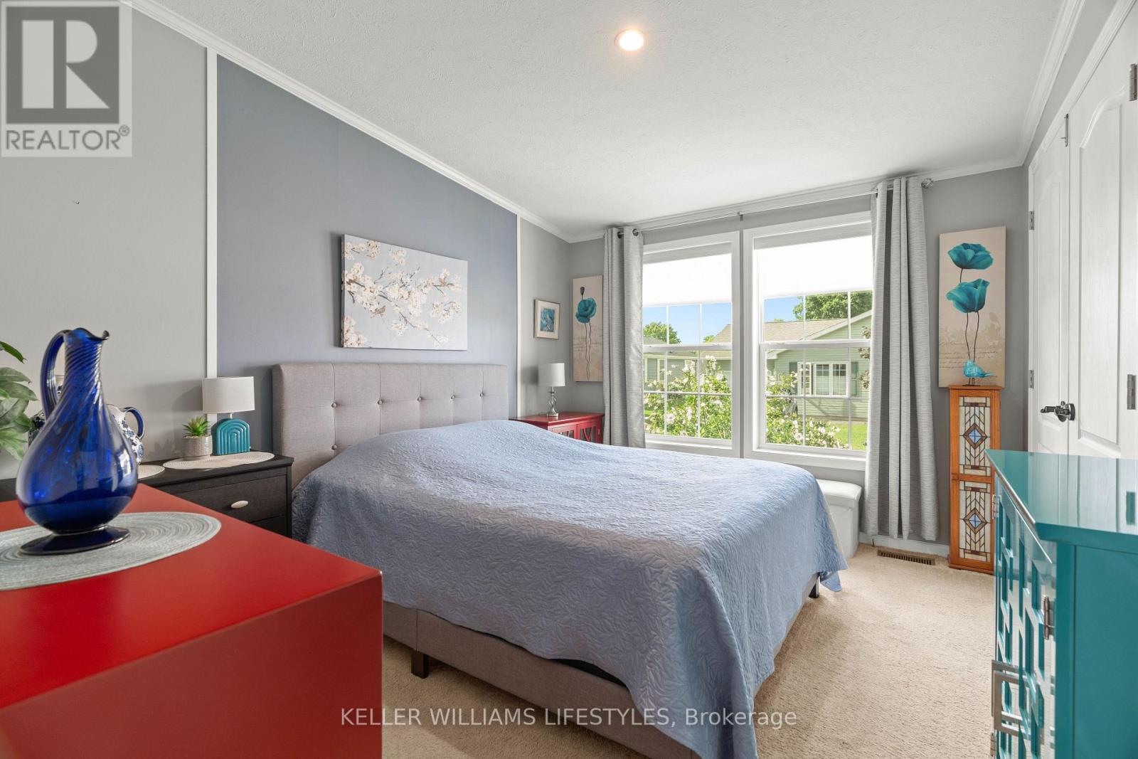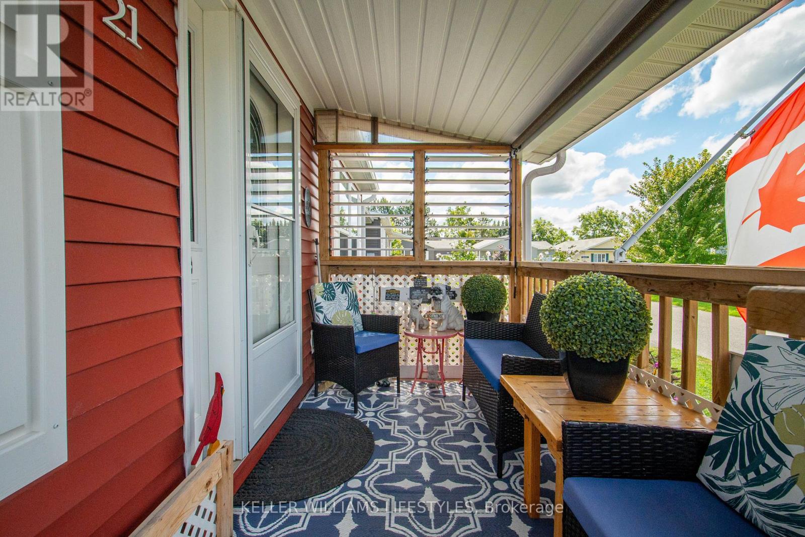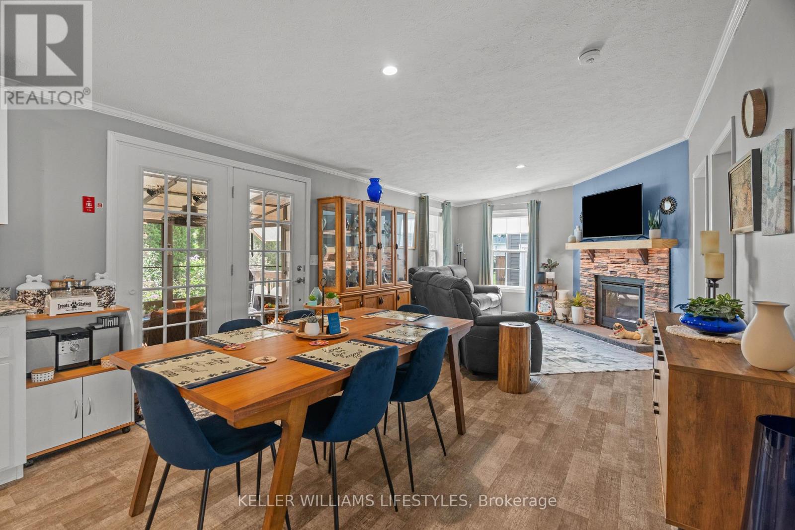 Welcome to 21 Kellestine Drive, Strathroy. Nestled in Twin Elm Estates, a highly sought after rent controlled adult lifestyle community, this charming home combines comfort, convenience, and peace of mind. Ideally located, you're just a short walk to shopping centres, including Walmart, dining, and Caradoc Sands Golf Club, offering both daily essentials and leisure right at your doorstep. Inside, this 2 bedroom bungalow is thoughtfully designed. The primary bedroom features an ensuite with a walk in shower, while the second bedroom offers a spacious closet for added storage. The kitchen showcases quartz countertops, and the cozy gas fireplace provides warmth and ambiance during the cooler months. For added peace of mind, the home is equipped with a full house generator, ensuring uninterrupted comfort regardless of the weather, and leaf guards along back eavestroughs. Step into the 3 seasonal sunroom with luxury vinyl flooring and outside you'll find a private backyard with two storage sheds, perfect for yard tools and seasonal items. Living in Twin Elm means more than just a home; it's a lifestyle. Residents enjoy access to a well equipped clubhouse featuring a hall, kitchen, weight room, darts, billiards, shuffleboard, and a calendar full of resident organized events. For those with extra recreational vehicles, on-site RV and boat storage is available for an additional fee. (id:64974)