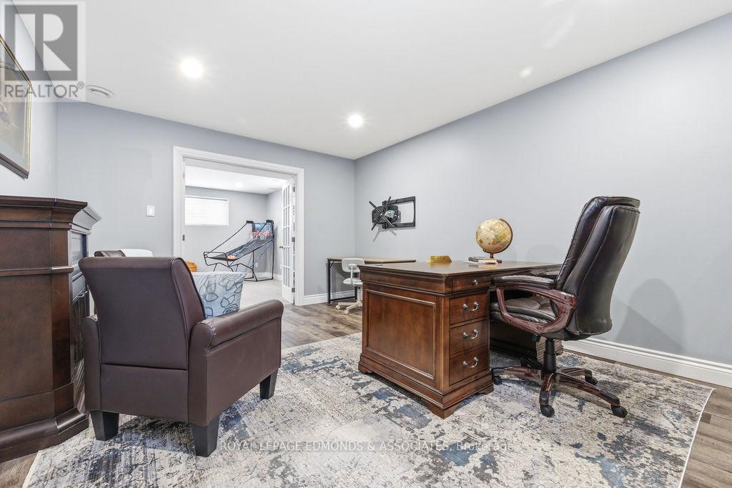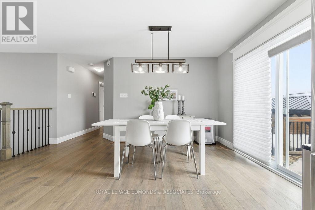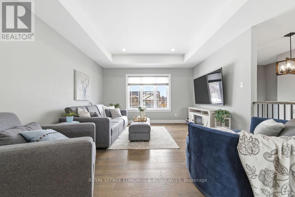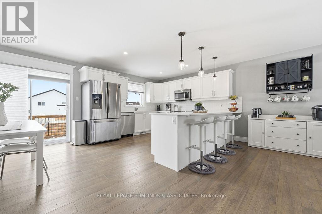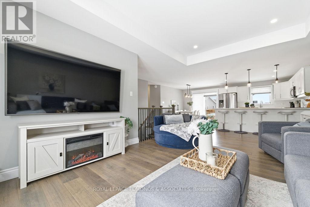 This exceptional home is situated in the highly desirable Laurentian Highlands subdivision. The main level features a bright, open-concept living and dining space, complete with ample preparation area, elegant quartz countertops, under-cabinet lighting, and a stylish backsplash. Patio doors off the dining area lead to a spacious two-tier deck, perfect for entertaining, overlooking a fully fenced backyard. The primary bedroom boasts a beautifully designed custom ensuite, featuring a luxurious rainfall shower with body jets and built-in niches. The fully finished lower level is highlighted by a stunning gas fireplace with a stone surround and custom built-in shelving. French doors lead to the separate office space offering excellent flexibility and can easily serve as a fifth bedroom, home gym, or workspace. This level also includes an additional bedroom with walk in closet, a custom bathroom, and dedicated utility/laundry room. Completing the home is an attached, insulated double garage, offering ample space for vehicles and recreational equipment! (id:64974)