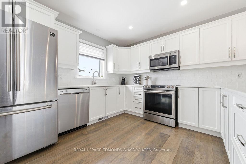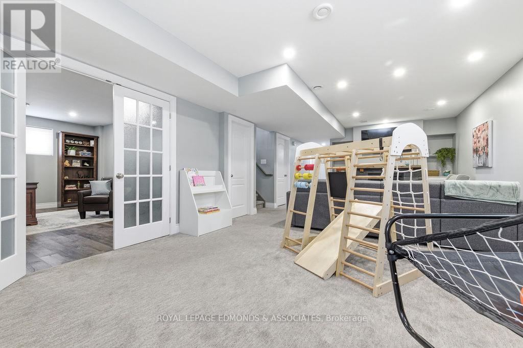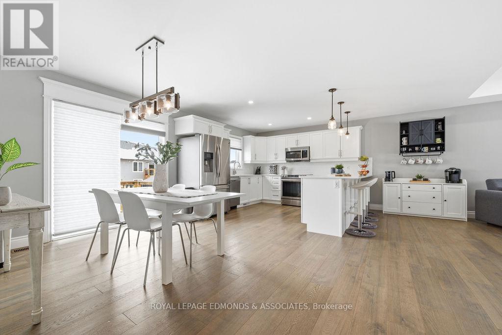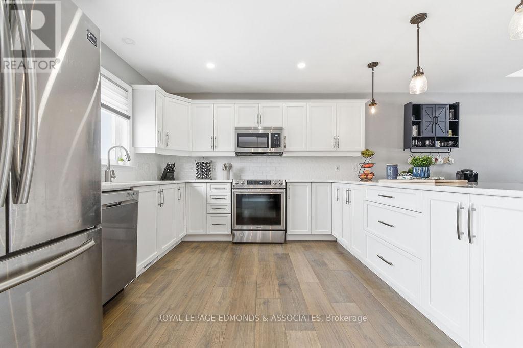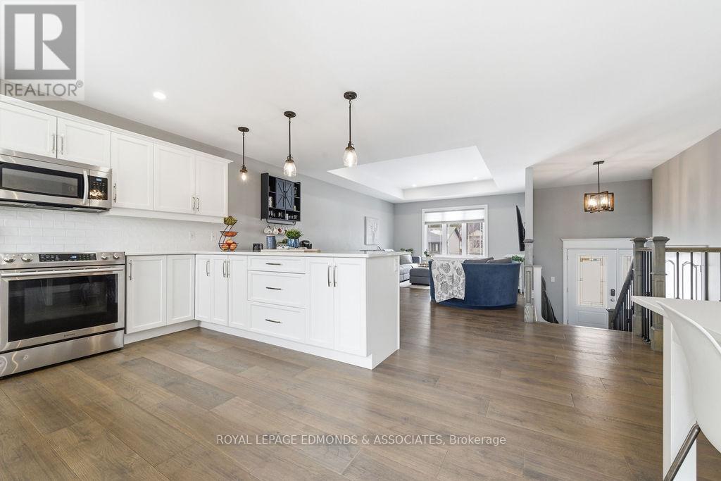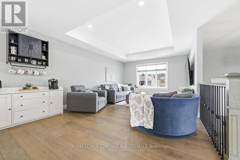 This exceptional home is situated in the highly desirable Laurentian Highlands subdivision. The main level features a bright, open-concept living and dining space, complete with ample preparation area, elegant quartz countertops, under-cabinet lighting, and a stylish backsplash. Patio doors off the dining area lead to a spacious two-tier deck, perfect for entertaining, overlooking a fully fenced backyard. The primary bedroom boasts a beautifully designed custom ensuite, featuring a luxurious rainfall shower with body jets and built-in niches. The fully finished lower level is highlighted by a stunning gas fireplace with a stone surround and custom built-in shelving. French doors lead to the separate office space offering excellent flexibility and can easily serve as a fifth bedroom, home gym, or workspace. This level also includes an additional bedroom with walk in closet, a custom bathroom, and dedicated utility/laundry room. Completing the home is an attached, insulated double garage, offering ample space for vehicles and recreational equipment! (id:64974)