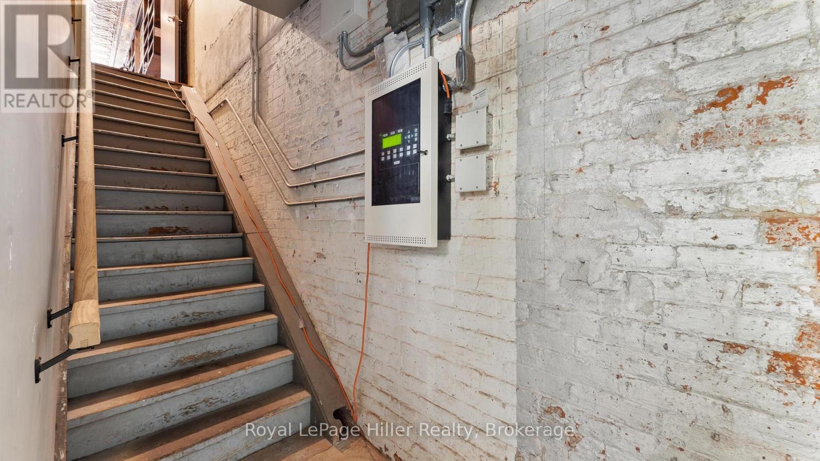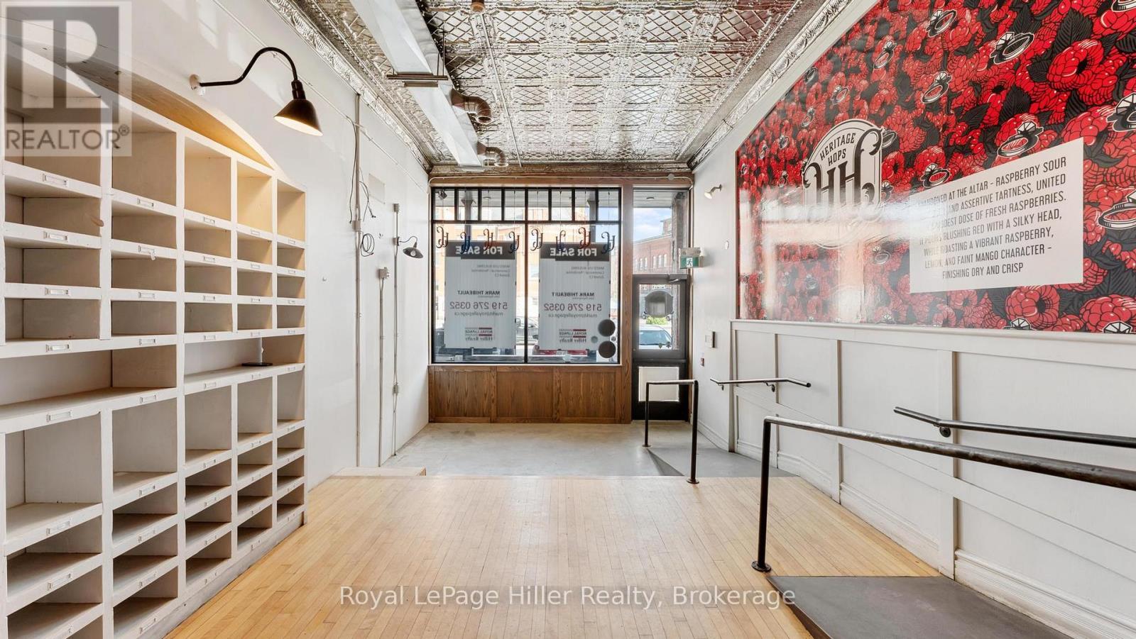 LANDMARK STRATFORD BUILDING | PRIME DOWNTOWN MIXED-USE | NEW PRICE $1,147,000. Now offered at $1,147,000, this is the only landmark building currently available for purchase in the City of Stratford. Positioned in the absolute core of the Market Square district, this mixed-use asset sits steps from Stratford's top restaurants, boutiques, and the Festival Theatre-an irreplaceable downtown location.This is a rare opportunity to acquire a signature heritage property with substantial upside and flexible use potential.The main floor and lower level feature a large open-concept commercial footprint with exposed brick, decorative tin ceilings, and hardwood floors-ideal for retail, hospitality, gallery, or creative office use under C3 zoning. The renovated, fully usable basement includes both a walk-out man door and an 8-ft garage door, providing true commercial functionality for deliveries, storage, or production use.The building has been electrically upgraded with full 3-phase power and commercial utilities, supporting a wide range of business operations without infrastructure limitations.The upper floors encompass nearly 3,000 sq. ft. with strong potential for redevelopment or repositioning to maximize residential or studio-style rental income.Historic character. Modern infrastructure. Prime downtown exposure. New price point.Opportunities like this do not repeat in Stratford.Photos and iGUIDE virtual walk-through available. (id:64974)
