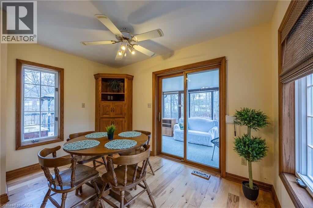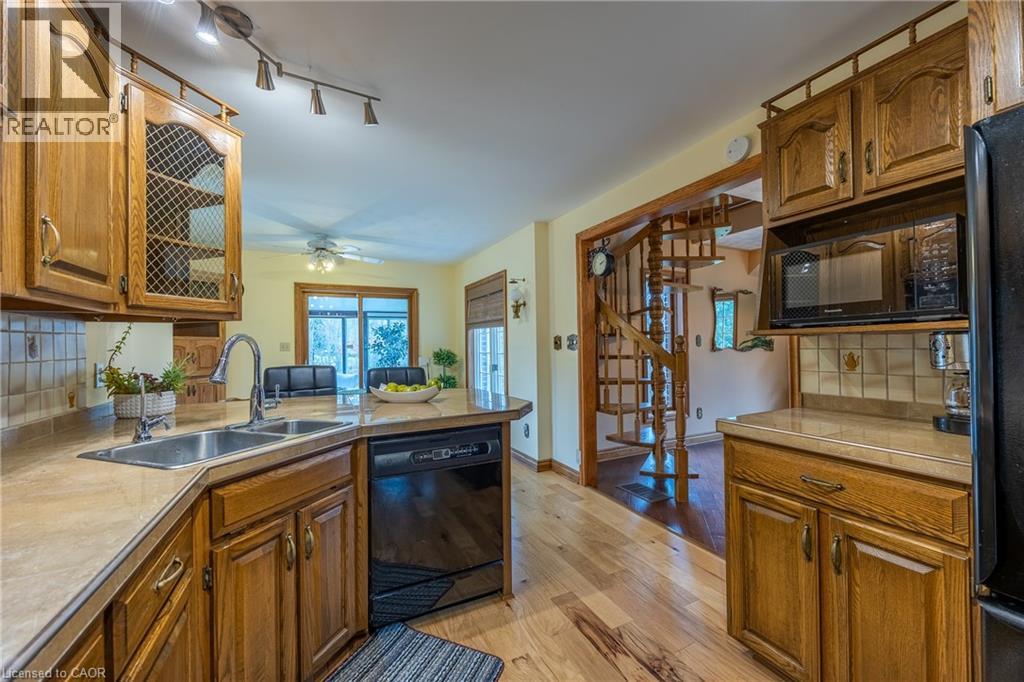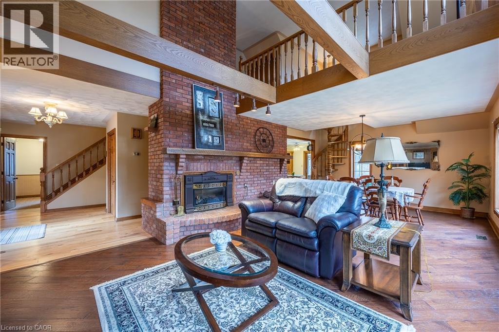 First time offered! This custom built beautiful home sits on a private 1.5 acre treed lot with a ravine - beautiful views from every direction! Upon entering the home you'll love the spacious foyer and all of the windows looking out to the park-like yard. The living room ceiling is open to the second floor creating an open airy space. There's a gas fireplace with brick from the old Langton school house! Formal dining area opens to the kitchen with breakfast nook. Plenty of cupboards and countertop space. There's a sunroom off of the kitchen - again with lots of windows, it's like being outside without the weather! Large deck with gazebo and outdoor sink (new boards 2024) a perfect spot for your morning coffee or summer family BBQ's! To complete the main floor there is the primary bedroom with walk in closet and en suite privilege's (4 piece bath), laundry room, 2 pc powder room, office and entrance to the double car attached garage (new floor 2022). Up the hardwood stairs to find 2 additional bedrooms, a 3 piece bath and a loft area overlooking the living room which has a spiral staircase going down to the dining room. Full basement, with a walk out to the back yard, it has a full kitchen, dining area, living room, 3 piece bath and a sitting room - perfect for a multi-generational family! 2 sheds on the property - one with hydro and insulation in half of it, a great workshop area. Many upgrades including hardwood interior doors and flooring, metal roof, paved driveway and more. Great location central to Tillsonburg, Delhi, Simcoe and the sandy beaches of Long Point and Turkey Point! Alternative mls X12716928 (id:64974)
