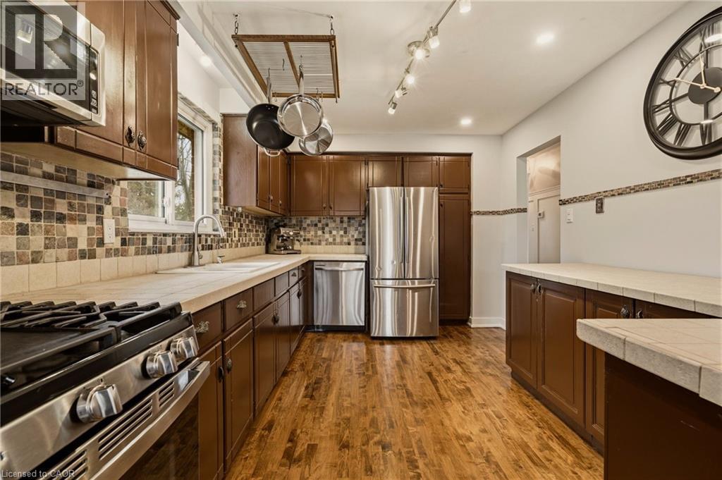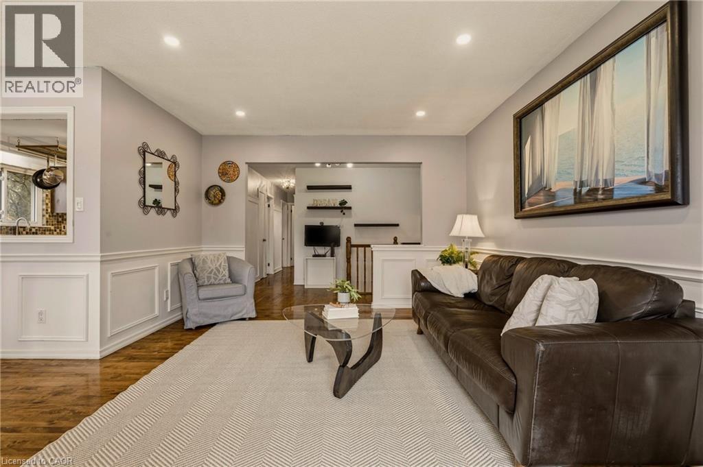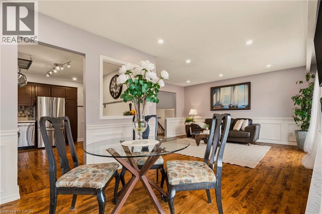 Welcome to this beautifully maintained side-split, perfectly situated on a premium pie-shaped lot backing onto Gatesbury Park in the highly sought-after East Waterdown neighbourhood. Offering over 2,000 sq ft of thoughtfully designed living space, this 3+1 bedroom, 2 full bathroom home blends comfort, functionality, and style. The main level features three generously sized bedrooms, a well-appointed 4-piece bathroom, and elegant hardwood flooring that adds warmth and sophistication. The bright, open-concept living and dining area is ideal for both everyday living and entertaining, seamlessly connecting to a spacious kitchen designed for family gatherings and hosting with ease. Step outside to your own private backyard oasis—an oversized, pie-shaped lot with a custom deck, mature trees, and direct park backing for added privacy and tranquility. It’s the perfect setting for summer evenings, family time, or quiet relaxation. The fully finished lower level offers a large recreation room, an additional bedroom, and a second full bathroom—ideal for guests, teens, or multi-generational living. Additional highlights include a double car garage, fresh paint throughout, and true move-in ready condition. Located just minutes from parks, scenic walking, biking trails, Royal Botanical Gardens; top-rated schools, shopping, major highways, and the GO Train—this home offers the perfect balance of lifestyle and convenience. Simply move in and enjoy—everything has been done for you. (id:64974)