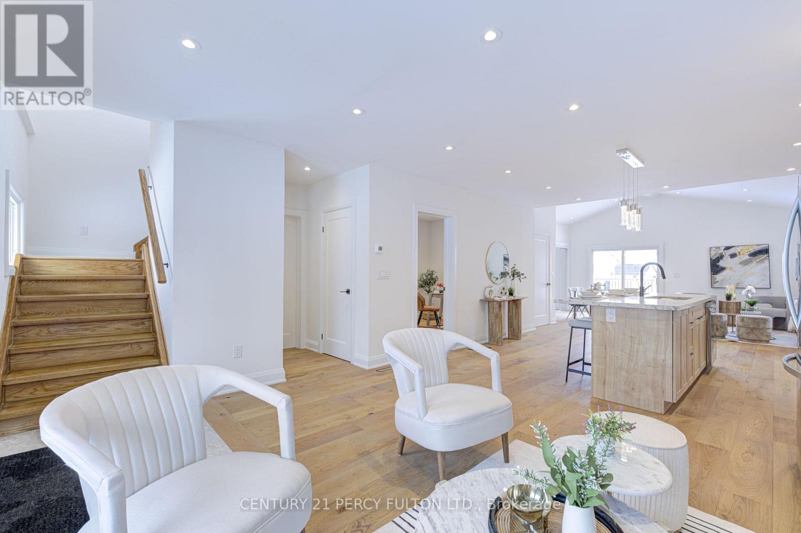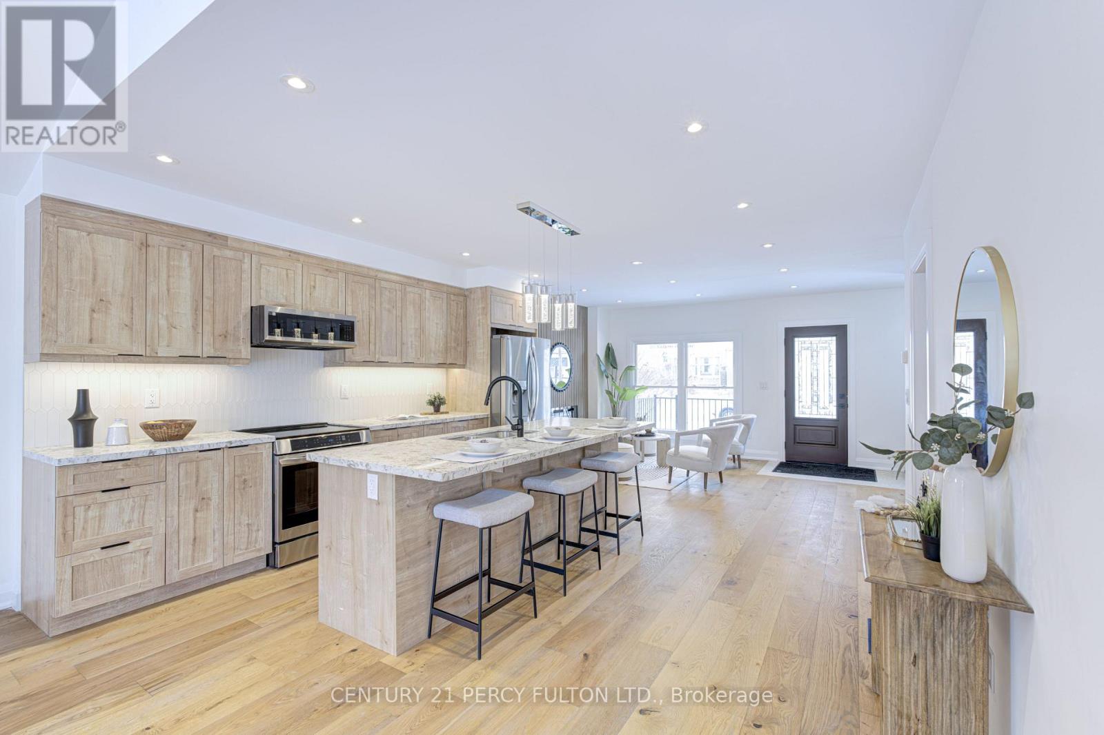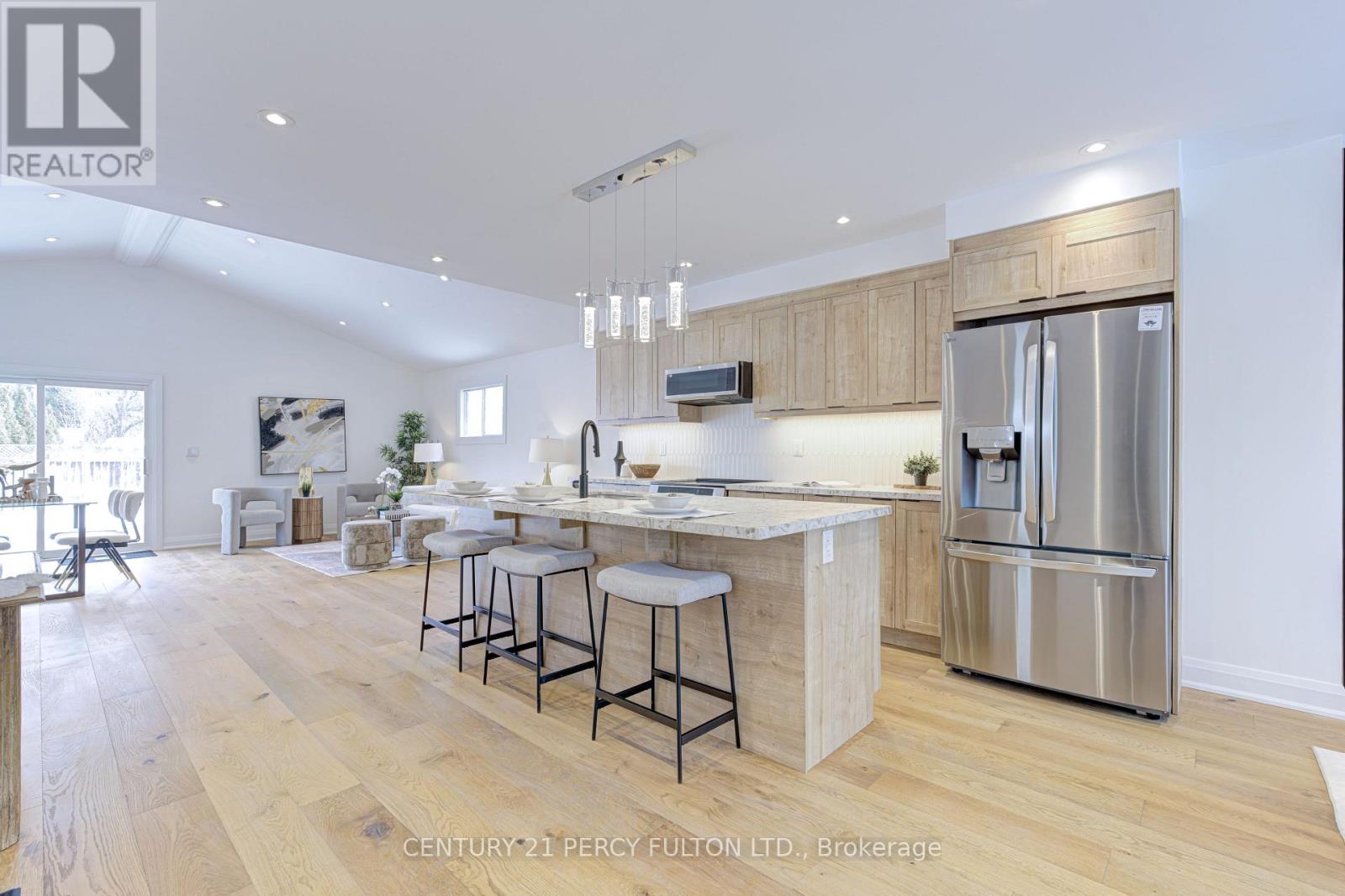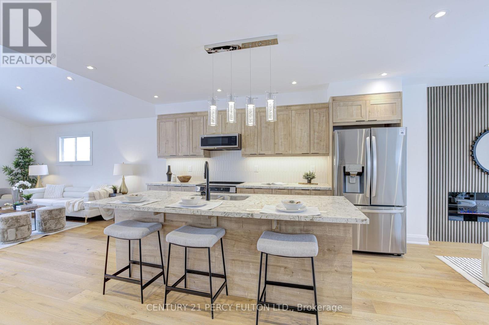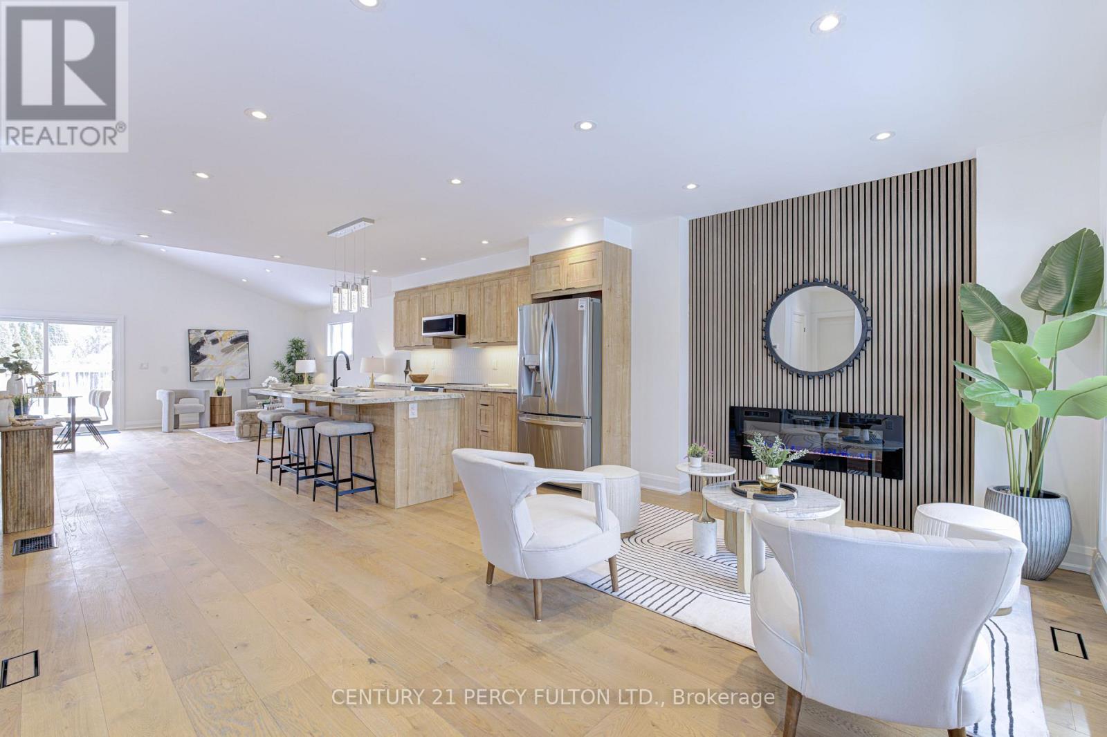 Beautifully upgraded 4-bedroom home, offering a bright, open-concept layout designed for modern living. Soaring ceilings in the living and dining area create a bright, open feel throughout the main floor, enhancing the sense of space and natural light while providing an inviting setting for both everyday living and entertaining. The fully updated kitchen is the heart of the home, featuring custom cabinetry, stone countertops, stainless steel appliances, and a large centre island with seating, perfect for hosting family and guests. The open layout flows seamlessly into the living area, highlighted by a modern feature wall and fireplace that adds warmth, style, and character to the space. The main floor den offers flexibility for a home office, guest room, or additional bedroom. Thoughtfully finished throughout with quality upgrades, the home offers a functional layout that balances comfort and design. The upper level features three generously sized bedrooms, including a spacious primary suite complete with its own private ensuite, along with an additional full washroom for added convenience. A separate entrance leads to a finished basement bachelor suite complete with a full washroom and its own separate laundry, offering excellent flexibility for extended family, in-law use, or additional living space. A move-in ready home that combines thoughtful upgrades, functional design, and versatile living. (id:64974)