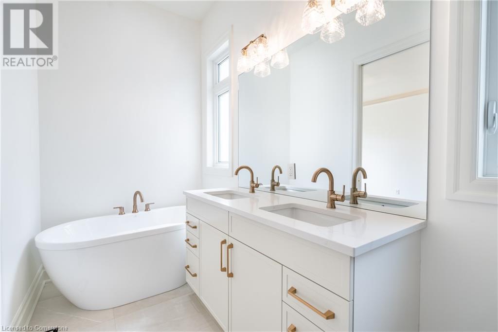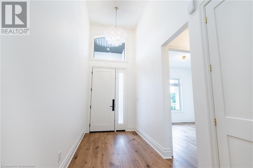 Welcome to the heart of Wine Country, where elegance meets craftsmanship. This brand-new designer bungalow by award-winning Parkside Custom Homes is a refined retreat tailored to suit families of all sizes, blending upscale comfort with timeless design. Step inside to an expansive open-concept layout featuring soaring 10-ft ceilings, 14ft foyer, 8-ft doors, and a stunning cathedral ceiling in the great room. The gourmet kitchen boasts sleek modern cabinetry, pantry with coffee bar making both daily living and entertaining a breeze. Indulge in the spa-like primary ensuite complete with a luxurious walk-in glass and tiled shower and stand alone tub. Engineered hardwood floors run throughout, complemented by thoughtfully curated finishes including 7 baseboards, enlarged window and door casings, and oak stairs leading to a beautifully finished lower level. Downstairs, you'll find a spacious rec room, an additional bedroom, a 4-piece bath, and dedicated zones for a family room and games or fitness area—perfect for multigenerational living or weekend entertaining. Outside, the home is wrapped in a rich blend of stone, stucco & brick, exuding sophisticated curb appeal. A covered front porch welcomes you in, while the rear covered deck offers a peaceful outdoor sanctuary. The fully sodded yard and paved driveway complete this turnkey package. With a deeper double-car garage, and only one final lot remaining in this exclusive enclave, this is an exceptional opportunity to experience refined living just minutes from Gretzky Estates, world-class wineries, acclaimed restaurants, and major commuter routes. (id:64974)