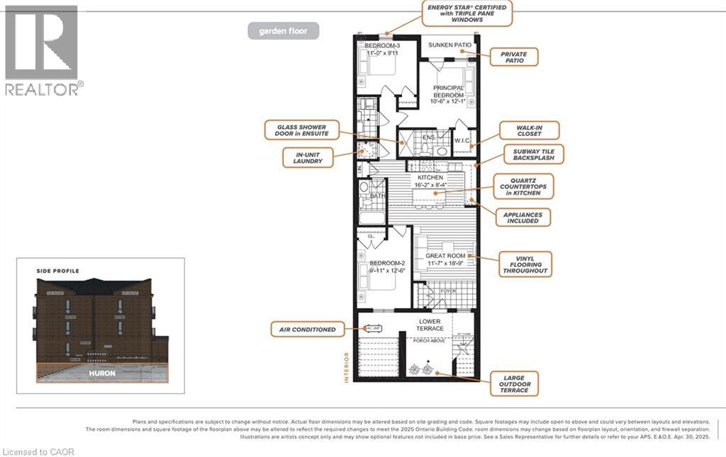 FIRST MONTH RENT IS FREE WHEN YOU SIGN A 13-MONTH LEASE! TWO PARKING SPOTS AVAILABLE. New tenants receive exclusive discounts on Rogers TV, internet and mobile services. BRAND NEW ENERGY STAR® CERTIFIED two and three bedroom stacked townhomes near Sunrise Shopping Centre with flexible move-in. Reserve your favourite unit today and move in anytime from now through July 1. Welcome to THE HURON, a 3 bed, 2 full bath suite with high ceilings, premium finishes, and a bright open concept layout. The brand new kitchen boast quartz countertops, subway tile backsplash, full-size stainless steel appliances, and an oversized island with breakfast bar seating. Enjoy the convenience of in-suite laundry and central air conditioning/heat for year round comfort. Enjoy the private balcony off the master bedroom, offering beautiful views of the pond and countryside. Just steps away, Trussler Woods features peaceful trails—perfect for walking, jogging, and enjoying the outdoors. EV chargers and visitor parking available. Pet-friendly community. Located in a designated school bus zone, offering added convenience for families. Enjoy quick access to Highways 7/8. Actual units may vary in layout; interior finishes are consistent. Some photos may be virtually staged or taken from the model suite. Tenant responsible for utilities. Landlord responsible for furnace filter replacements and water softener maintenance. Book a tour to explore all available suites! (id:64974)