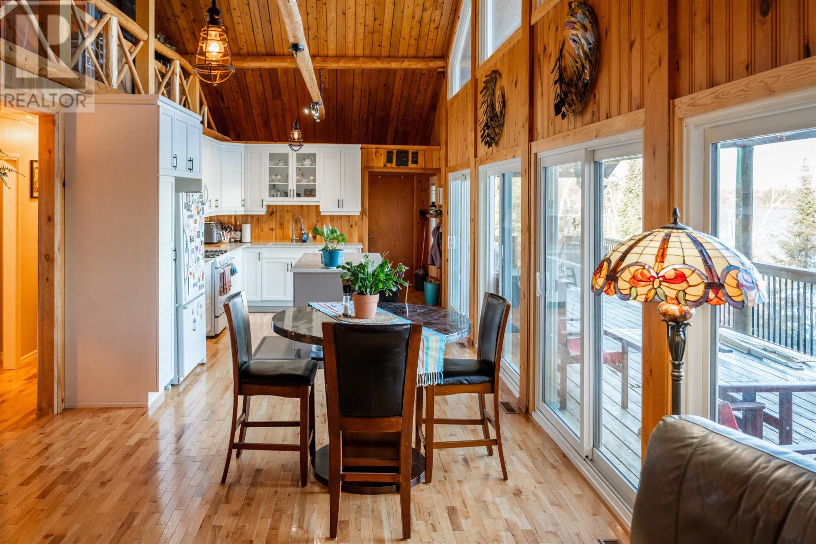 Enjoy spectacular sunrise views from this comfortable year-round home or cottage perfectly set on the southern shore of Regina Bay, Lake of the Woods in Sioux Narrows. Located at the end of the road for good privacy, you’re still only 10 minutes from the conveniences of downtown Sioux Narrows. This 1,380 sq. ft. 1.5-storey home offers a bright, open-concept main floor with an island kitchen, dining, and living area, plus 3 bedrooms, 2 full baths, laundry, and a walk-in pantry. The loft provides a cozy office and lounging space - an ideal retreat. Outdoor living is effortless with a covered front deck perfect for grilling and side decks designed for alfresco dining. A detached workshop with an overhead door adds practical storage or hobby space. Set on 1.45 acres, the lot offers 79 ft of rock shoreline owned to the high-water mark. The waterfront features a crib and floating dock with mooring whips and swim ladder plus a generous waterside deck. The natural grounds are partially landscaped and treed with spruce, fir, birch and cedar, accented by a blast rock retaining wall. This property is also road accessible from the rear via Regina Heights Blvd. The property there is level and could easily accommodate a large garage. Amenities: Year-round road access; 100-amp hydro service; Forced-air propane heat + propane range; Winterized lake-drawn water system with filtration & UV light; Electric hot water heater; Winterized septic tank & field. Zoned Rural Residential; 2025 taxes $2,804.00; Propane $3500./yr; Hydro $800./qtr; Ontario land transfer tax on $640,000 is $9275.00. Schedule a tour today! (id:64974)