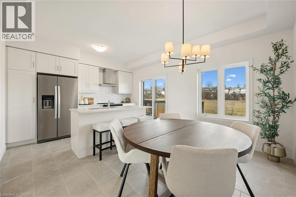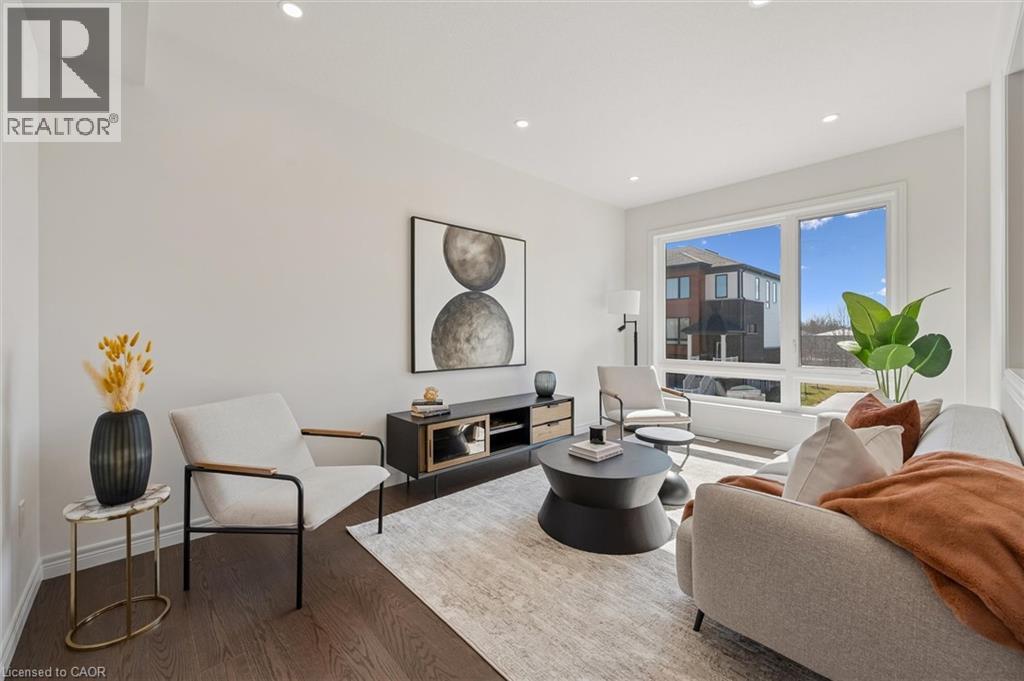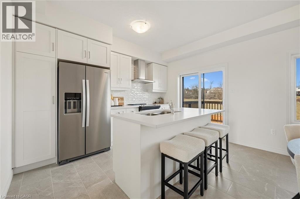 Welcome to 21 Sora Lane, located in the vibrant and growing Sora community in Guelph’s desirable east end. Surrounded by parks, trails, schools, and everyday amenities, this family-friendly neighbourhood offers the perfect balance of modern living and community charm. Thoughtfully built by Fusion Homes, this never-lived-in residence offers almost 1700 sq. ft. of finished living space, featuring 3 bedrooms, 3.5 bathrooms, and an attached garage. The main floor is designed for effortless living and entertaining, with an airy open-concept layout enhanced by quartz countertops and curated designer finishes throughout. The modern kitchen is both functional and stylish, complete with premium stainless-steel appliances and almost 100k in included upgrades that elevate the home’s overall appeal. Upstairs, the primary retreat includes a walk-in closet and a spa-inspired ensuite with a glass-enclosed shower. Two additional well-proportioned bedrooms and a contemporary shared bathroom complete the upper level. The walk-out basement offers outstanding versatility, ideal for a home office, recreation room, or guest accommodations. Offered fully furnished*, this home provides a true turnkey option well-suited for investors, university-bound occupants, busy professionals, or families relocating to the area (*inquire for details). Experience the Fusion Homes' difference, including their unrivaled home warranty that averages 2X the industry standard. Along with private garage parking and convenient access to nearby parks, trails, schools, and shopping. 21 Sora Lane delivers modern, low-maintenance living in one of Guelph’s most sought-after neighbourhoods. (id:64974)