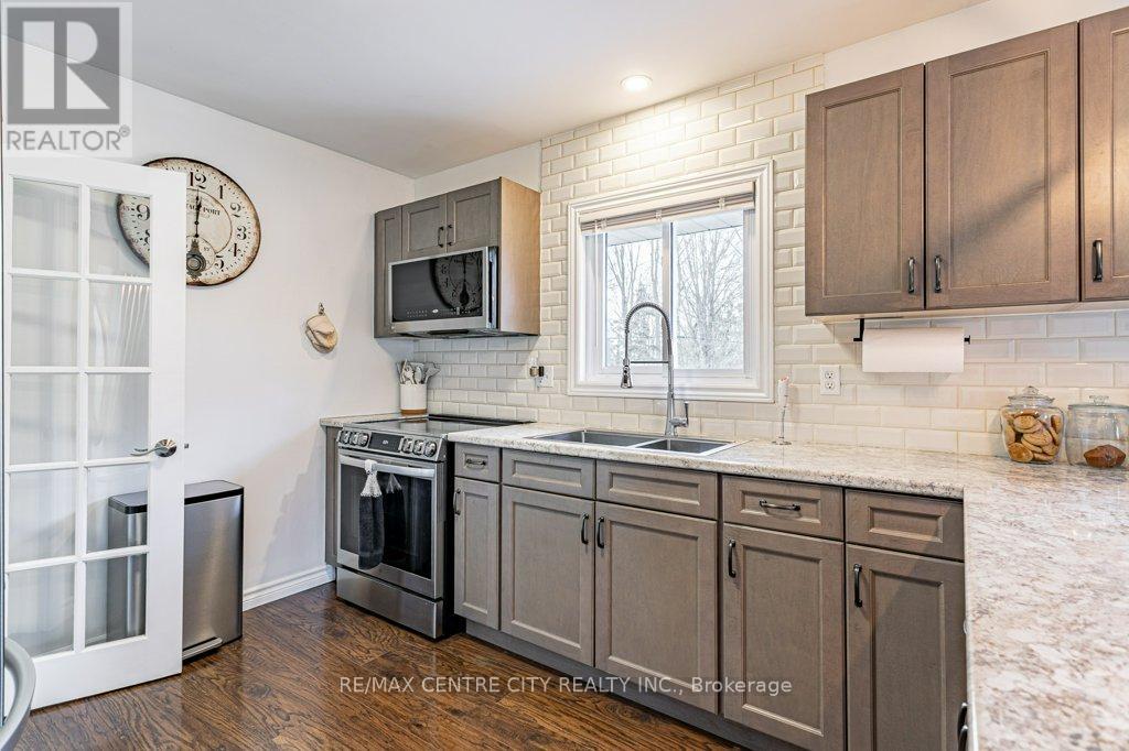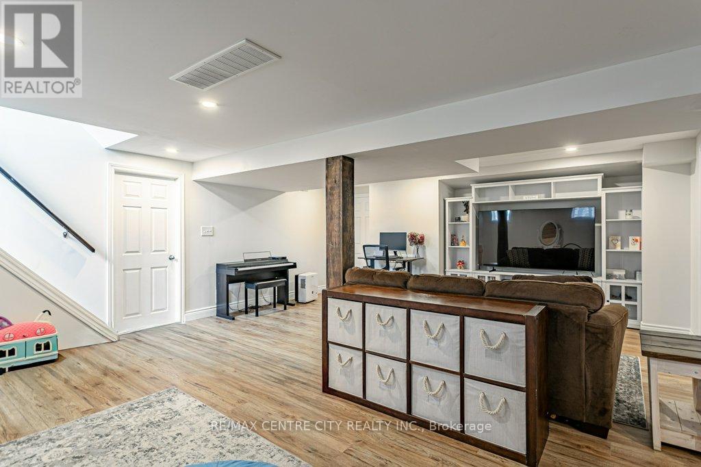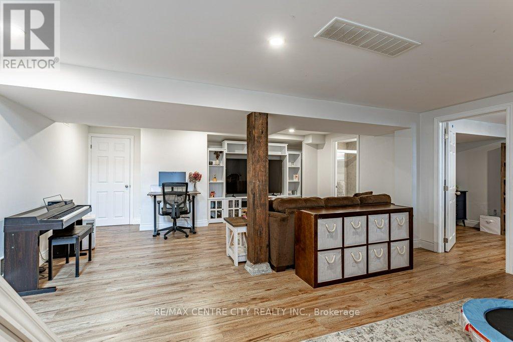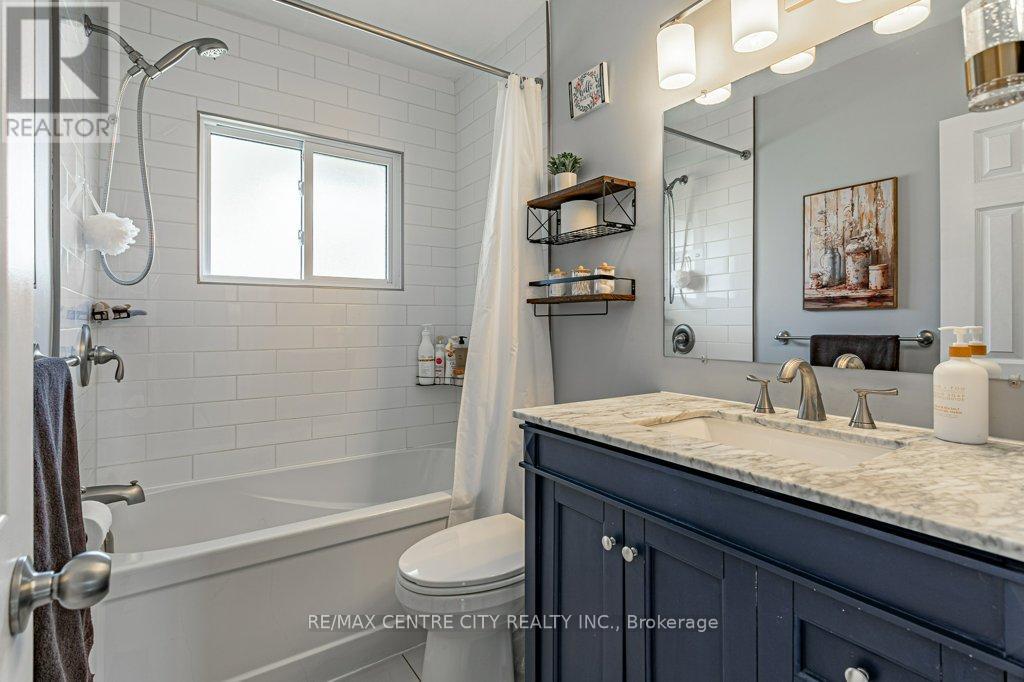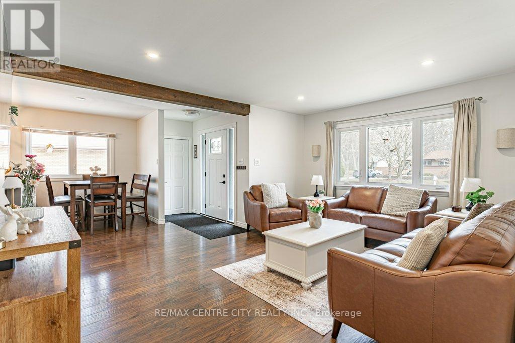 Welcome to 21 Strathcona in London's Fairmont community. Surrounded by woods and quiet residential streets, this 3+1 bedroom, 2 bathroom bungalow is perfect for young families and first-time homebuyers. Completely renovated in 2018, this open concept and bright eat in kitchen and living space boasts 3 bedrooms, a 4 piece bathroom and a rear door to your huge, fully fenced backyard. With over a quarter of an acre, this rare lot size in the city may potentially accommodate a garage, workshop or even an additional residential unit. In the lower level, there is plenty of storage in the unfinished portion, while boasting a good size recreation room and 4th bedroom with 3 piece bathroom. Updates include: Furnace & AC (2025), Driveway (2025), Bathrooms (2020), Kitchen, living room, flooring, windows, basement (2018) (id:64974)