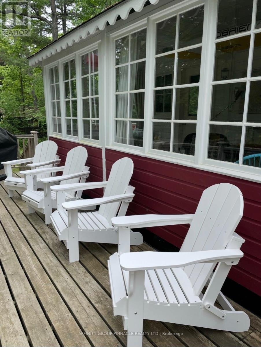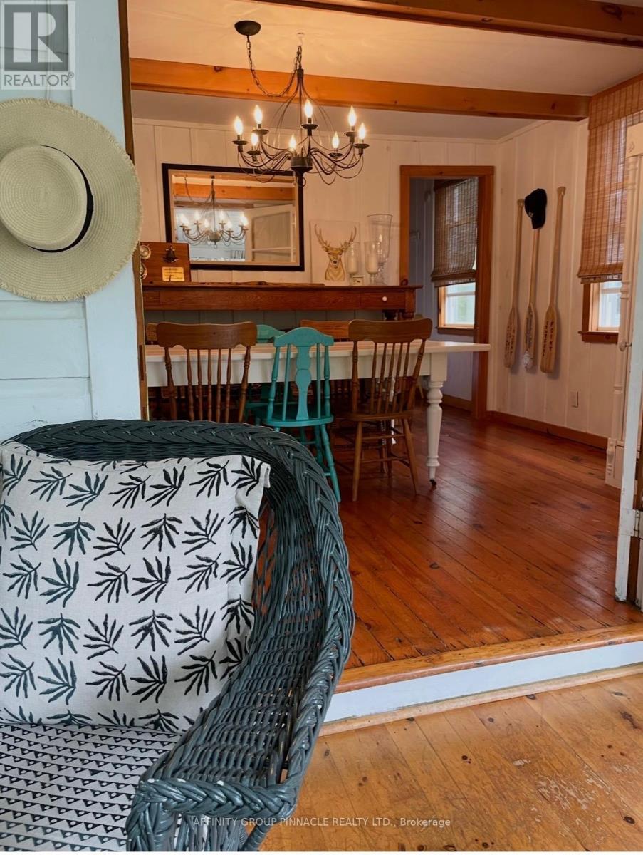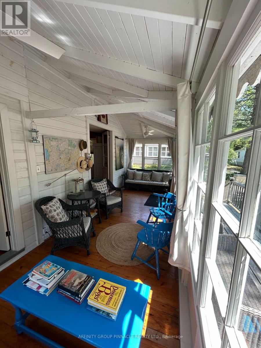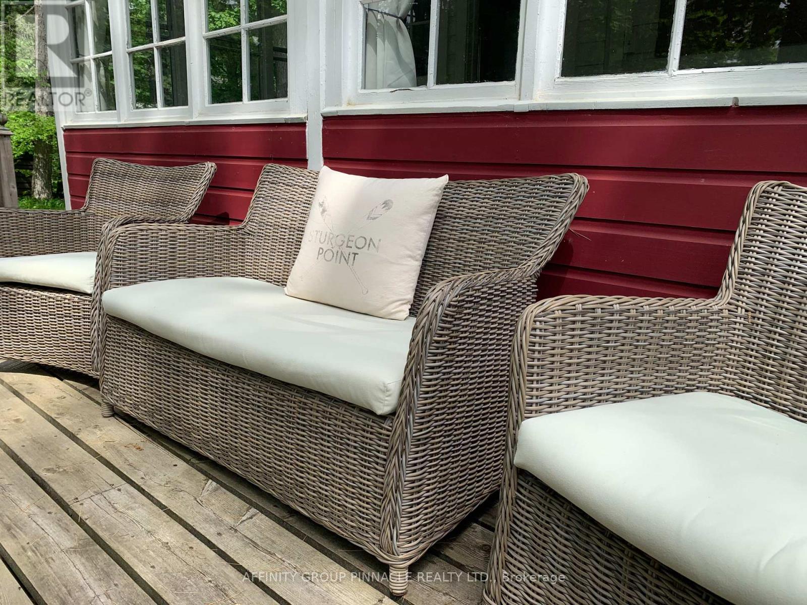 Charming three-season cottage in Sturgeon Point, a historic and sought after lakeside community on the north shore of Sturgeon Lake. Cozy, welcoming and full of character, this well-maintained property blends original charm with thoughtful updates and comfortably sleeps 8. Featuring original wide-plank pine floors, a bright sun porch with windows on three sides and a dining area with French doors - ideal for gathering and entertaining. The well-equipped kitchen offers ample storage, a vaulted ceiling, built-in pantry and walkout to a wraparound barbecue/entertaining deck spanning two sides of the cottage. Main floor bedroom and bath, plus two upstairs bedrooms with vaulted ceilings (one queen with flexible layout potential for additional beds or bunks and one double). Updated double hung windows throughout, including bedroom and dining area, provide abundant natural light. Excellent built-in storage upstairs with shelving and clothes rail. Private west-facing, treed backyard featuring a raised rock garden with perennials, firepit area and open green space for outdoor activities, like badminton. Recently added Norwegian pine bunkie, currently set up with two twin XL beds, offers flexible additional guest or kids space. Set on a solid concrete block foundation with ample dry storage below. Additional upgrades included drilled well, updated plumbing with UV filtration and water heat pump, and updated wiring. Short walk to swimming, docking, sailing club, golf course and more -- under two hours from the GTA (id:64974)