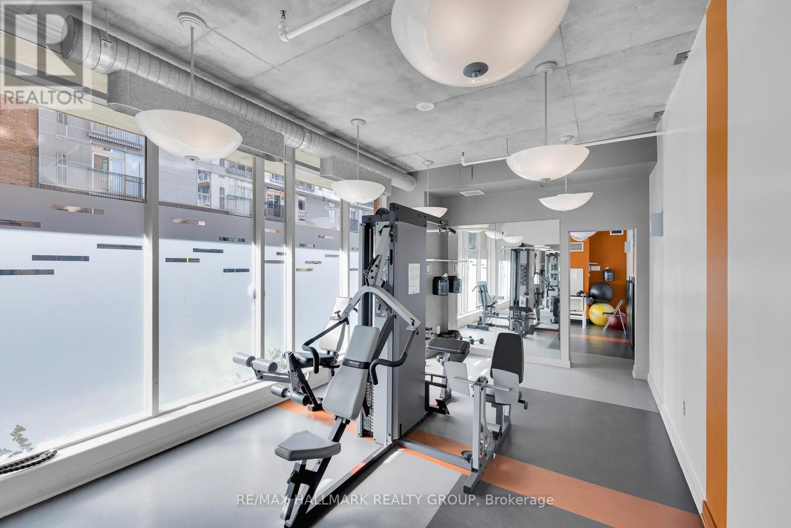 This bright and functional 1-bedroom, 1-bath condo with storage locker offers 523 sq. ft. of thoughtfully designed living space. High ceilings, brand-new flooring, and floor-to-ceiling windows create an open, light-filled atmosphere, while the east-facing exposure welcomes warm morning sun. The kitchen features ample cabinetry and white appliances, and the bathroom has been refreshed with quartz counters. The unit is positioned on the quieter backside of the building, reducing street noise and foot traffic from Cumberland and York Street. Life at The East Market extends beyond your front door. Residents enjoy a well-equipped gym, games room with pool table, and a spacious party room that opens to an outdoor terrace with BBQs, perfect for entertaining. The building also offers secure entry, elevators, on-site management, and bike storage.Step outside to experience the best of the ByWard Market. Cafés, restaurants, pubs, and shops are all within walking distance, while Metro, Farm Boy, and the Market stalls make groceries easy to grab. The Rideau Centre, LRT station, and University of Ottawa are just minutes away. Ideal for first-time buyers, professionals, down-sizers, or investors, this move-in-ready condo blends location, lifestyle, and value in one of Ottawa's most vibrant neighbourhoods. (id:64974)