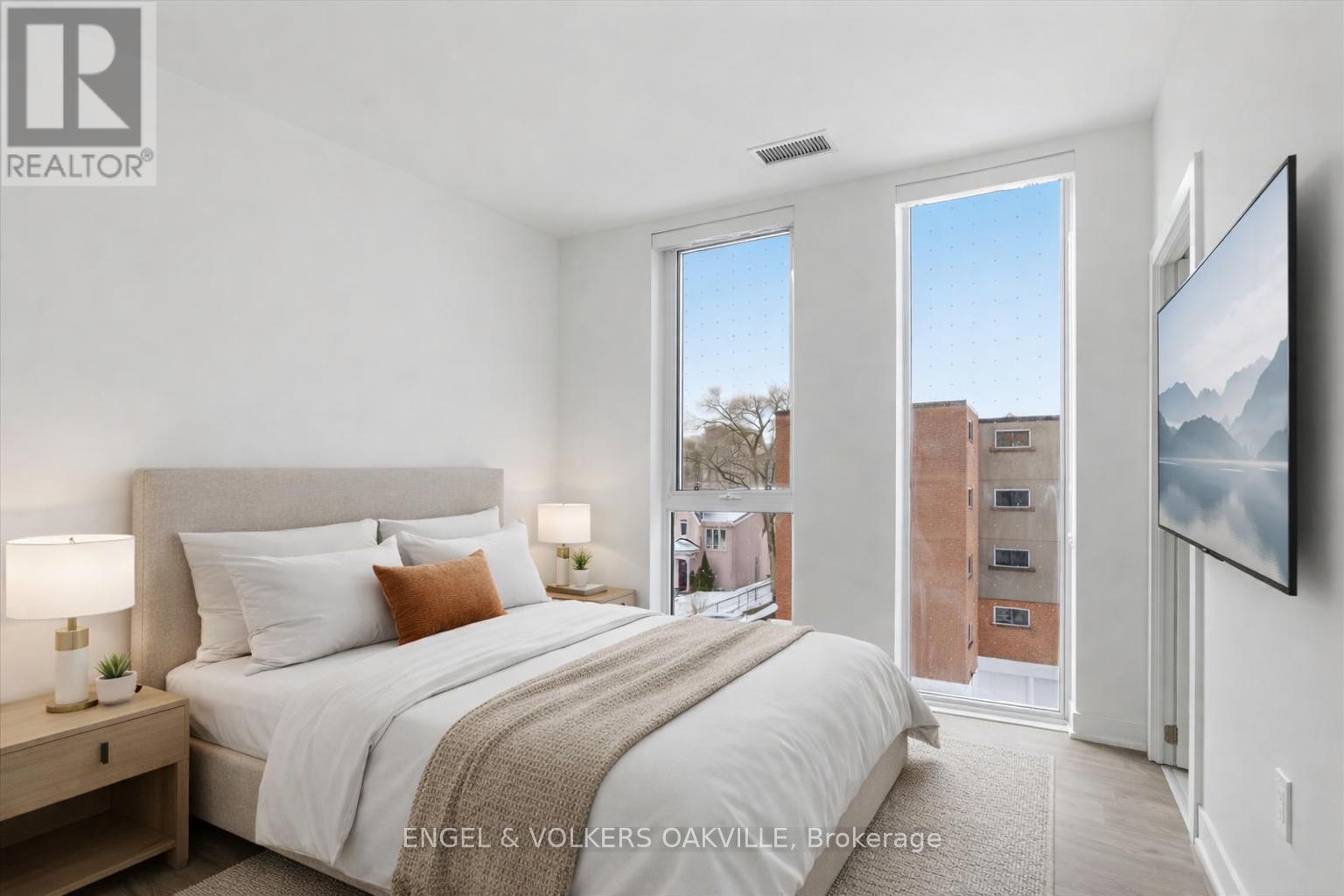 Welcome to Martha James - where boutique living meets Downtown Burlington lifestyle.This beautifully upgraded 2 bedroom, 2 bathroom suite with parking offers approximately 857 sq.ft. of thoughtfully designed space plus a private balcony - and not a square inch is wasted.The open-concept living area flows seamlessly into a kitchen that actually feels like a kitchen. Think full-size premium appliances, quartz countertops throughout, and a proper island (yes, the kind you can cook on and gather around). Premium roller shades complete the space, giving it that polished, move-in ready feel.The layout is ideal: Private primary suite with its own ensuite A well-separated second bedroom (perfect for guests or a dreamy work-from-home setup) Two full bathrooms - because sharing is overratedStep outside to your balcony for morning coffee or evening unwinding.Set in a boutique Mattamy-built building in South Burlington, you're minutes to the waterfront, downtown shops and restaurants, GO access, and major highways - making commuting or weekend plans effortless.This is condo living done right - stylish, smart, and easy (id:64974)