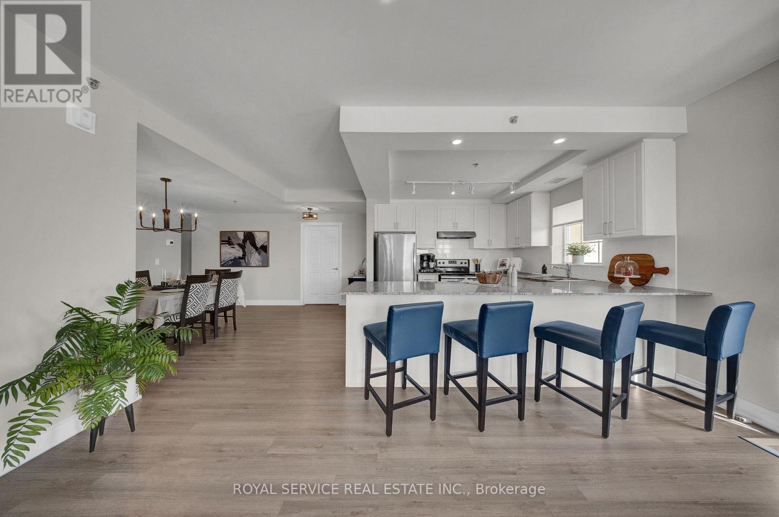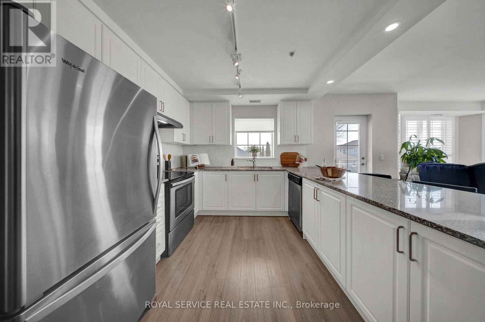 This is not your typical condo. 1,400 sq ft, this rare corner suite delivers space, layout & natural light Buyers are searching for but rarely find. South & East exposure & windows wrapping around the living space, sunlight pours in throughout the day, highlighting the expansive, open concept design. It feels more like a bungalow than a condo. The principal rooms are generously sized, allowing for full scale furniture including a large dining table with buffet, a true living room setup & even a dedicated work from home area without compromise. The curved living room with oversized windows creates a bright, inviting focal point you simply do not get in standard layouts.The kitchen is built for real life, not just looks. Granite countertops, stainless steel appliances & a functional breakfast bar, there is plenty of room for multiple people to cook & gather comfortably. It connects seamlessly to both dining and living areas, making it ideal for entertaining or everyday ease. Both bedrooms are oversized & thoughtfully separated, each with access to their own bathroom. The primary suite features a walk in closet & a 3 piece ensuite with glass shower. The 2nd bedroom offers semi ensuite access, perfect for guests/family. In suite laundry includes a laundry tub & additional storage.Two balconies extend your living space outdoors, a larger east facing balcony off the main living area & a 2nd south facing balcony off the bedroom. A private foyer with double closet abundant in-suite storage, plus a separate locker - you have a level of space that is hard to match. Located in a secure, well managed building with controlled entry, visitor parking, a party room & dog wash station. Includes 1 owned underground parking space conveniently located near the elevator.Opportunities like this do not come up often. If you have been waiting for a condo that offers space, functionality & natural light without giving up the ease of condo living, this is the one worth seeing. (id:64974)