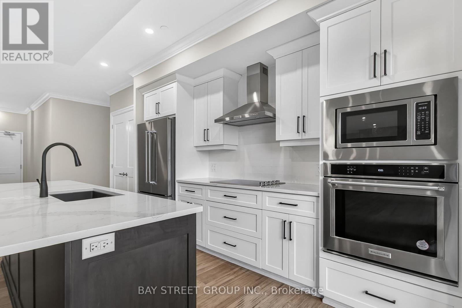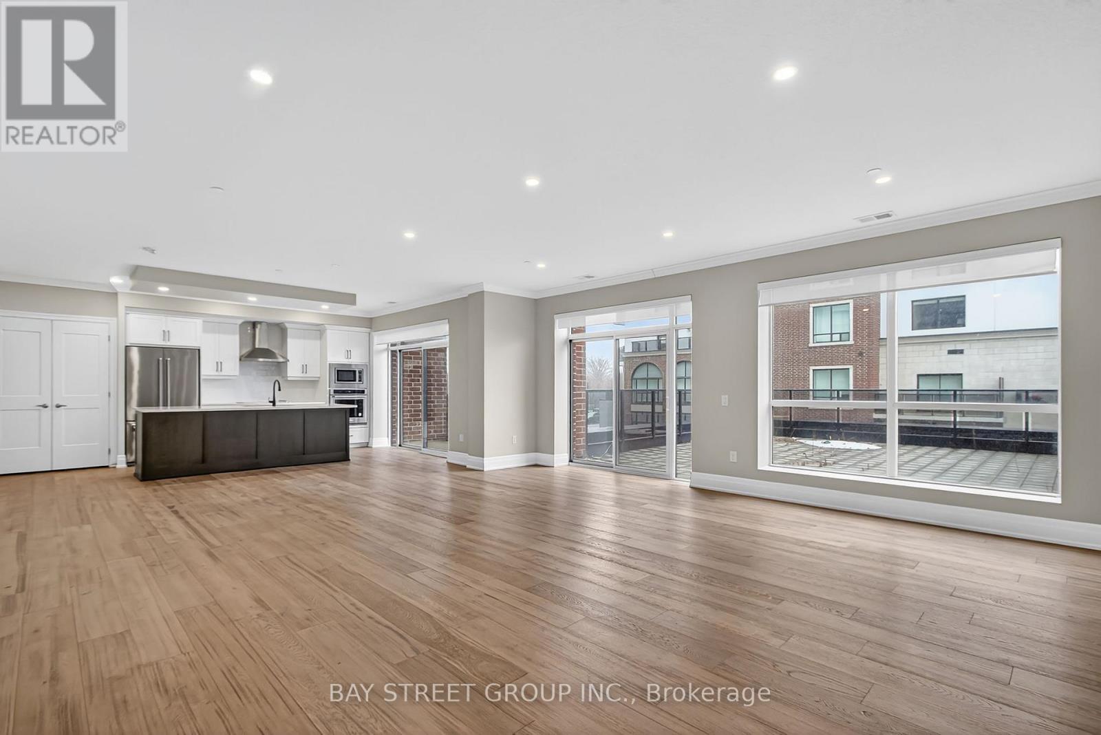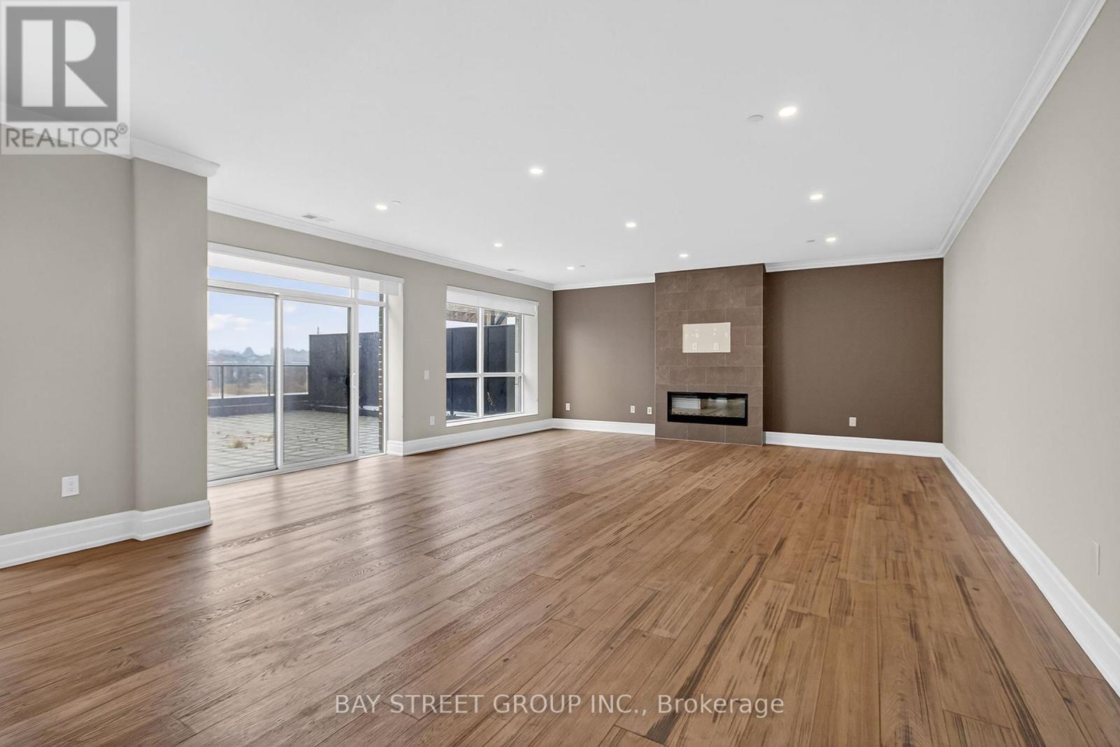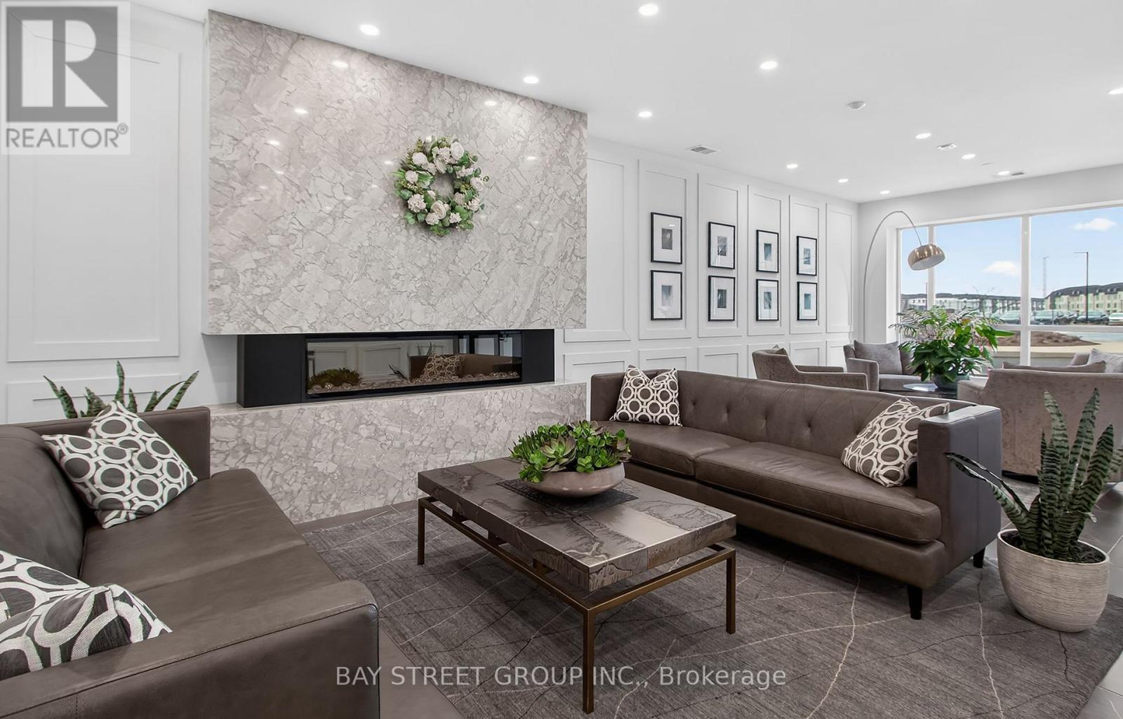 Welcome to NorthLink Condominiums by Tricar, where upscale design meets effortless condo living. This exceptional Signature Suite offers approximately 1,700 sq. ft. of beautifully finished interior space, complemented by a stunning 555 sq. ft. private terrace and an additional 110 sq. ft. balcony. Featuring two spacious bedrooms, including one with its own generous balcony, and a bright open-concept living area with an elegant electric fireplace and walk-out to the oversized terrace, this home is perfect for both relaxing and entertaining. Premium upgrades include fine cabinetry, quartz countertops, stainless steel and built-in appliances, 7" wide plank engineered hardwood flooring, and custom designer lighting throughout. Two exclusive parking spaces are included-one with an EV charger-plus ample visitor parking. Residents enjoy access to outstanding amenities, including a fitness studio, golf simulator, resident lounge, and sports court, making this an ideal opportunity for those seeking luxury, convenience, and maintenance-free executive living. (id:64974)