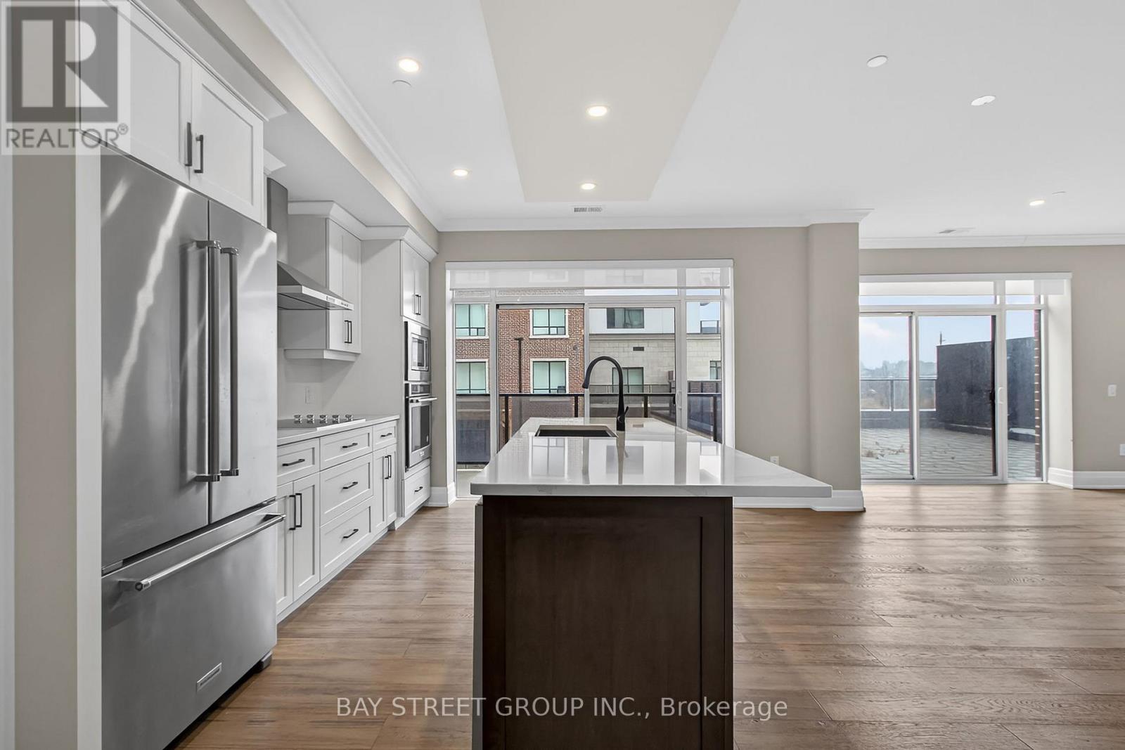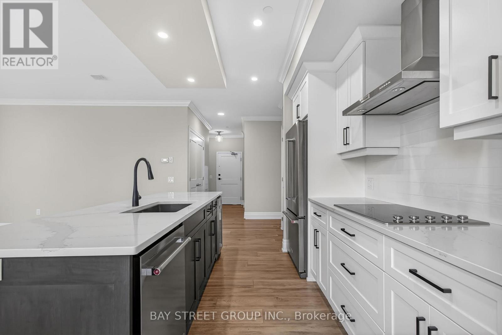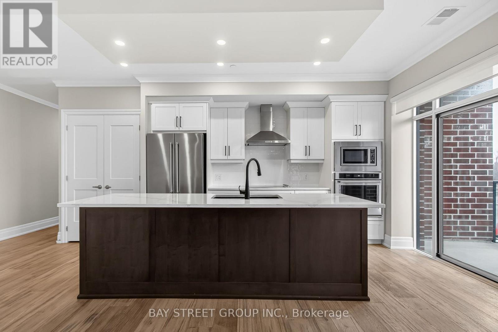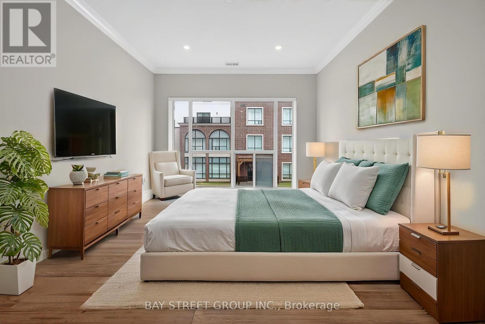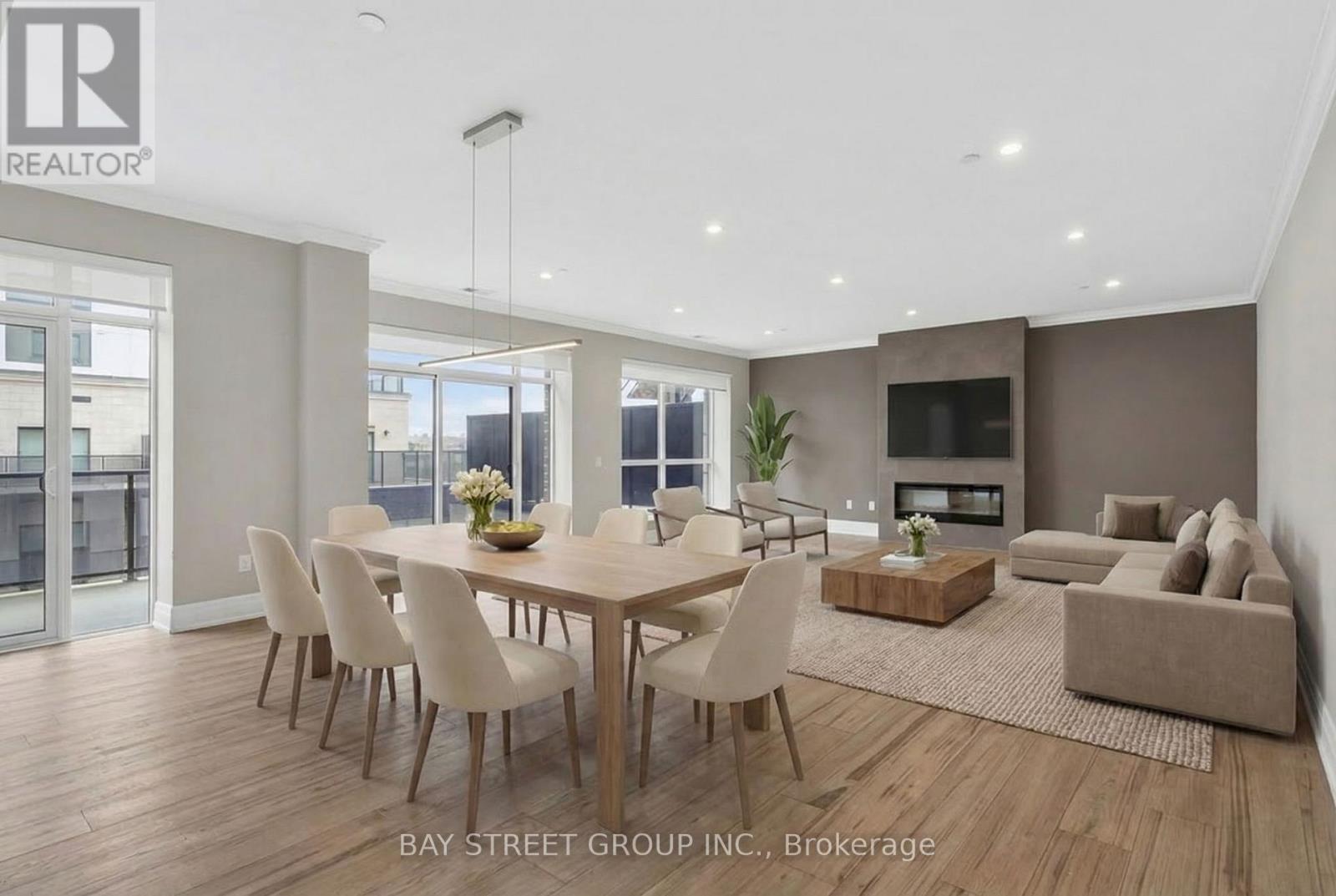 Welcome to NorthLink Condominiums by Tricar, where upscale design meets effortless condo living. This exceptional Signature Suite offers approximately 1,700 sq. ft. of beautifully finished interior space, complemented by a stunning 555 sq. ft. private terrace and an additional 110 sq. ft. balcony. Featuring two spacious bedrooms, including one with its own generous balcony, and a bright open-concept living area with an elegant electric fireplace and walk-out to the oversized terrace, this home is perfect for both relaxing and entertaining. Premium upgrades include fine cabinetry, quartz countertops, stainless steel and built-in appliances, 7" wide plank engineered hardwood flooring, and custom designer lighting throughout. Two exclusive parking spaces are included-one with an EV charger-plus ample visitor parking. Residents enjoy access to outstanding amenities, including a fitness studio, golf simulator, resident lounge, and sports court, making this an ideal opportunity for those seeking luxury, convenience, and maintenance-free executive living. (id:64974)