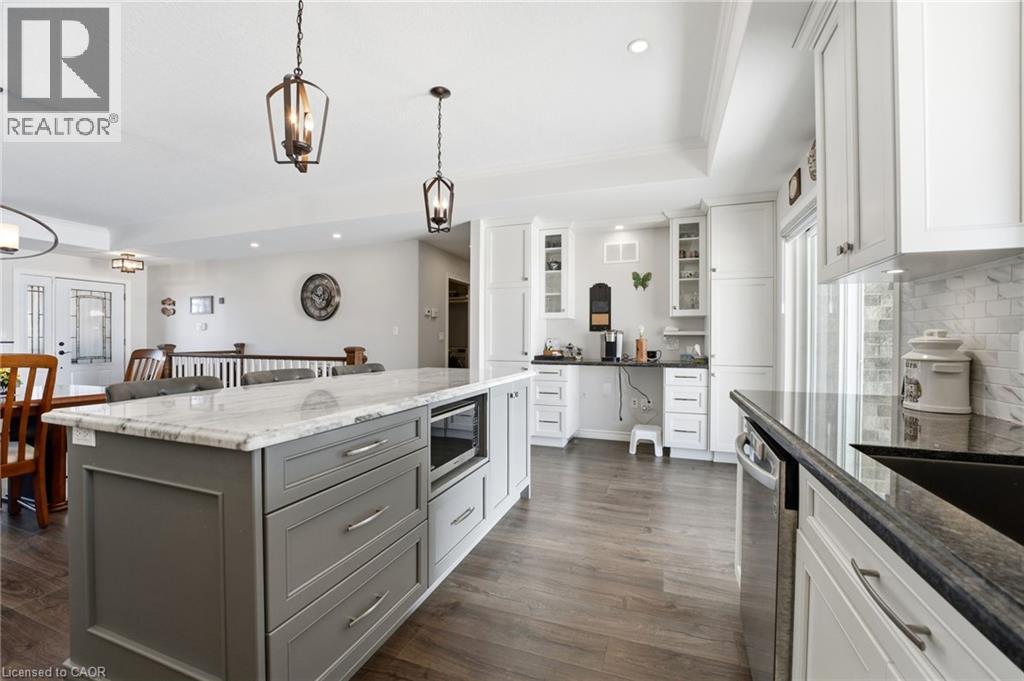 WALK-UP, FIREPLACE, & MAIN FLOOR LAUNDRY. This custom-built bungalow offers exceptional curb appeal and an impressive 6-car driveway, along with a double car garage and convenient walk-up access from the basement to the garage. Step inside to the open-concept main floor designed for both everyday living and entertaining. The inviting living room features a cozy fireplace and flows seamlessly into the dining area and stunning custom kitchen. You’ll love the thoughtful details, including granite countertops, a quartz-topped island with built-in microwave shelf, and an elegant tray ceiling that adds a touch of sophistication. The main level offers two spacious bedrooms and two full bathrooms, including a beautiful primary retreat complete with a walk-in closet and a luxurious 4-piece ensuite showcasing a double vanity and glass shower. A convenient laundry/mud room with folding counter adds everyday practicality and direct functionality to the space. Downstairs, the fully finished basement expands your living area with a generous rec room featuring an electric fireplace, two additional bedrooms, and a full bathroom. Enjoy outdoor living in the fully usable backyard featuring a covered concrete deck plus a handy storage shed for all your tools and toys. This thoughtfully designed home blends comfort, style, and functionality in a desirable location. (id:64974)