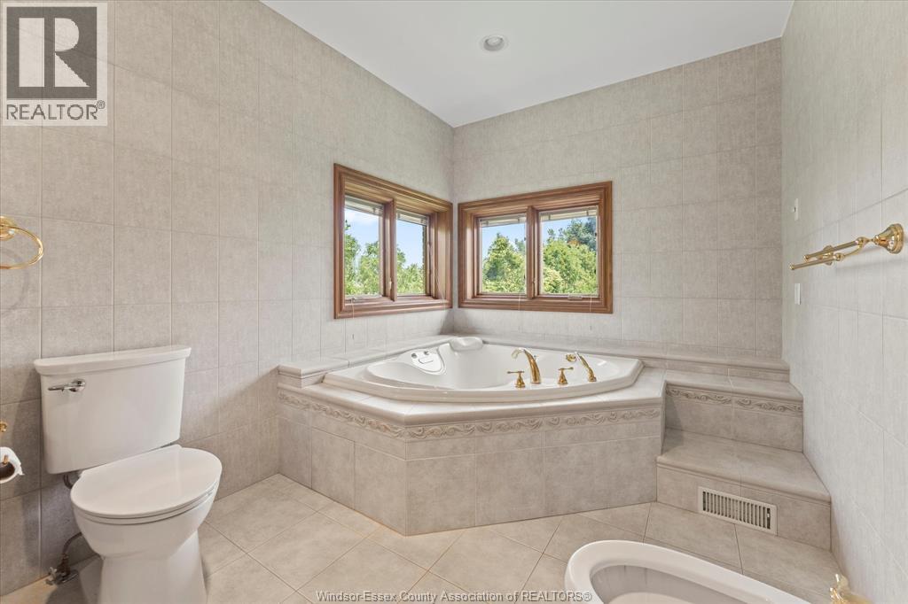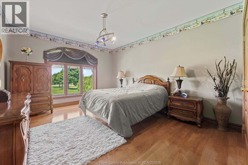 First time on the market, this custom-built all-brick ranch offers an exceptional blend of luxury, comfort, and quality craftsmanship on just under an acre of beautifully landscaped grounds. Lovingly maintained by its original owner, this one-of-a-kind home showcases premium materials and timeless design throughout. Featuring 3+2 bedrooms and 3 full bathrooms, the home includes a spacious primary suite with a private ensuite, creating the perfect private retreat. Step inside to find stunning inlay wood windows and doors with aluminum cladding, all complete with Pella blinds, along with rich oak flooring and trim, and elegant porcelain tile finishes. The bright living room impresses with a vaulted ceiling and gas fireplace, while the formal dining room offers an elegant setting for hosting family and friends. The well-appointed kitchen includes a second eat-in space and opens to a balcony overlooking the serene backyard, ideal for morning coffee or evening sunsets. The walkout basement adds incredible versatility, perfect for multi-generational living or extended family, featuring a second full kitchen, two additional bedrooms, a large family room with a natural fireplace, games room, and a full bathroom, creating a complete lower-level suite. Additional highlights include in-floor heating on both levels, a walk-in cooler, an epoxy-coated garage floor (2024), and a durable 50-year shingle roof with ridge venting for long-term peace of mind. Every detail reflects thoughtful design and meticulous care. With its rare combination of high-end finishes, functional layout, and impressive outdoor space, this remarkable property is truly a standout and ready to welcome its next chapter. (id:64974)