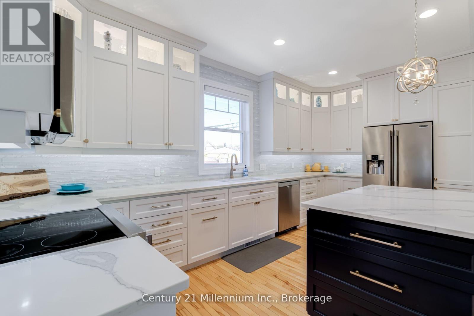 Welcome to 210 Minnesota Street a home on one of Collingwood's most loved streets. There's a reason homes here rarely change hands. The street has a quiet confidence to it mature trees, friendly faces, and a location that puts everything within reach without feeling busy. Inside, the kitchen is the kind of space people naturally gather around. It features a quartz island with plenty of seating ideal for family meals, casual hangs, or hosting without fuss. Hardwood floors and high ceilings carry through the main level, where oversized windows and a gas fireplace anchor a bright, open living space. Upstairs, you'll find three large bedrooms and two bathrooms, including a primary suite with a Jacuzzi tub a small luxury that doesn't go unnoticed. The finished basement adds even more flexibility: open space for movie nights, a play area, home gym, or all three. There's also a workbench, extra storage, and a convenient 2-piece bath. The backyard feels like an escape: a private patio, hot tub, and shaded corners surrounded by tall trees and timeless stonework. Its low maintenance and high reward. Just a short walk to trails, schools, downtown, the library, and parks 210 Minnesota offers not just a well-designed home, but a setting that feels grounded, easy, and hard to replace. (id:64974)