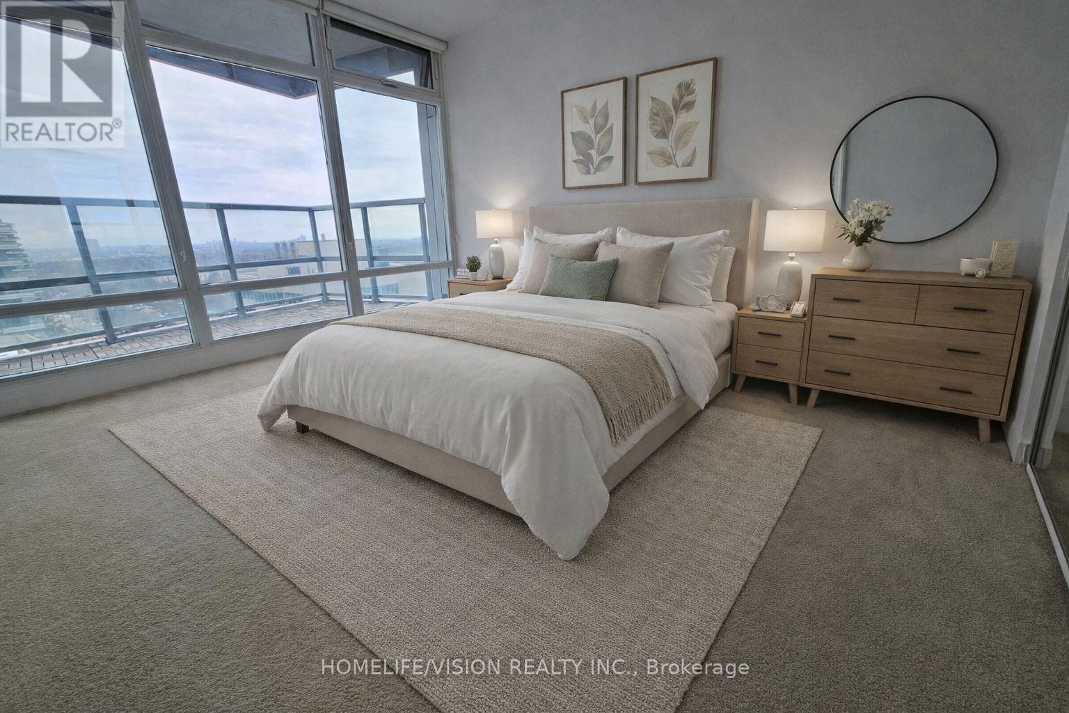 Welcome to Quantum South by Minto. This large one bedroom unit has a very desirable south-east exposure, amazing view with a good size balcony. Excellent floor plan, no wasted space. Floor-to-ceiling windows throughout means bright natural light and sweeping midtown skyline. Full-size living & dining space. Good size of bedroom with double mirror closet. **1 parking and 1 locker owned**. Amenities include 24/7 concierge, large indoor pool, sauna, gym, party/meeting rooms, theatre, guest suites and visitor parking. Prime Yonge & Eglinton location, steps to Eglington subway, groceries, parks, gyms, and dining within minutes. Schools nearby: Eglinton Jr PS, Hodgson MS, North Toronto C.I. Don't miss this excellent opportunity to live in one of the most desirable neighbourhoods in Toronto at an affordable price!!! The unit is vacant, show and close anytime. Some pics are virtually staged. (id:64974)