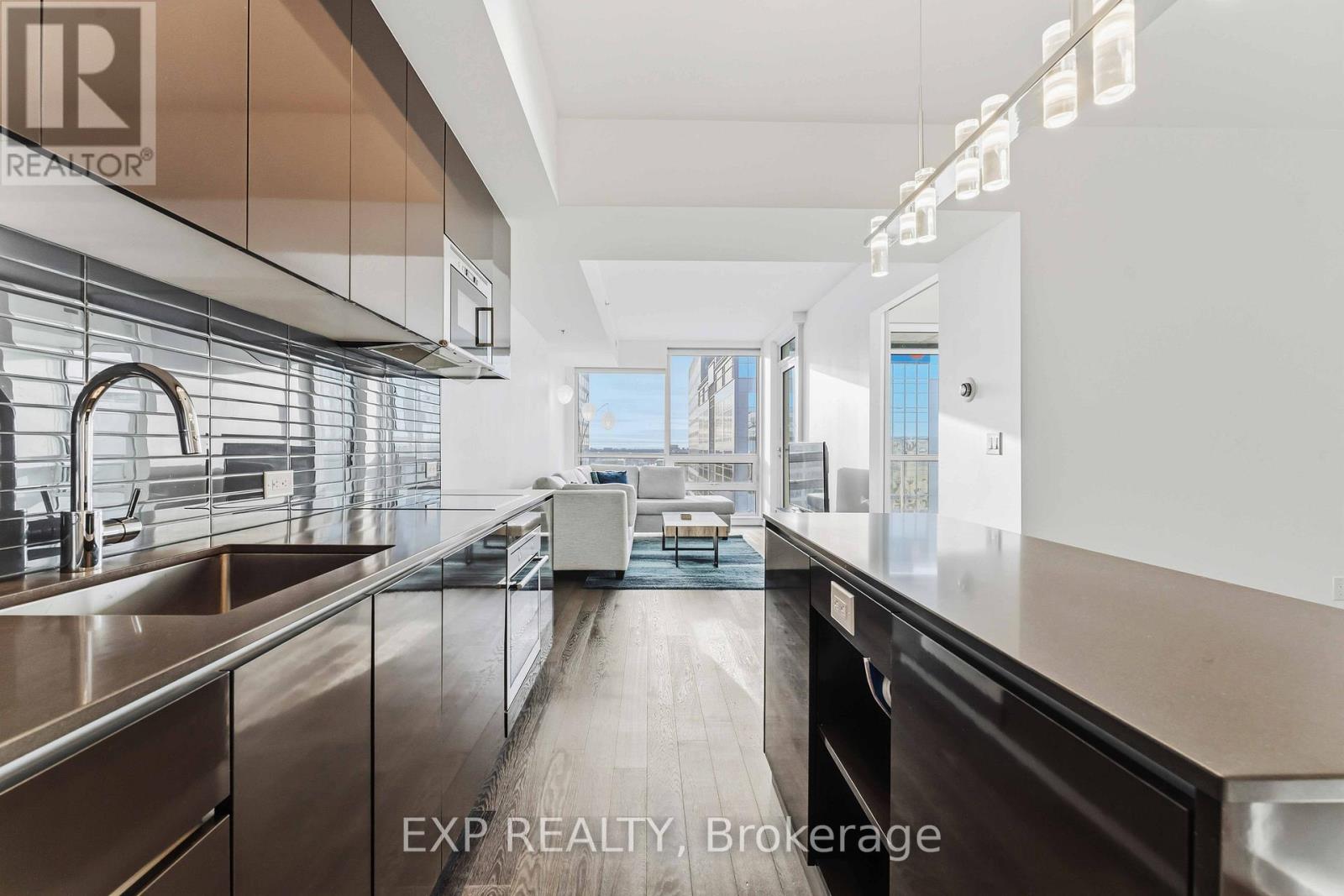 Welcome to this well-maintained one-bedroom plus den condo located on 21st floor (sub-penthouse level) of The Slater, a modern building with elegant designs in the heart of Ottawa's downtown core. This south-facing unit offers great downtown views and abundant natural light through floor-to-ceiling windows and an efficient open-concept layout designed for both comfort and functionality.The suite features contemporary finishes, hardwood flooring, a modern kitchen with stainless steel appliances, quartz counter tops and in-suite laundry. The den provides flexible space ideal for a home office or additional storage. A private balcony with beautiful downtown view and storage locker add further convenience.Residents enjoy access to a selection of well-designed building amenities including a fitness centre, party/meeting room, media room, and billiards room. Just steps from public transit, top restaurants, shopping, grocery stores, and Ottawa's financial district, this prime location delivers exceptional urban convenience. Ideally situated near the University of Ottawa, the Rideau Centre, and Parliament Hill, the building also features a dedicated bike room for residents, enhancing the ease and lifestyle of downtown living.Perfect for an urban professional or investor seeking a centrally located condo in a professionally managed building. (id:64974)