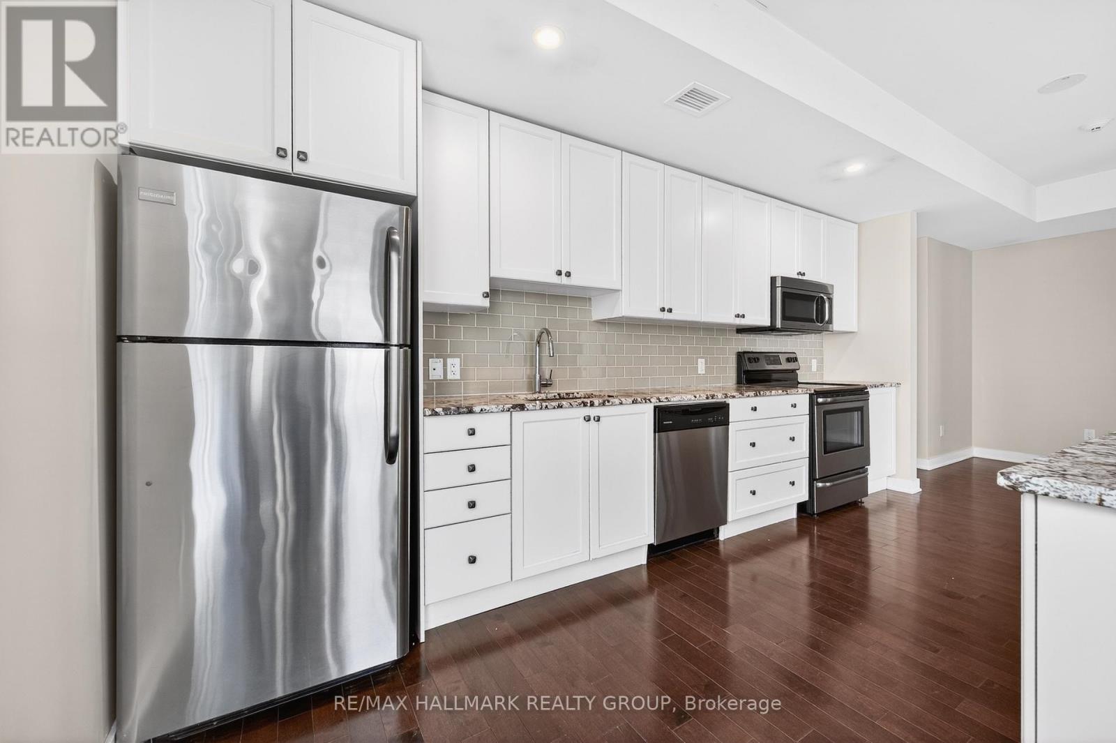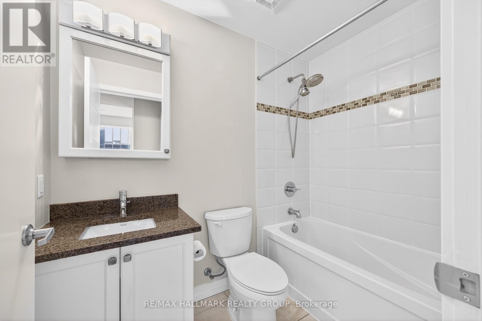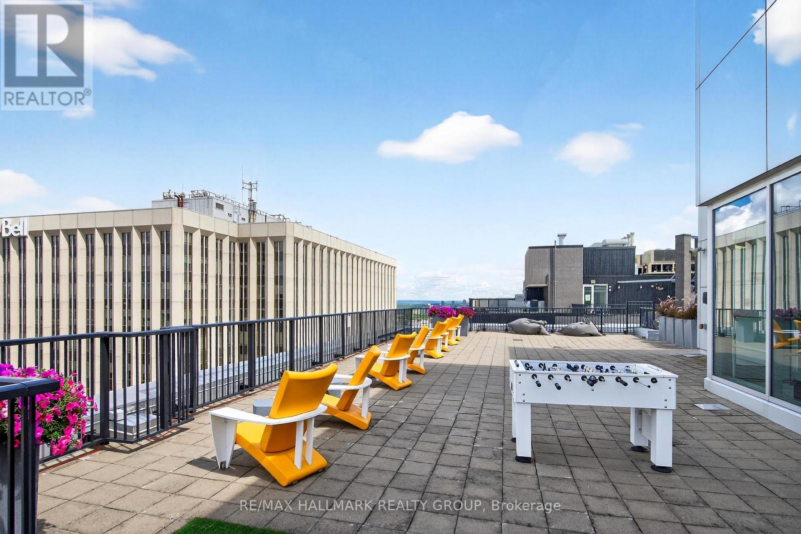 Welcome to The Surrey at Tribeca East! This beautifully maintained 1 Bedroom + Den condo offers 753 sq. ft. of bright, open-concept living space on the 21st floor, showcasing elevated city views and a smart, functional layout. This unit features a spacious primary bedroom, a versatile den ideal for a home office, and a modern kitchen/living/dining area designed for both everyday living and entertaining. The sleek kitchen is equipped with granite countertops, stainless steel appliances, and a moveable island, seamlessly connecting to the living space. Step onto your private balcony and take in the downtown skyline from above. Additional highlights include in-unit laundry and central air conditioning. Residents enjoy access to exceptional amenities, including a fitness centre, indoor pool, party room, rooftop terrace, and concierge service. Located in an unbeatable downtown setting - Farm Boy right next door and Parliament Hill, the Rideau Canal, LRT stations, shopping, and dining all within walking distance - you may not even need the one underground parking spot included. Ideal for professionals, downsizers, or investors seeking premium urban living at one of Ottawa's most desirable addresses. Condo fees include: Heat, Water, A/C, Building Insurance, Garbage Removal, Reserve Fund Allocation, and Building Maintenance. (id:64974)