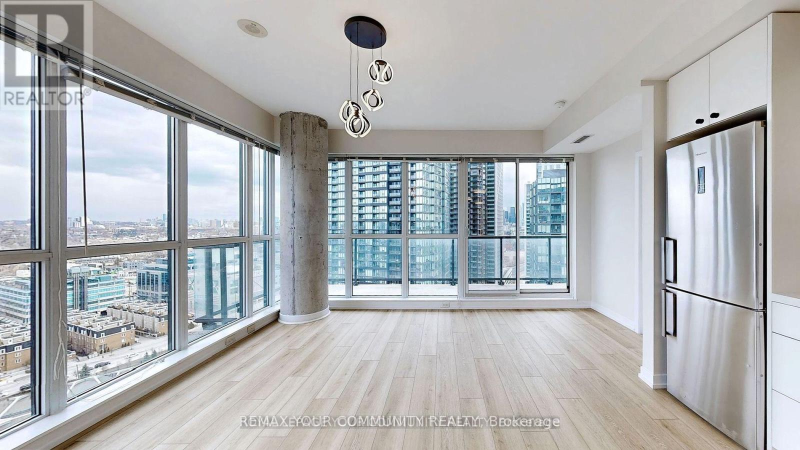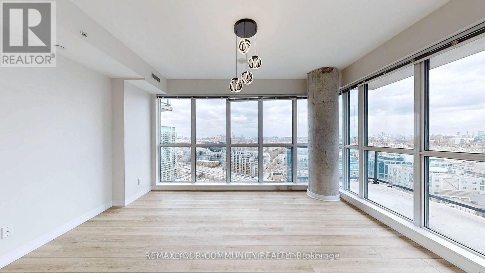 This condo unit and building amenities will absolutely impress you! Freshly painted, sun-drenched comer unit, 777 sq ft, offers 2 spacious bedrooms and 2 full bathrooms, with a smart split-bedroom layout that provides both comfort and privacy. The open-concept living and dining area features wall-to-wall, floor-to-ceiling windows that flood the space with natural light and offer unobstructed north and northeast views of Toronto's iconic skyline. Step outside to your private balcony, perfect for enjoying your morning coffee or relaxing after a long day. The renovated kitchen is a true highlight, complete with a brand-new stove, modern countertop, a stylish backsplash, and an upgraded faucet. Throughout the unit, new vinyl plank flooring and lighting adds warmth and modern appeal. The primary bedroom is a true retreat with a walk-in closet and ensuite bathroom featuring a glass stand-up shower. The second bedroom is equally spacious and located next to the second full bathroom, making it ideal for guests or roommates. This unit comes with a parking spot and locker, offering exceptional value in a sought-after neighbourhood. Residents of the building enjoy a wide array of luxury amenities, including a fully equipped gym, relaxing steam rooms, a seasonal outdoor lap pool and jacuzzi, an aqua-massage centre, media and games rooms, stylish party and meeting rooms, guest suites, a rooftop terrace with BBQs, and 24-hour concierge service. Located just steps from Metro, coffee shops, restaurants, Liberty Park, and the waterfront, this condo places you in one of Toronto's most vibrant communities. With TTC streetcars, Exhibition GO Station, boutique fitness studios, and scenic walking trails all nearby, convenience is at your doorstep. Whether you're looking to entertain, relax, or explore, this condo has it all. Move in and experience the best of Liberty Village living. (id:64974)