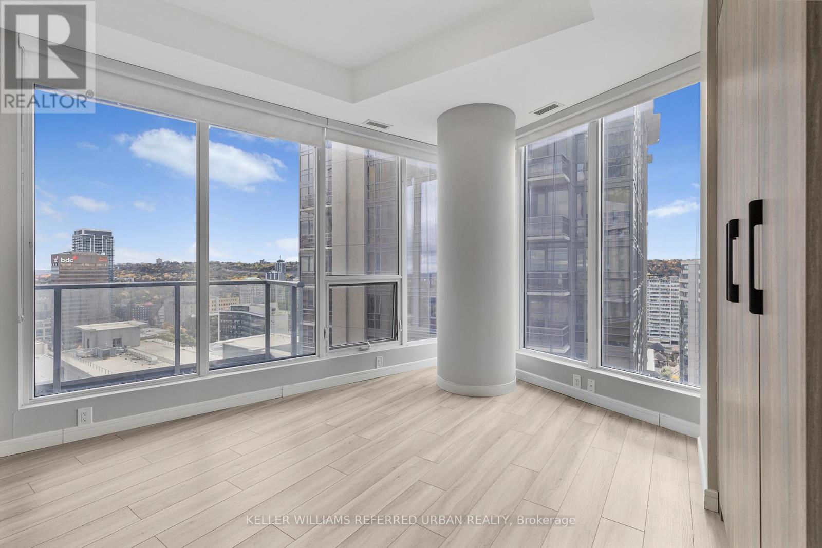 Experience upscale urban living in this beautifully designed, spacious, luxury apartment at 20 George Street, one of Hamilton's most desirable addresses. This contemporary high-rise offers a perfect blend of sophistication, convenience, and comfort - ideal for professionals seeking a stylish home base in the city's vibrant core. Step inside this spacious 923 squarefoot, 2 bedroom, 2 bathroom open-concept suite featuring floor-to-ceiling windows that flood the space with natural light and showcase breathtaking city and escarpment views. The sleek modern kitchen is equipped with stainless steel appliances, quartz countertops, plenty of cupboard space and elegant finishes throughout. You'll feel like a king looking out at the stunning south-east views over the city and beautiful escarpment from two spacious balconies. Lots of storage space, in-suite laundry, and custom blinds. Unwind at the end of the day in the premium building amenities including a state-of-the-art fitness centre with yoga room, rooftop terrace with BBQs, party lounge with pool table, meeting room/boardroom, bike storage and more. Parking available for additional $150 per month or $200 per month plus hydro for EV. Live in the heart of it all! Steps to Hamilton's vibrant restaurant and arts scene! You're minutes to James St, shops and restaurants, Go station, St Joseph's Hospital, McMaster University Downtown Centre, Jackson Square, FirstOntario Centre, the Art Gallery of Hamilton, 403/QEW highway access, and HSR Public transportation. Easy access to Bruce trail, Hamilton's waterfalls and Harbourfront parks. Whether you're a busy professional, medical resident, or executive seeking convenience and class, 20 George Street offers a truly elevated lifestyle in the Heart of Hamilton's ambitious downtown core! (id:64974)