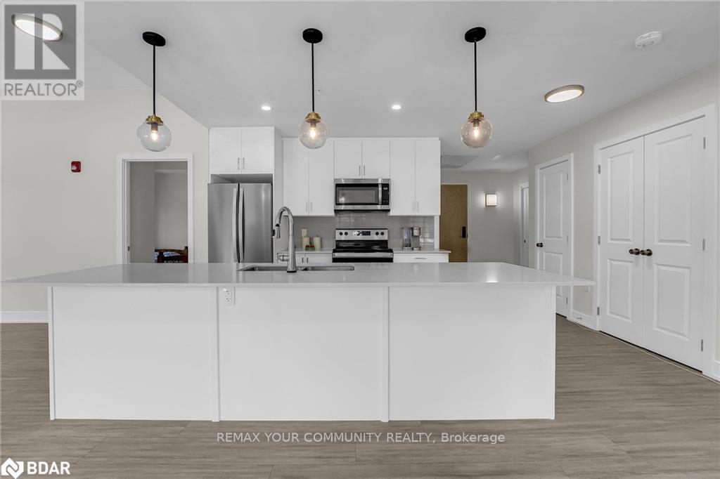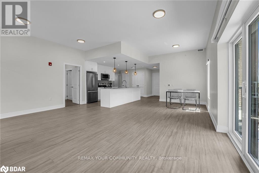 Experience luxury living in this expansive 3-bedroom, 2-bathroom corner-unit 1385 sq ft. condo, where modern elegance meets everyday convenience. Boasting a spacious open-concept layout, this home features high-quality laminate flooring throughout, a gourmet kitchen with quartz countertops, sleek cabinetry, and a breakfast island perfect for family gatherings or entertaining guests. The dining and living areas flow seamlessly, creating a bright and inviting space to call home. Ideally located just minutes from downtown Creemore, youll enjoy easy access to local breweries, artisan shops, restaurants, groceries, and more. Outdoor enthusiasts will appreciate the close proximity to Mad River Golf Club, scenic nature trails, and nearby parks, while winter and summer adventures await at Blue Mountain, Wasaga Beach, and surrounding ski resorts and beaches all just a short drive away. Residents also enjoy access to premium building amenities, including a fully equipped gym and a stylish party room for entertaining or relaxing with friends and neighbours. For added convenience, this unit includes one parking space and a storage locker. Dont miss the opportunity to elevate your lifestyle in this vibrant, sought-after community. Schedule your private viewing today and discover everything this exceptional condo has to offer! (id:64974)