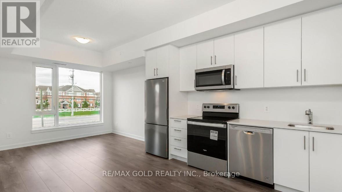 Welcome to 1440 Clarriage Court, Unit 211 in Milton! Beautifully upgraded 1 Bedroom + Den, 2 Bathroom condo built by Great Gulf. This modern unit features 9-ft ceilings, light grey laminate flooring, and a bright open-concept layout. The kitchen offers quartz countertops, premium stainless steel appliances and cabinetry. The living/dining area opens to a private balcony, perfect for relaxing or entertaining. The primary bedroom includes a large window and 4-piece ensuite. The versatile den is ideal for a home office or guest space, and a second full bathroom adds convenience. Includes one underground parking space and storage locker. Located close to Rattlesnake Golf Course, Spring ridge Farm, Mill Pond, Downtown Milton, Toronto Premium Outlets, and major highways. Perfect for first-time buyers, investors, or down sizers - modern living in a highly desirable community! (id:64974)