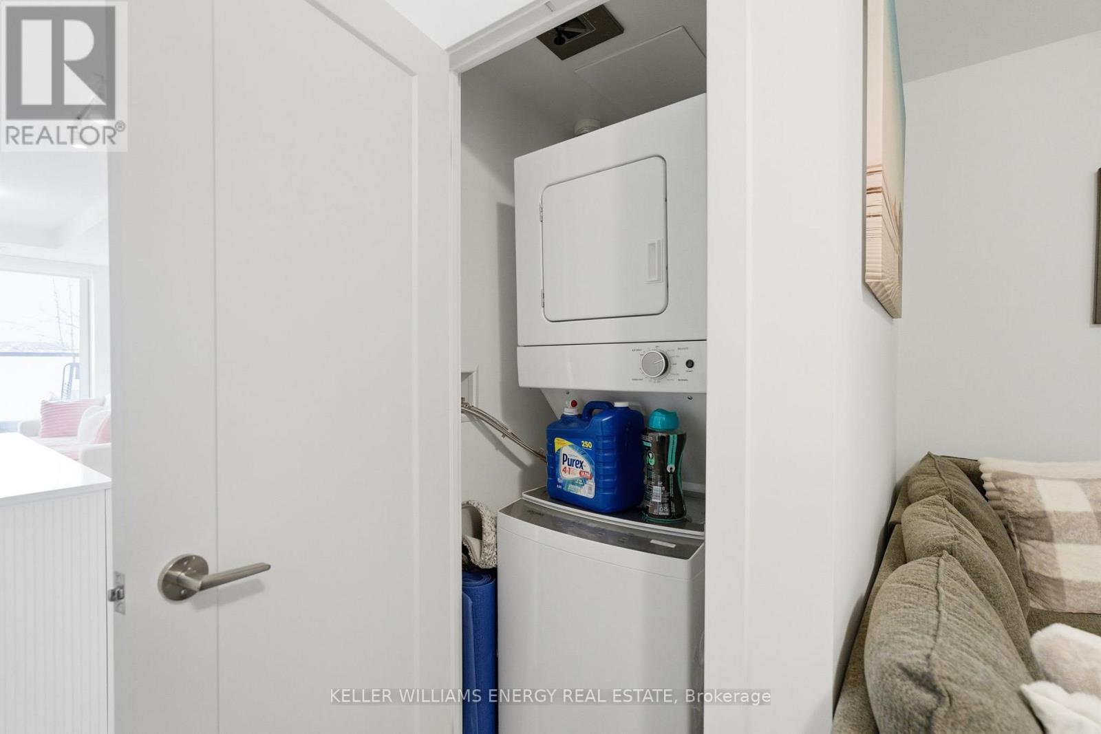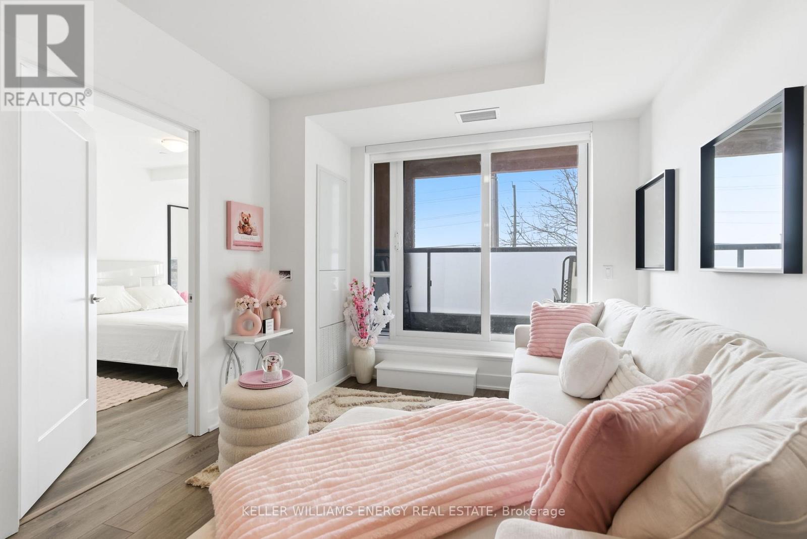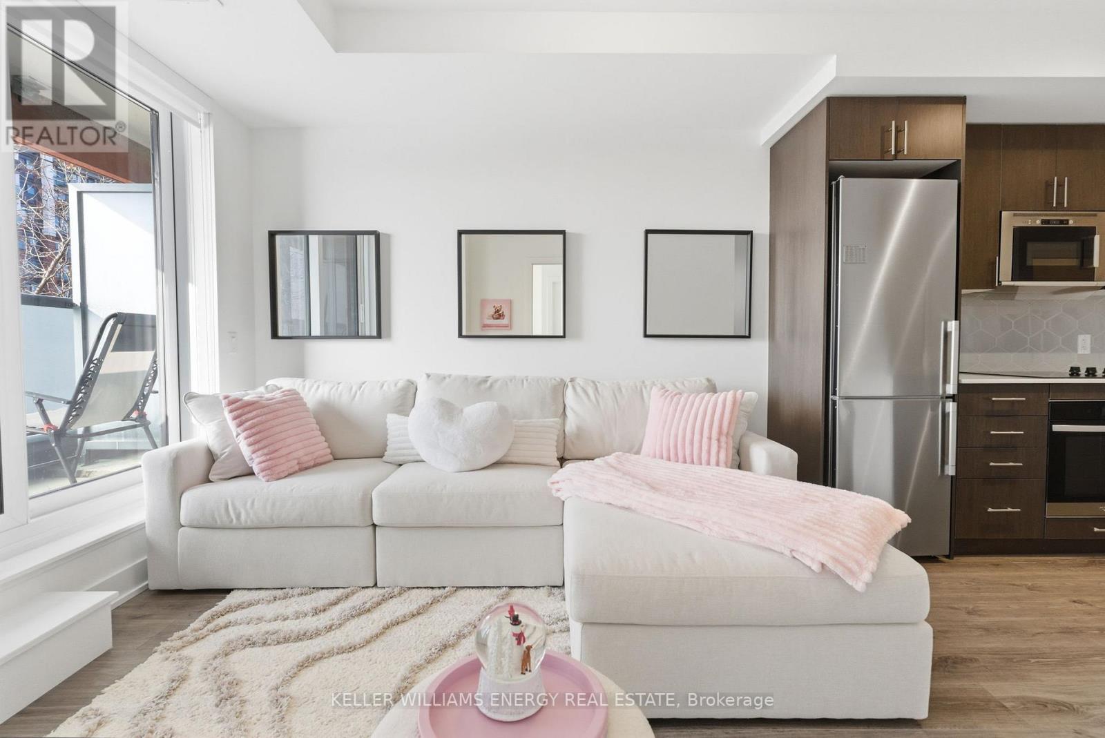 Thoughtfully designed and beautifully finished, this 1 bedroom plus den, 2 full bathroom condo offers a sophisticated living experience with a highly functional layout. The open-concept kitchen features quartz countertops, stainless steel appliances, and an eat-in island, flowing seamlessly into a generous living and dining area filled with natural light and direct access to a private balcony. The separate den provides flexibility for a home office or an additional living space, while the primary bedroom is complete with a spacious, spa-inspired ensuite. This suite also includes a coveted underground parking space.Residents enjoy access to premium building amenities, including concierge service, fitness and yoga studios, lounges, party space, rooftop outdoor areas, and guest suites. Ideally located steps to shopping, dining, and Costco, and minutes to Durham College and Ontario Tech University, with easy access to Highways 407, 412, and 401. (id:64974)