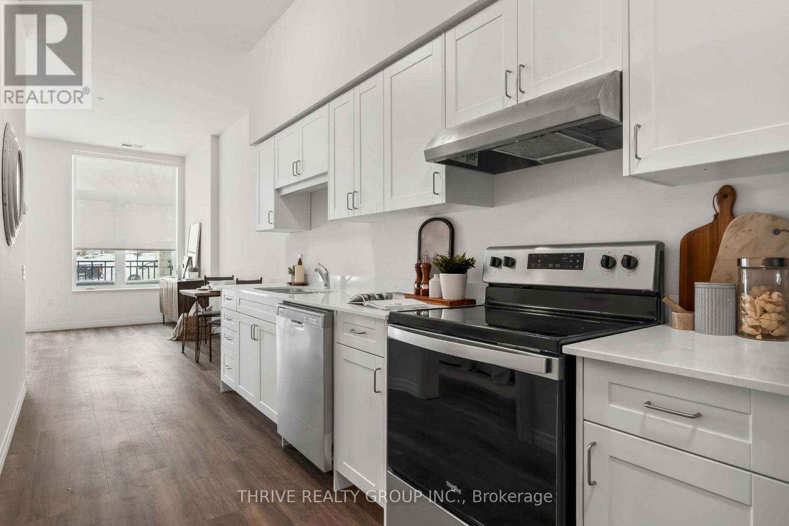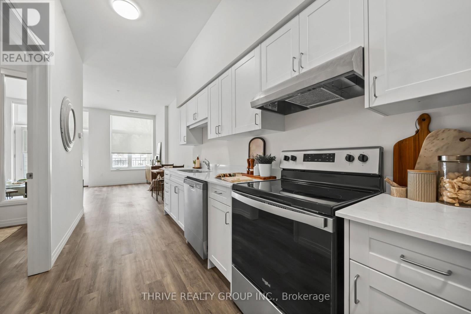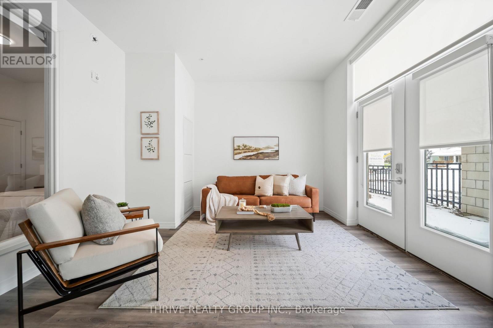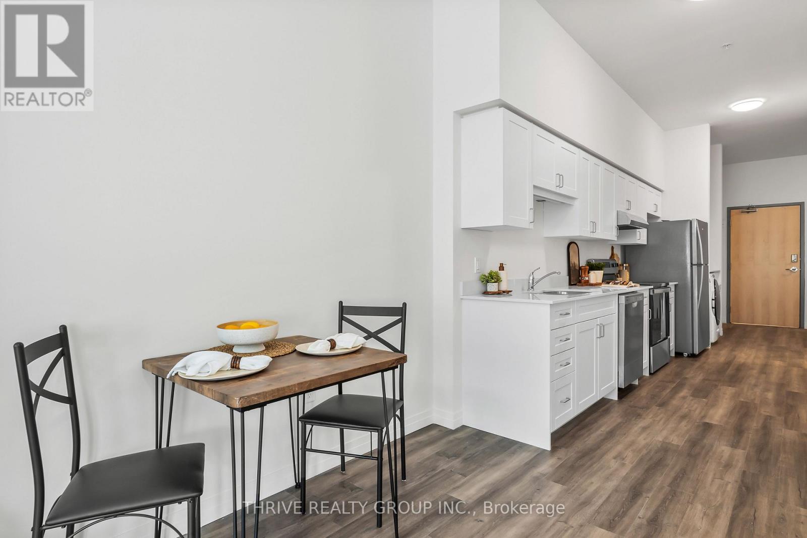 Welcome to Chelsea on the Thames, a brand new, purpose-built community in the heart of SoHo Village, thoughtfully designed to offer modern living in a vibrant, community-focused building. This barrier-free 1-bedroom, 1-bath suite offers approximately 654 sq. ft. of well-planned living space, featuring an accessible, open-concept kitchen and living area ideal for enhanced mobility and everyday comfort. Enjoy the convenience of in-suite laundry, a dishwasher, and efficient central heating and air conditioning for year-round comfort, plus 1 underground parking spot available for $50 per month. Tenants are responsible for Hydro. Located at 373 Hill Street, you'll be close to transit, parks, schools, and everyday amenities. *Photos are of a similar unit in the building and may not reflect the exact finishes or layout of this suite.* (id:64974)