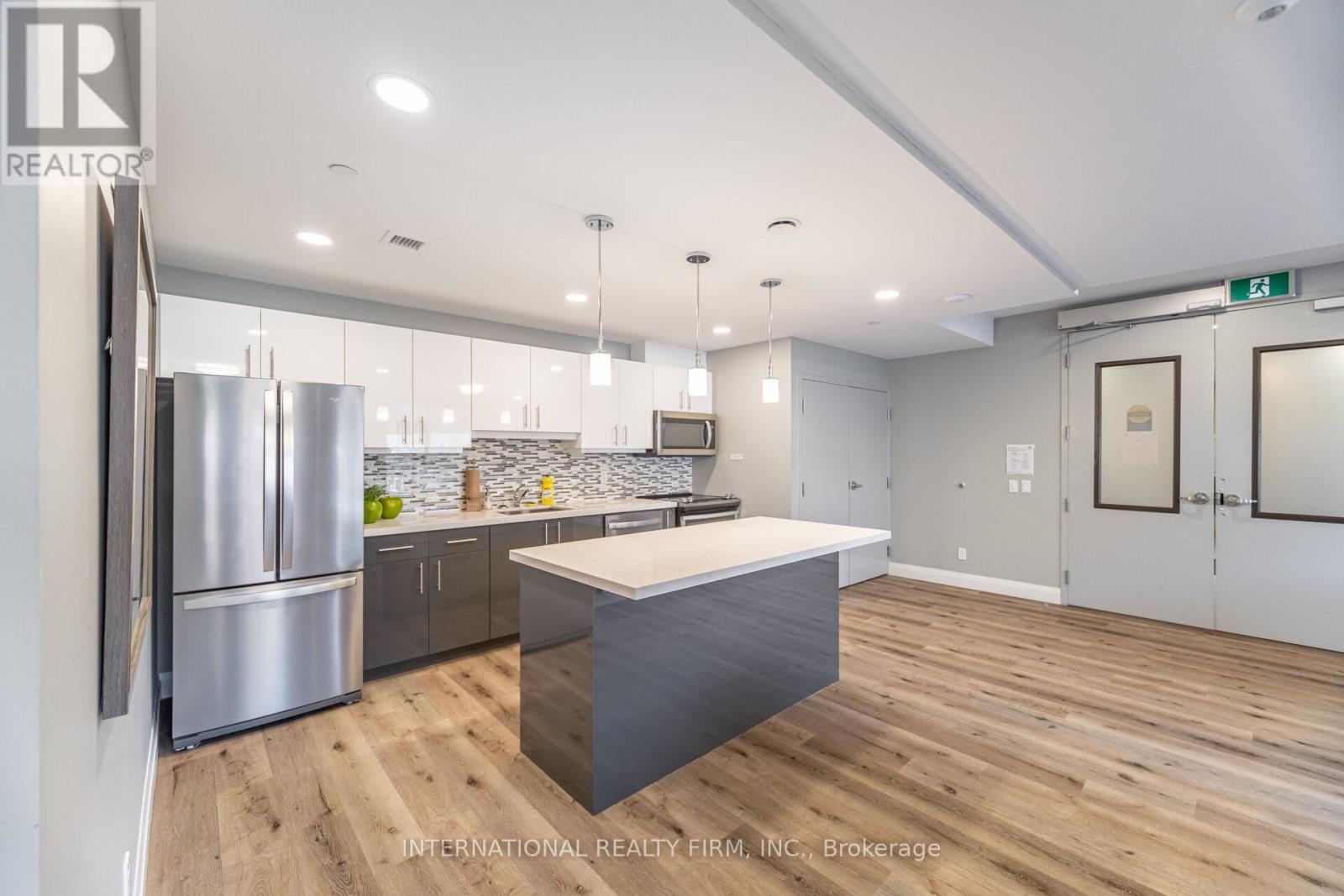 Welcome to Barra on Queen located on the historic grounds of the former Barra Castle in the vibrant heart of downtown Kitchener. Just steps from Victoria Park, top-rated restaurants, entertainment, DTK and the LRT; this prime location offers the perfect blend of convenience and lifestyle.The stunning suite features soaring ceilings and expansive windows that flood the space with natural light, along with a private walkout balcony-perfect for enjoying your morning coffee or unwinding at the end of the day. The modern kitchen is designed to impress, showcasing quartz countertops, stainless steel appliances, and a spacious island with seating for five-ideal for entertaining and everyday living.Residents at Barra enjoy an exceptional range of amenities right at their doorstep, including a fully equipped fitness center, stylish party room, and an outdoor BBQ/lounge area-perfect for relaxing or hosting guests.Experience urban living at its finest in one of Kitchener's most sought-after communities. (id:64974)