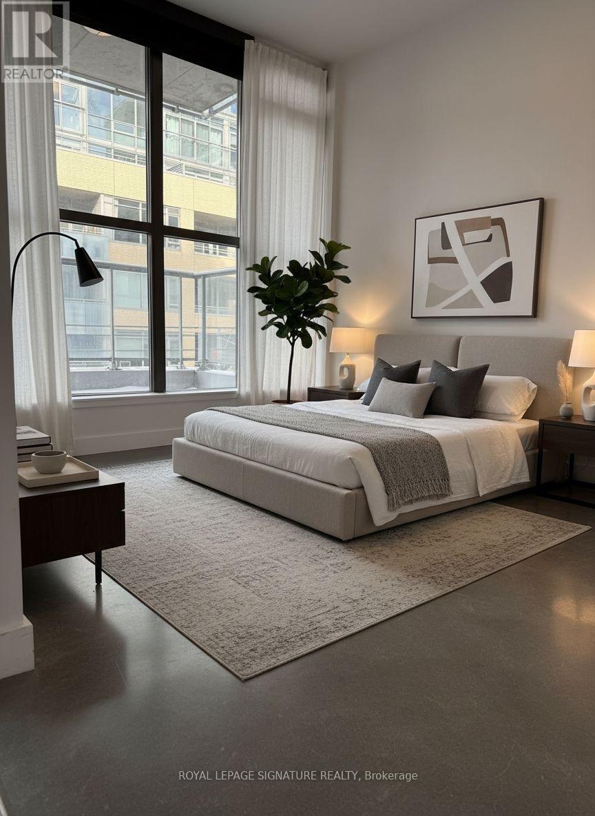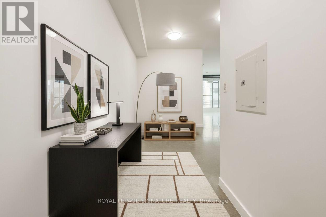 Discover the vibrant Riverside/Leslieville lifestyle in this stunning 1,000+ sq ft, 2-bedroom +den, 2-bath loft at the sought-after Edge Lofts Boutique Building. Showcasing soaring 10-foot ceilings and polished concrete floors throughout, this residence is designed with entertaining in mind and features a spacious open-concept living, dining, and kitchen area flooded with natural light and enhanced by thousands of dollars in thoughtful upgrades.The functional layout offers two generously sized bedrooms, including a primary retreat with an ensuite bath, plus a versatile den, perfect for a home office or additional storage. In suite laundry included.Enjoy seamless indoor-outdoor living with a private balcony off the living area, complete with a BBQ gas line, or head upstairs to your exclusive 420+ sq ft private terrace, equipped with gas and electrical hookups-ideal for gardening, entertaining, or unwinding with a good book.With TTC access at your doorstep and quick access to the DVP, commuting is effortless. Steps to acclaimed restaurants, cafes, parks, shopping, and the YMCA, this exceptional loft delivers the perfect blend of urban convenience and modern sophistication. ***Street permit parking available on East Don Roadway & Monthly parking is available at the Indigo lot located at 45 Baseball Place, which is just a three-minute walk away!*** (id:64974)