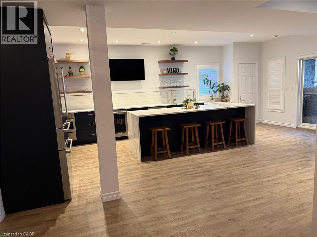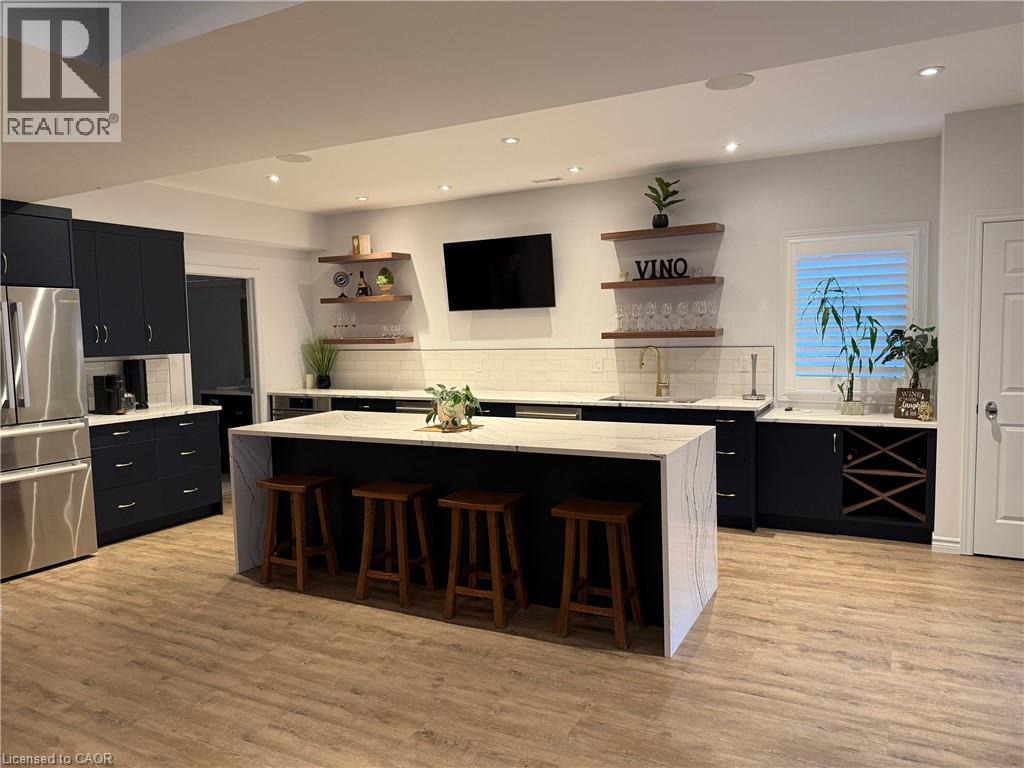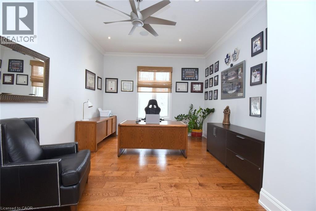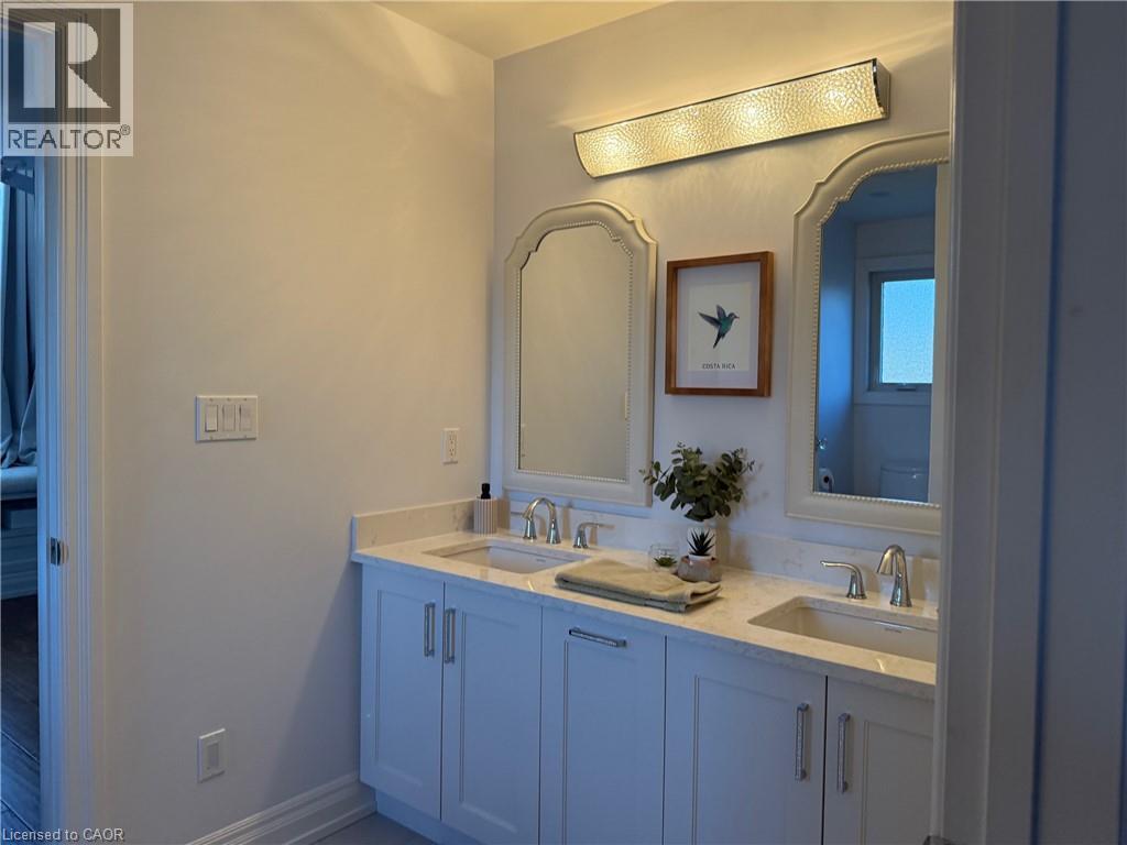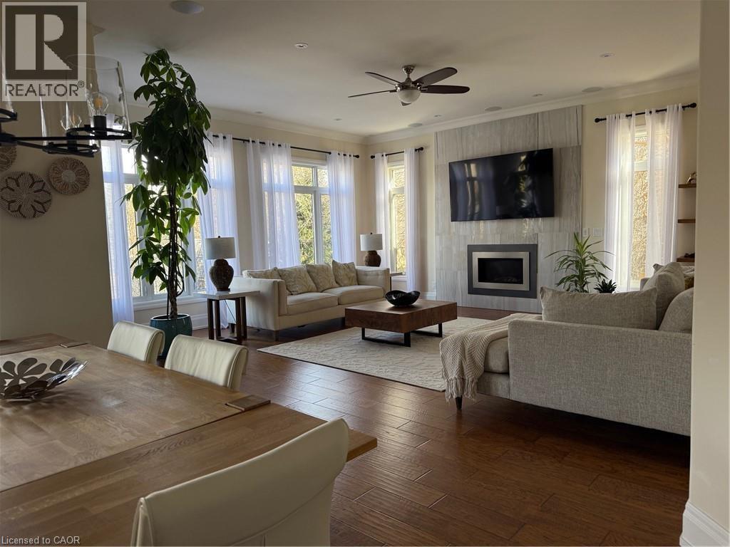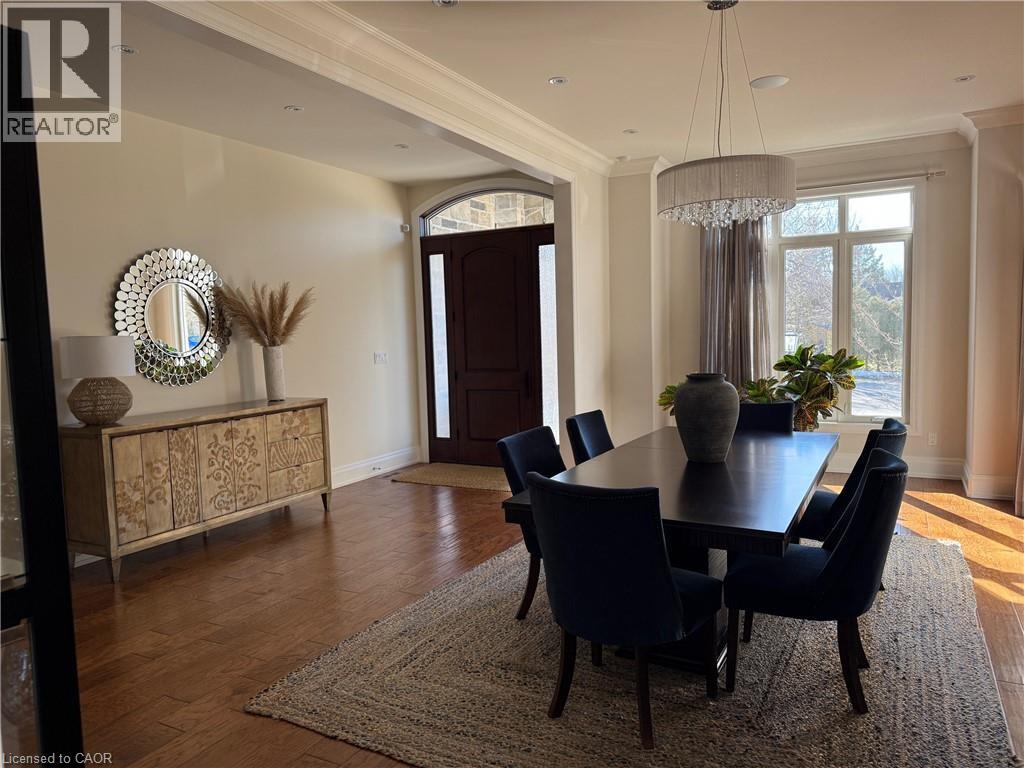 Welcome to this exceptional luxury residence nestled on a quiet, prestigious cul-de-sac in Ancaster. Situated on a rare 50’ x 200’ treed ravine lot, this home offers approximately 6,000 sq. ft. of total living space and a private, resort-style backyard backing onto forested greenspace. Featuring 4+1 bedrooms and 4+1 bathrooms, the home boasts 10’ ceilings on the main level, engineered hardwood throughout, an open oak staircase, and an abundance of natural light. Smart-home equipped with whole-home Sono’s audio, CAT5e wiring, Wi-Fi extenders, security cameras, alarm system, and video doorbell. The chef’s kitchen offers a 4x8 quartz island, gas stove with pot filler, built-in appliances, walk-in pantry, butler’s pantry, and wet bar. Spacious family room with gas fireplace and built-in surround sound. Main floor office/den ideal for work-from-home or in-law/nanny suite. The primary retreat features a private balcony, two walk-in closets, and a luxurious 5-piece ensuite with soaker tub, oversized shower, heat lamps, and bidet toilet. Convenient second-floor laundry and generously sized secondary bedrooms with walk-in closets. Fully finished walk-out basement with 9’ ceilings includes a bedroom, gym, second laundry, bar with quartz waterfall island, rec room with fireplace, and separate garage entrance—ideal for extended family or entertaining. A rare offering combining luxury, technology, and natural surroundings. Resort-style backyard highlights a 16x28 inground pool with waterfall, stone patios, outdoor gas fireplace and TV area, speakers, sprinkler system, smart lighting, and mature trees for ultimate privacy. Natural gas backup generator, EV rough-in, epoxy garage floors, and extensive landscaping complete this remarkable property. (id:64974)