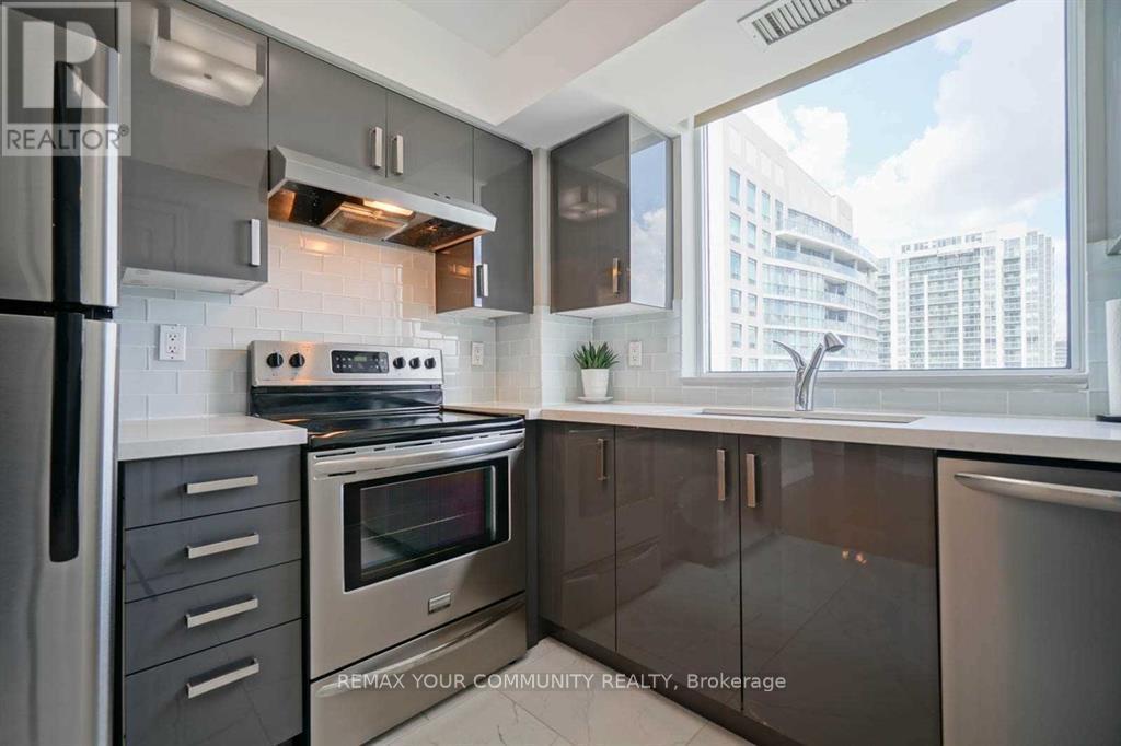 Bright and spacious 2-bedroom, 2-bathroom suite on the 21st floor with beautiful unobstructed city views. Functional open-concept layout featuring a modern kitchen, large windows, and plenty of natural light throughout. The primary bedroom includes a private ensuite, while the second bedroom is perfect for guests, family, or a home office. Enjoy a private balcony ideal for relaxing and taking in the skyline. Located in a highly desirable North York neighbourhood just steps to transit, shopping, restaurants, parks, and easy access to Hwy 401. Includes 1 parking space and 1 locker. Excellent building amenities and a convenient urban lifestyle. (id:64974)