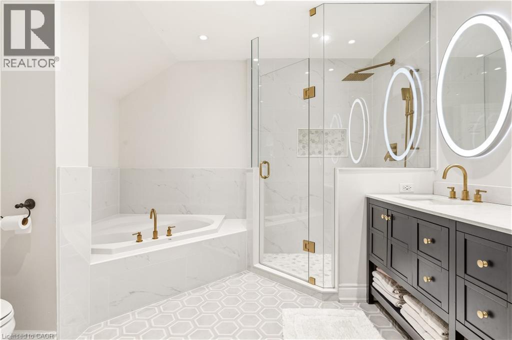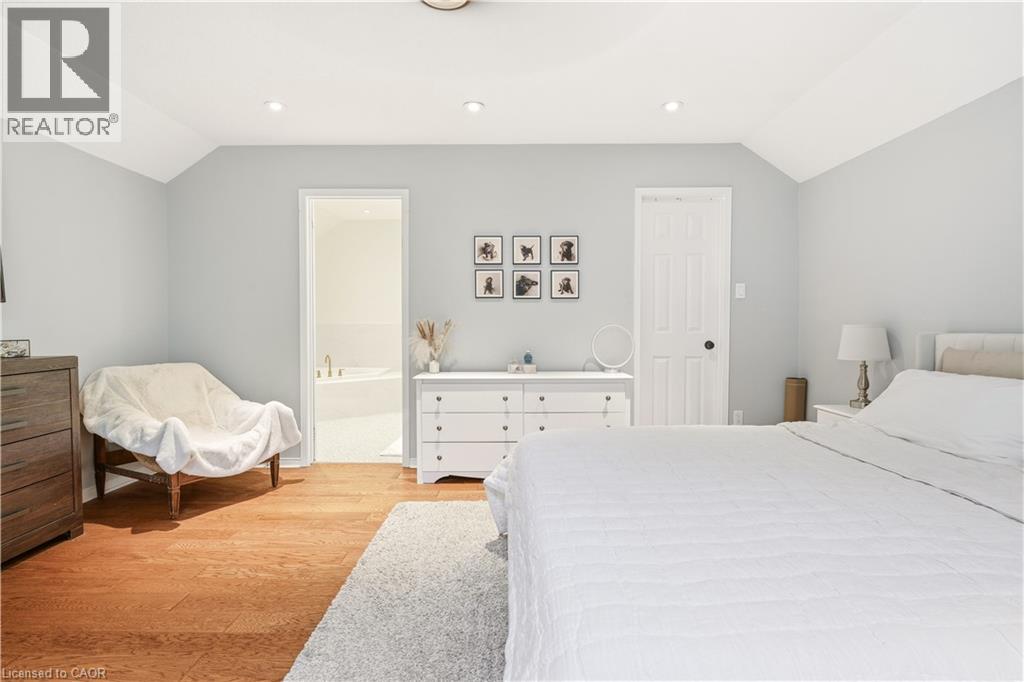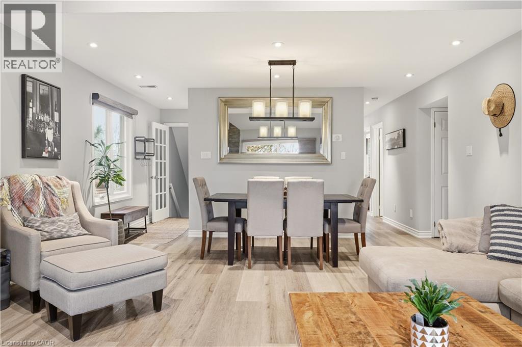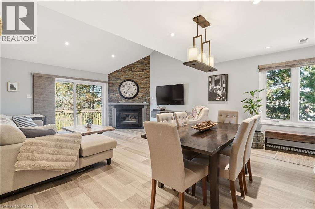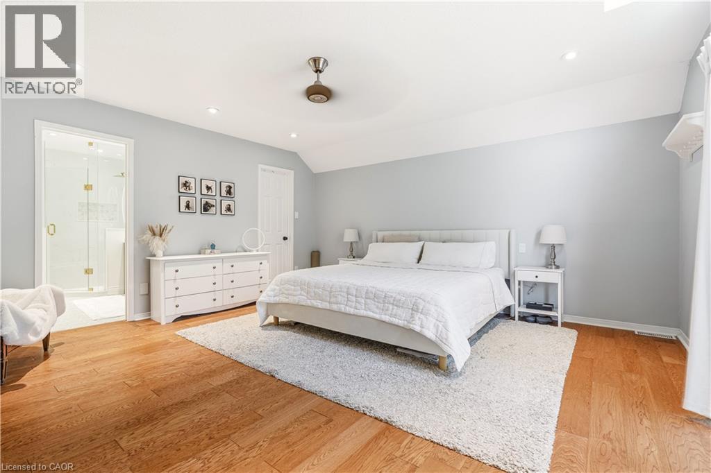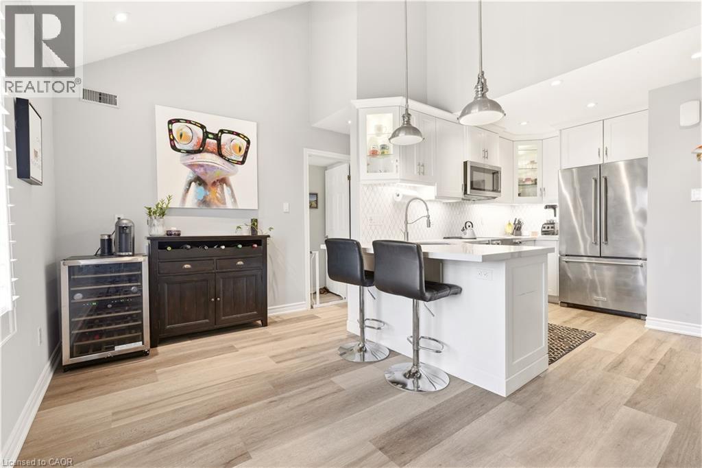 Welcome to this beautifully updated 3-bedroom, 2-bathroom end-unit townhouse in the highly sought-after Headon Forest neighbourhood of Burlington! This bright and stylish home features a newly renovated eat-in kitchen complete with quartz countertops and stainless steel appliances, offering both modern elegance and everyday functionality. The open-concept living and dining area boasts soaring vaulted ceilings and sliding door access to a private deck - perfect for BBQing and entertaining. You will find upgraded LED pot lights throughout the home, integrated with an automated smart lighting system controllable via mobile app and customizable settings. Enjoy the convenience of main floor laundry, along with two generously sized, sun-filled bedrooms and a well-appointed 4-piece bathroom on the main level. Upstairs, retreat to your own private primary suite, featuring a massive walk-in closet, juliette balcony, and a fully renovated ensuite with a luxurious soaker tub, heated floors and separate walk-in shower. Enjoy both a single car garage, as well as 1 outdoor parking space. As an end unit, this home offers added privacy and direct access to adjacent lawn space - ideal for kids to play - while backing onto Cleaver Park with playground and walking trails. Located just steps from shopping and restaurants, and easy access to highway access, this home combines comfort, style, and convenience. Don’t miss this incredible opportunity! (id:64974)