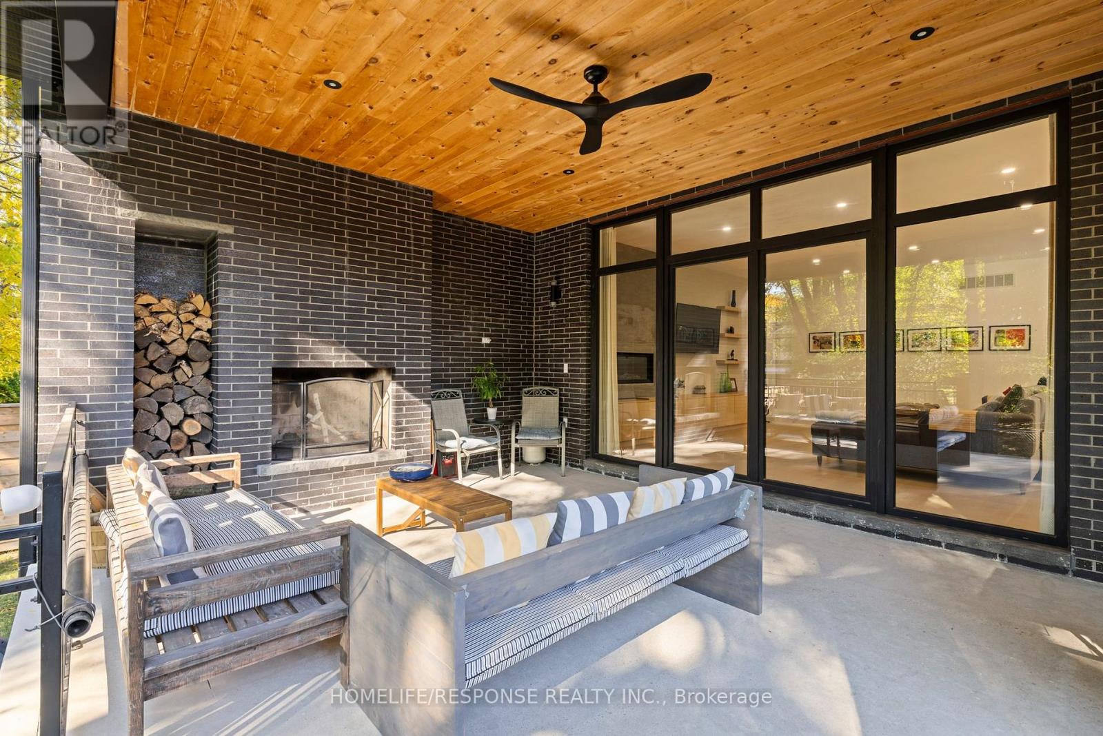 Custom-built family home offering over 6,800 sq ft of total living space on one of the most desirable streets in Applewood Acres, including a self-contained multigenerational/rental apartment. This architectural showpiece spans three bright & expansive levels with 10' & 9' ceilings, engineered white oak floors and floor-to-ceiling European windows & doors allowing visions of exterior landscapes throughout. The open-concept design flows to a pool-size fenced backyard with a 23'x16' covered patio with wood-burning fireplace, sunny deck, garden suite, mature trees, and ambient lighting-perfect for entertaining. The chef's kitchen features high-end appliances, quartz counters, full-height backsplash, oversized island, window framed breakfast area and butler's pantry to the formal dining room. The living area offers custom millwork, a sleek gas fireplace, and flexible family/office space. The second level includes 4 bedrooms, walk-in closets, ensuite/semi-ensuite baths with heated floors, laundry, skylights, and an open riser staircase. The primary suite boasts a private balcony, office nook, large walk-in closet, and spa-inspired 6-piece ensuite. The lower level includes a guest suite, recreation space, and a separate-entrance apartment with kitchen, living/dining area, bedroom, bath, and separate laundry area. Exterior features include stucco & black brick, a 4-car roughed-in heated concrete driveway, polished concrete walkway & porch with a double-lock solid wood door. 2-car garage w/access through custom mudroom. Situated Right Along The Toronto/Miss Border, just 15 Km to the Downtown Core. Walk to Applewood plaza, parks, and top schools. Easy access to: QEW&427, GO station, and Lake Ontario waterfront community. (id:64974)