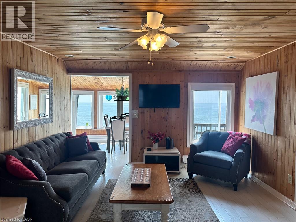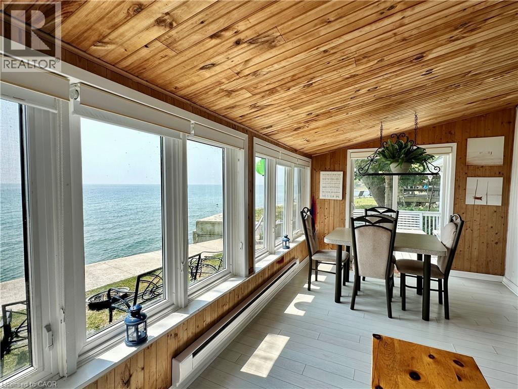 Peaceful Lake Erie retreat providing a rare blend of privacy, panoramic water views, and direct lakefront access. This 3-bedroom cottage features a spacious living area and a wall of lake-facing windows that fill the space with natural light and frame stunning views from sunrise to sunset. The property includes a garden shed for added storage, relaxing fire pit, and concrete steps leading down to the water. Located just down the road from Knight’s Beach Resort and short drive to Dunnville, this is an ideal opportunity for a serene lakefront getaway. (id:64974)