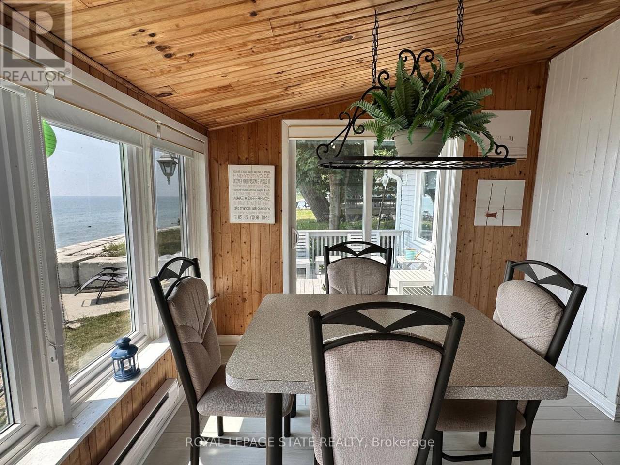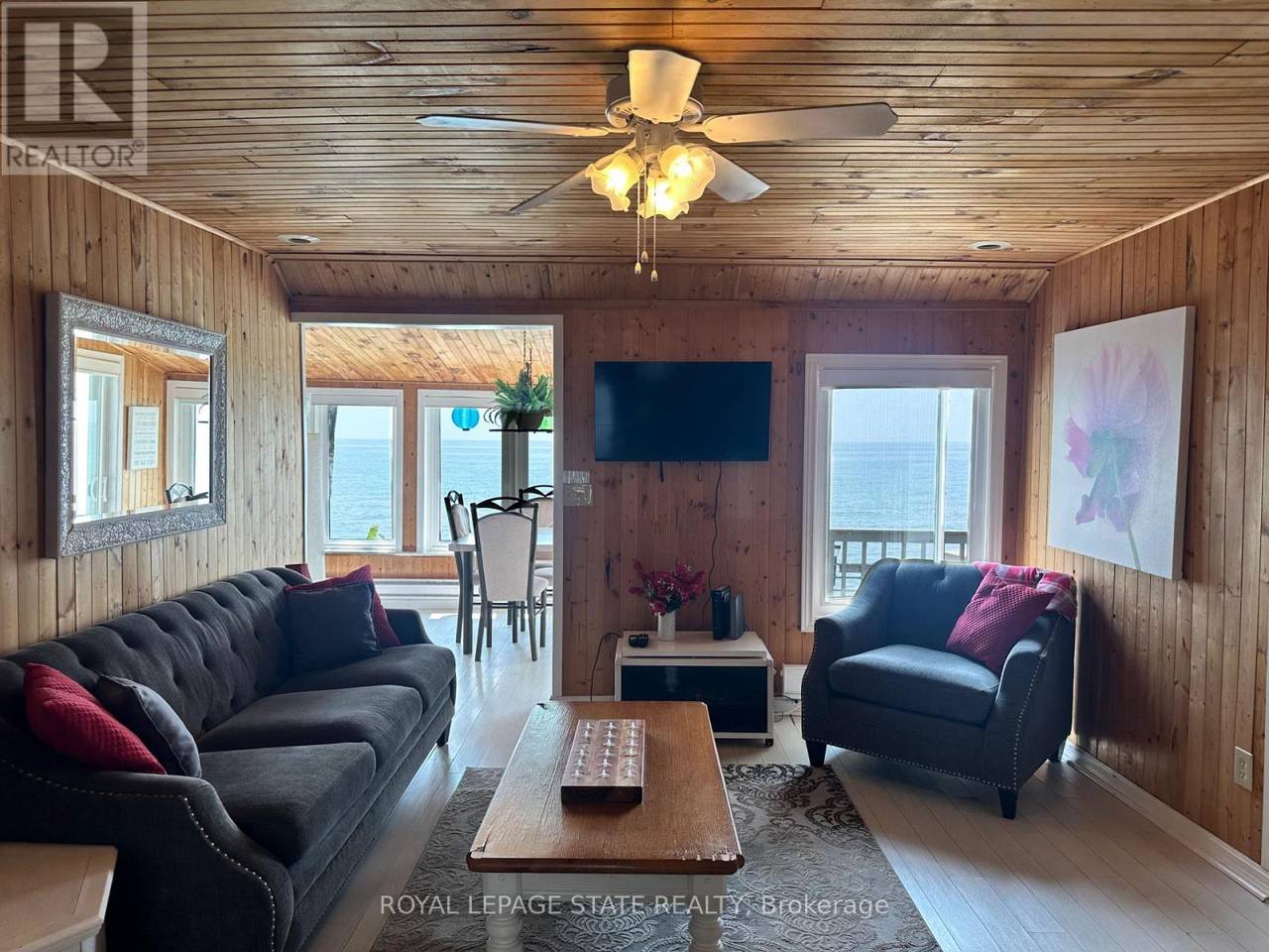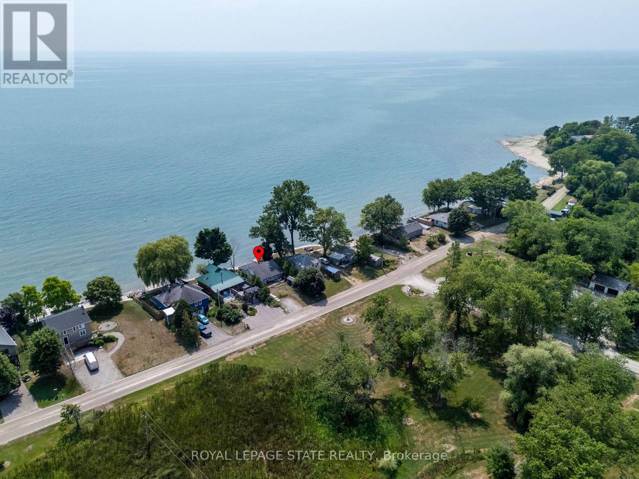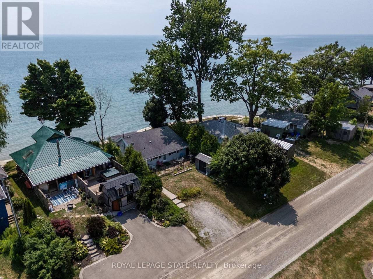 Peaceful Lake Erie retreat providing a rare blend of privacy, panoramic water views, and direct lakefront access. This 3-bedroom cottage features a spacious living area and a wall of lake-facing windows that fill the space with natural light and frame stunning views from sunrise to sunset. The property includes a garden shed for added storage, relaxing fire pit, and concrete steps leading down to the water. Located just down the road from Knight's Beach Resort and short drive to Dunnville, this is an ideal opportunity for a serene lakefront getaway. (id:64974)