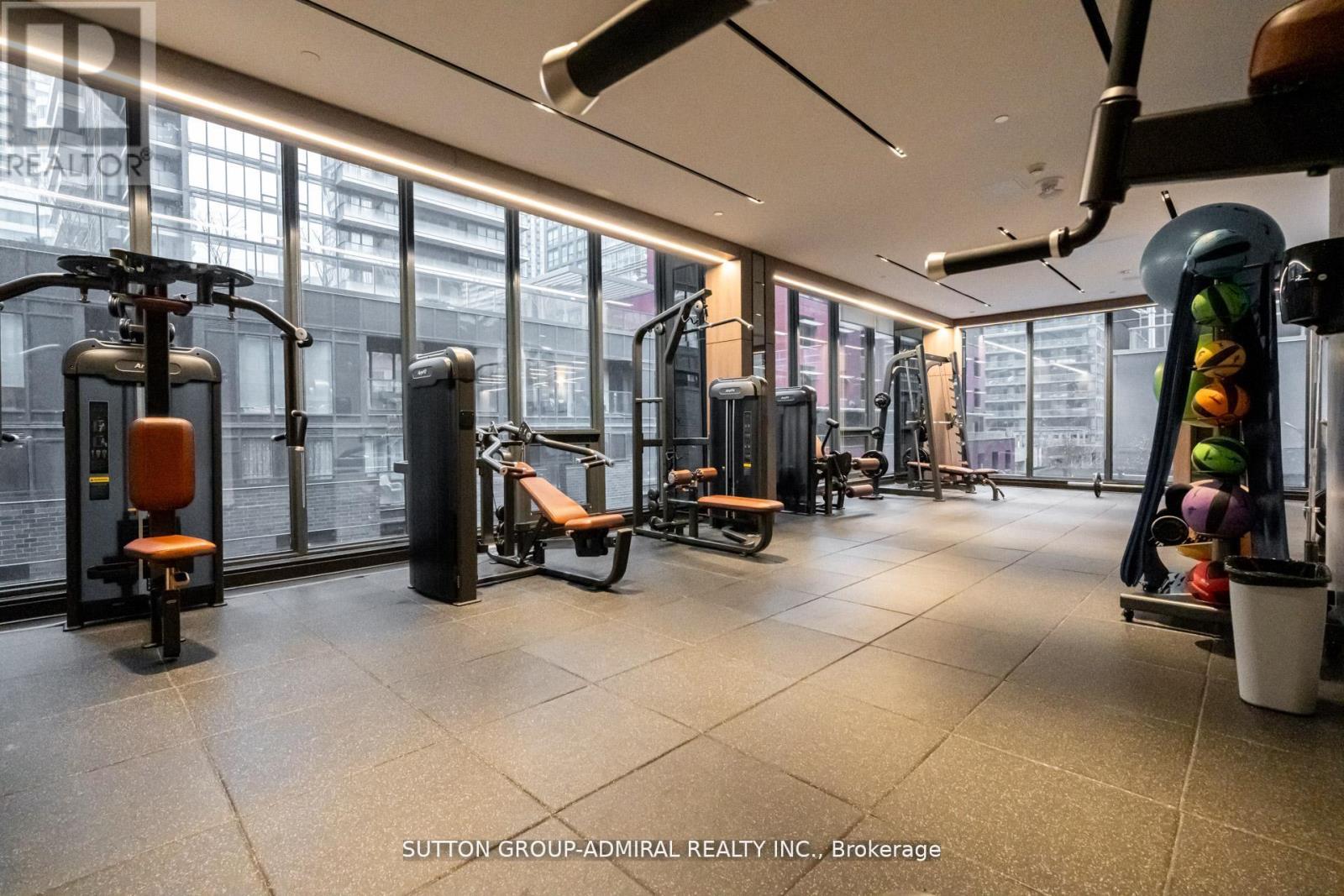 This modern boutique condo, located on a high floor, offers a sleek and open concept layout with a large den featuring a sliding door that can easily serve as a second bedroom. The custom kitchen includes a stylish island, integrated appliances, and custom countertops and backsplash, perfect for both cooking and entertaining. With wide plank flooring and floor-to-ceiling windows, the space feels expansive and bathed in natural light, showcasing stunning city views. Located in Toronto's vibrant Entertainment District, this condo boasts a 100 Walk Score and 100 Transit Score, placing you just steps from the CN Tower, Rogers Centre, and top-tier restaurants. Building amenities include a BBQ, gym, party room, and 24-hour security, adding convenience and luxury to daily living. With Union Station, David Pecaut Square, Thomson Hall, and essential services like banks, restaurants, and supermarkets all just 10 minutes away, this condo offers the perfect blend of modern living and urban accessibility. (id:64974)