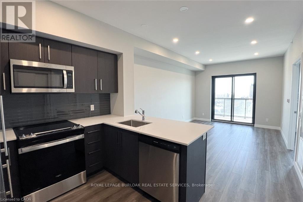 Downtown Hamilton's newest luxury condos with an urban design and offering incredible amenities. Welcome to Platinum Condos! This Brand New one bedroom, one bath unit features 9 ft ceilings, floor to ceiling windows, a bright open concept living room and kitchen with stainless steel appliances including Fridge, Stove, Built-in Microwave & Dishwasher, Convenient ensuite laundry with washer & dryer. One locker(#17) for storage. Large open balcony with clear lasting views of Lake Ontario and the Escarpment. Live a walkable lifestyle to downtown shops, restaurants & Cafes, Hess Village, Jackson Square, Go Station, minutes to McMaster University or Mohawk College. Amenities include a party lounge with kitchen, Fitness Studio, Landscaped Roof Top Terrace, Bike storage & retail below. Include rental application, credit check, confirmation of employment & references. No Pets, No Smoking. Minimum lease 1 year. Tenant pays utilities. No Pets, No Smoking. Minimum lease 1 year. Earliest Occupancy July 1st. Tenant pays all utilities (id:64974)