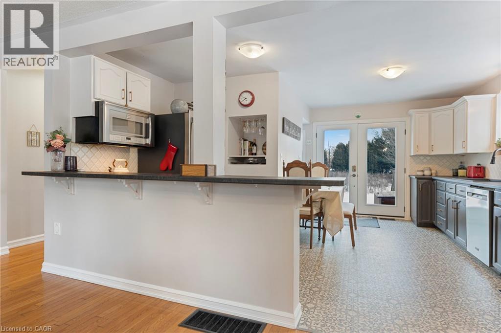Welcome to this meticulously maintained raised bungalow set on a beautifully private, 1-acre lot lined with mature cedar trees and surrounded by peaceful farmland. Situated ideally between Simcoe and Delhi just off Highway 3, the property features a separate workshop and a naturalized wildflower meadow—ideal for nature lovers seeking quiet country living. Step inside to find a bright, functional floorplan with hardwood flooring in the main living areas and bedrooms. The spacious eat-in kitchen offers a bright and inviting space with new vinyl flooring (2024), new fridge and stove (2022), and access to the yard through the new french patio door (2025). This home offers peace of mind with tons of recent upgrades, including; new heat pump (2025) front window and entry door (2022) bathroom refinished (2023) driveway regraded (2022) new water heater—owned (2022) septic pumped (2022). The partially finished basement featuring a separate exit is full of light and provides additional living potential—ideal for a future rec room, office, or guest suite. A rare blend of privacy, functionality, and thoughtful updates—this property is ready to move in and enjoy. (id:64974)