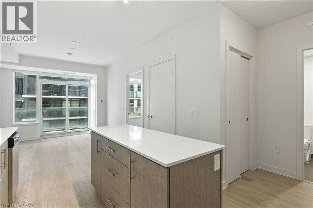 Experience stylish urban living at its finest in this beautiful Kiwi Condo, ideally located in the heart of downtown Hamilton. This vibrant community puts you just steps from shops, restaurants, entertainment, transit, and everything the city has to offer. The building is packed with upscale amenities, including a state-of-the-art gym and yoga studio, a welcoming concierge, a rooftop terrace with BBQs and sweeping city views, a dog wash station, mail room, and a spacious party room with fireplace and full kitchen—perfect for entertaining. Inside the unit, you’ll find a thoughtfully designed 1-bedroom, 1-bathroom layout with an airy open-concept kitchen and living area. The sleek, modern kitchen features stainless steel appliances, an island, and ample storage, while the living room flows effortlessly to a large private balcony through sliding glass doors. Convenience is key, with in-suite laundry and controlled entry for peace of mind. Parking is available at nearby municipal lots, making this property as practical as it is stylish. Whether you’re a first-time buyer, downsizer, or investor, this condo is the perfect opportunity to secure a slice of Hamilton’s thriving downtown lifestyle. (id:64974)