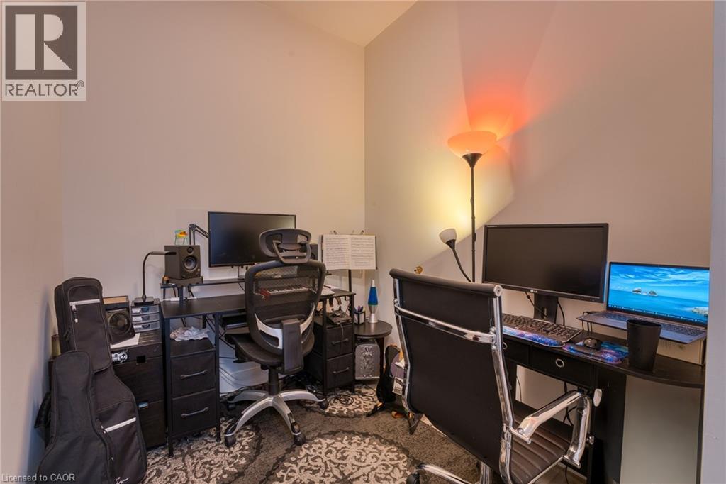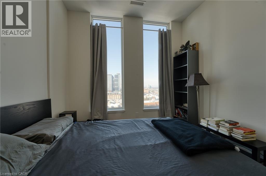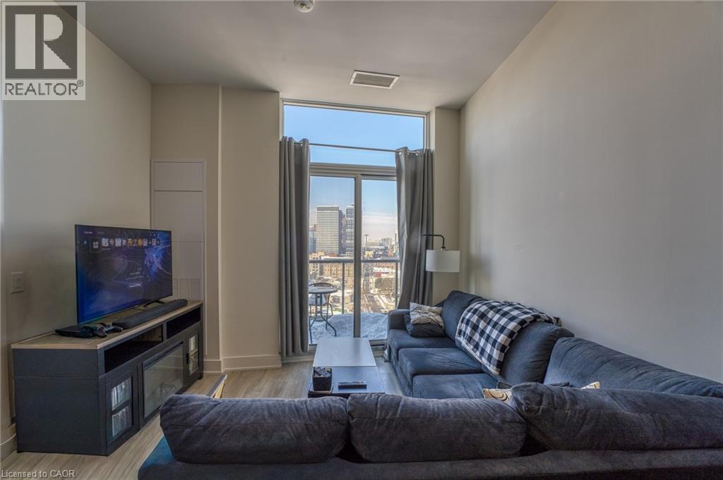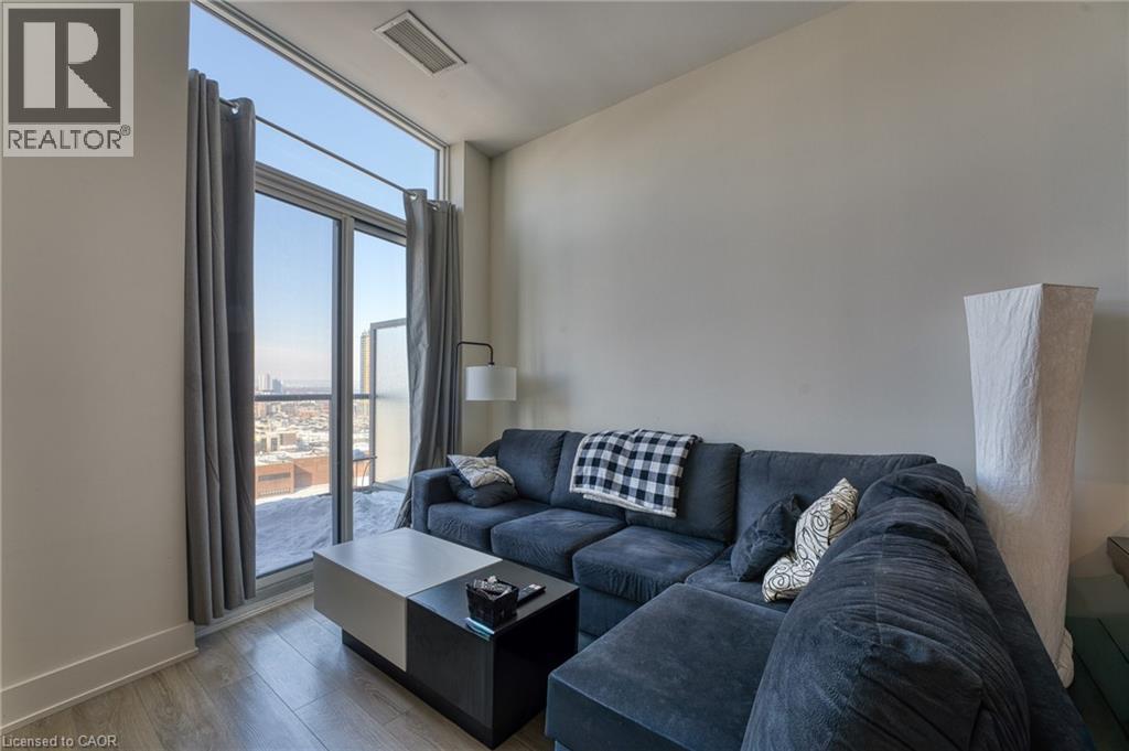Stunning top-floor one bedroom plus den condo in Hamilton's sought after Kiwi Condos! Kiwi is a top of the line building, offering a wide range of amenities including a fitness center, pet spa, rooftop terrace, and front desk security. This well appointed unit features sweeping west-facing views of the city. The kitchen offers quartz countertops, a functional island, and stainless steel appliances including a dishwasher. The versatile den is much larger than typical, making for a perfect home office space. The spacious bedroom comes equipped with large windows and a walk-in closet. Beautiful four piece bathroom features a sleek vanity and stylish shower/tub. Enjoy the comfort of in-unit controlled heating and air conditioning, and the convenience of in-suite laundry. The building is located within walking distance to a wealth of amazing local cafés, restaurants, and shopping options. Hamilton General Hospital, St. Joseph's Hospital, and the West Harbor GO Station are all minutes away. Tenant to pay hydro. (id:64974)