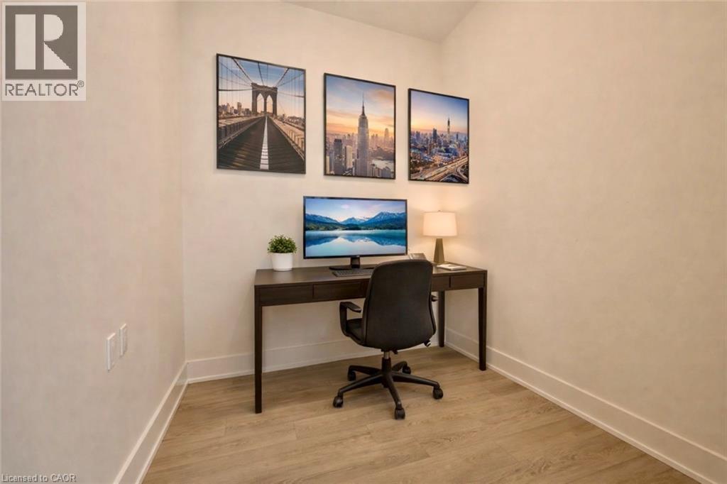 Stunning top-floor one bedroom plus den condo in Hamilton's sought after Kiwi Condos! Kiwi is a top of the line building, offering a wide range of amenities including a fitness center, pet spa, rooftop terrace, and front desk security. This well appointed unit features sweeping west-facing views of the city. The kitchen offers quartz countertops, a functional island, and stainless steel appliances including a dishwasher. The versatile den is much larger than typical, making for a perfect home office space. The spacious bedroom comes equipped with large windows and a walk in closet. Beautiful four piece bathroom features a sleek vanity and stylish shower/tub. Enjoy the comfort of in-unit controlled heating and air Conditioning, and the convenience of in-suite laundry. The building is located within walking distance to a wealth of amazing local cafés, restaurants, and shopping options. Hamilton General Hospital, St. Joseph's Hospital, and the West Harbor GO Station are all minutes away. Tenant to pay hydro. (id:64974)