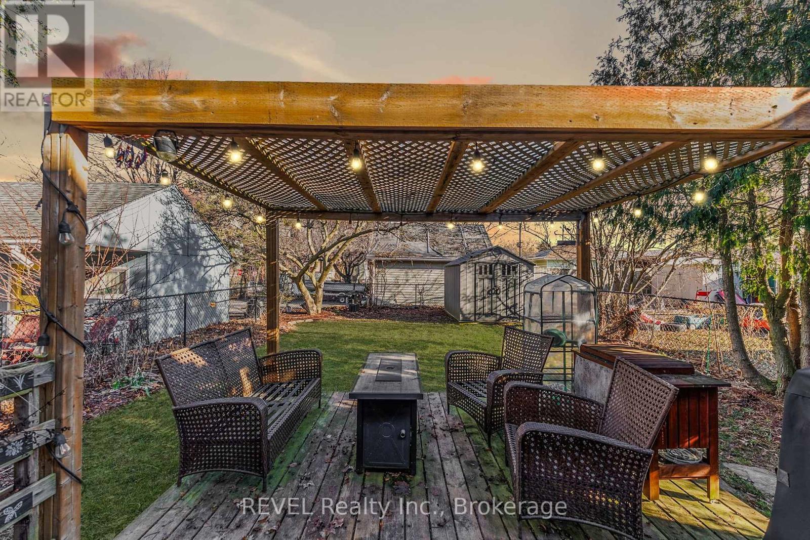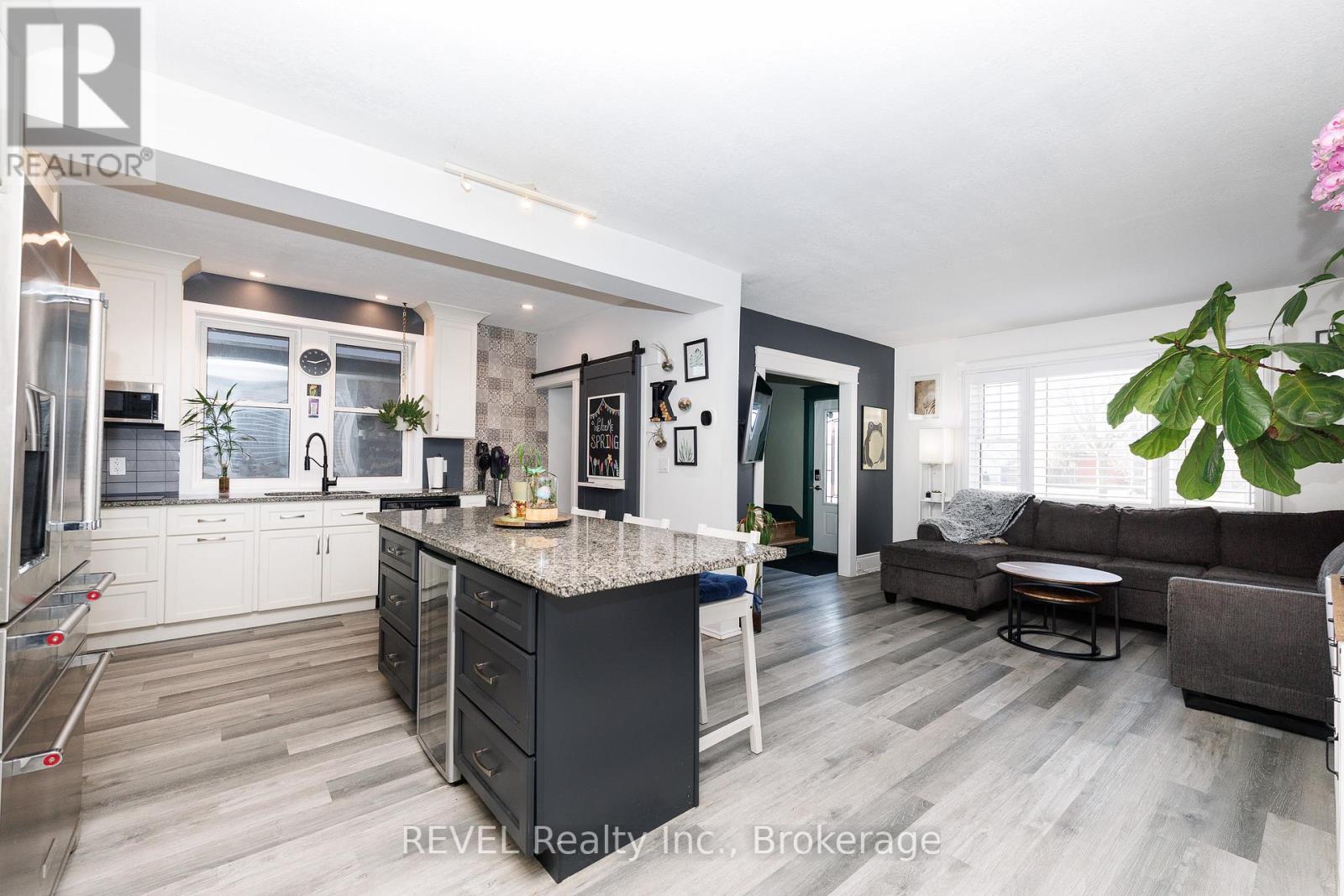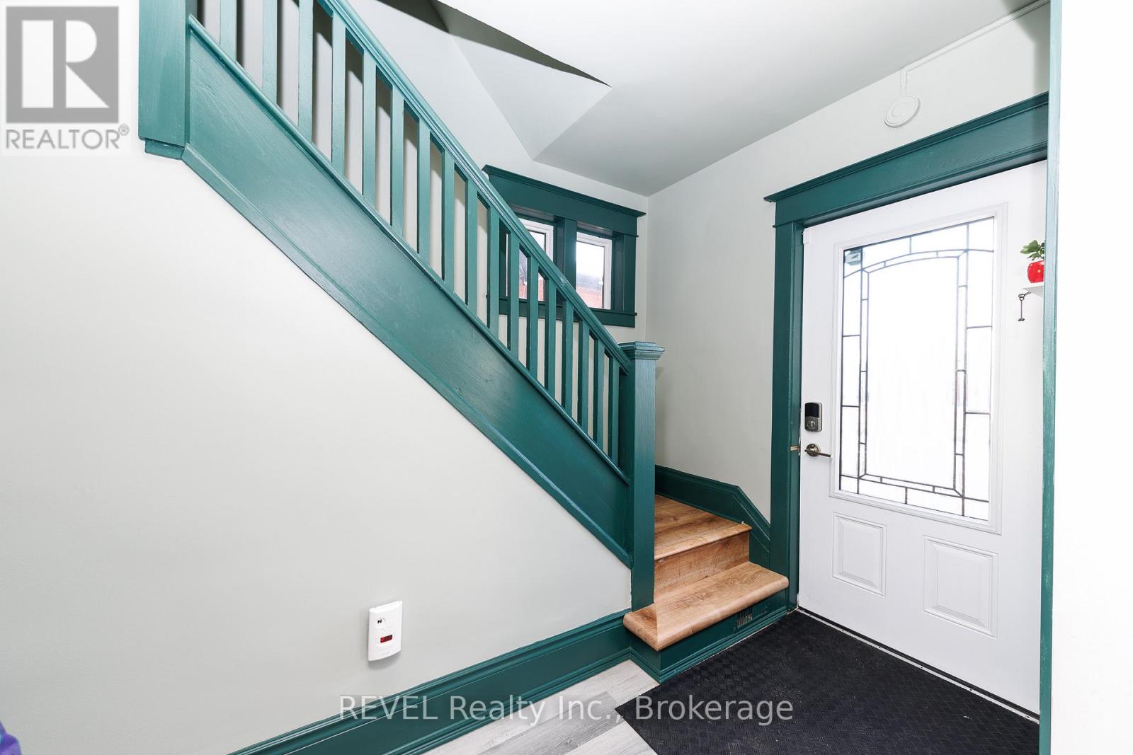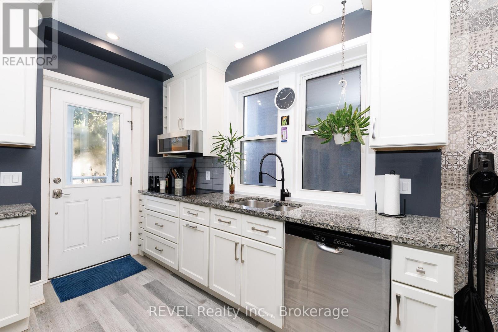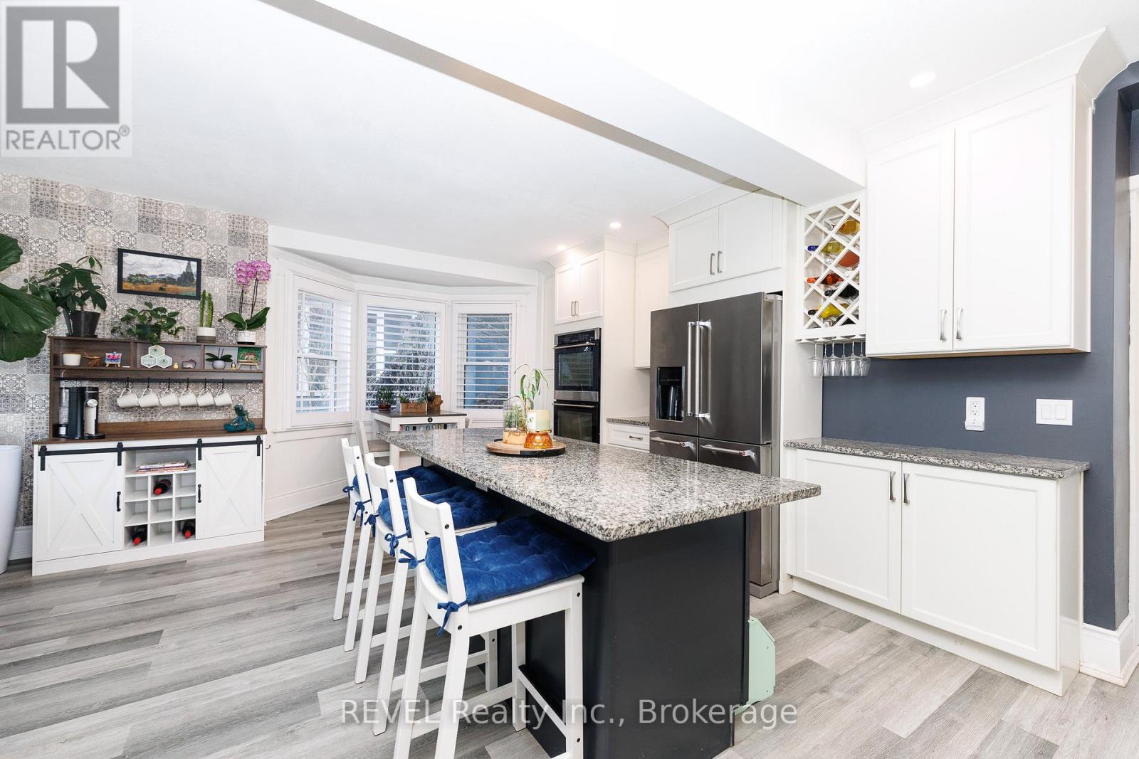 Solid all brick 2 story century home thats been updated throughout with a modern feel while conserving the character features throughout the home. This stunning century home includes 3 bedrooms, 2 full bathrooms, dry finished basement with rec room/ bar area, and another updated full bathroom with separate side-door entrance to basement. Fully fenced backyard oasis when all vegetation is in bloom with covered deck, 10x10 shed. When entering the home the completely renovated main floor has that modern open concept feel with living room/dining area leading you to a very spacious custom kitchen with island, granite countertops, double oven, high end appliances and soft close cupboards. California shutters, luxury vinyl flooring, beautiful 10" baseboards throughout with California ceilings, encased with crown molding are all sure to impress. The upper level has all new luxury vinly flooring throughout (2025) updated full bathroom, spacious bedrooms with closets. Main floor renos, roof, windows, furnace, A/C, HWT, and kitchen appliances updated in (2020). City sewer line updated from the road (2023) Washer/Dryer (2024). Great West Welland location close to ALL amenities and multiple schooling options for elementary and High School. Pupos Grocery-store is a short walk across the street. The perfect location to enjoy the community recreation waterway, splash pads and beautiful parks, lined with trails. House shows great and a must see you wont be disappointed! (id:64974)