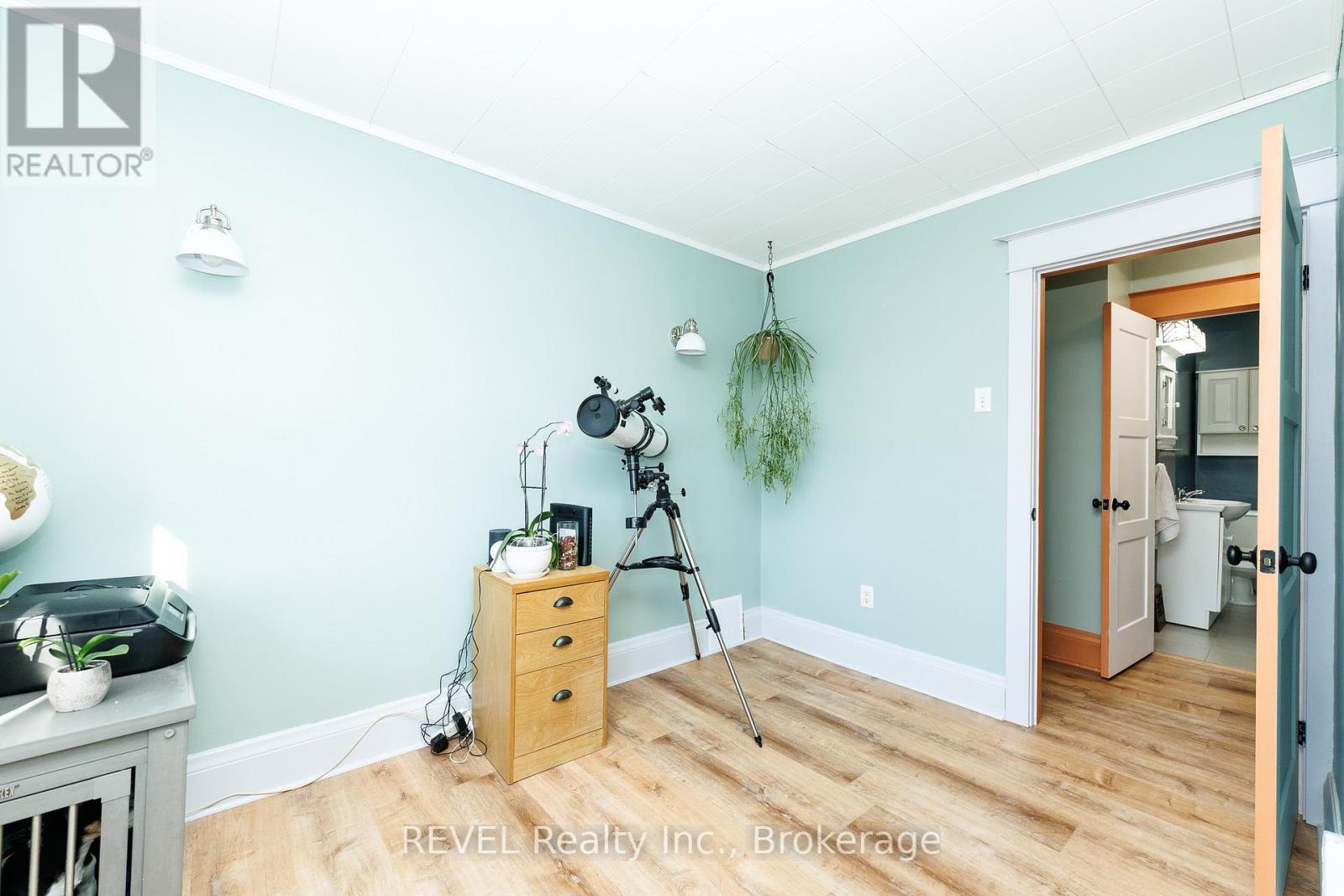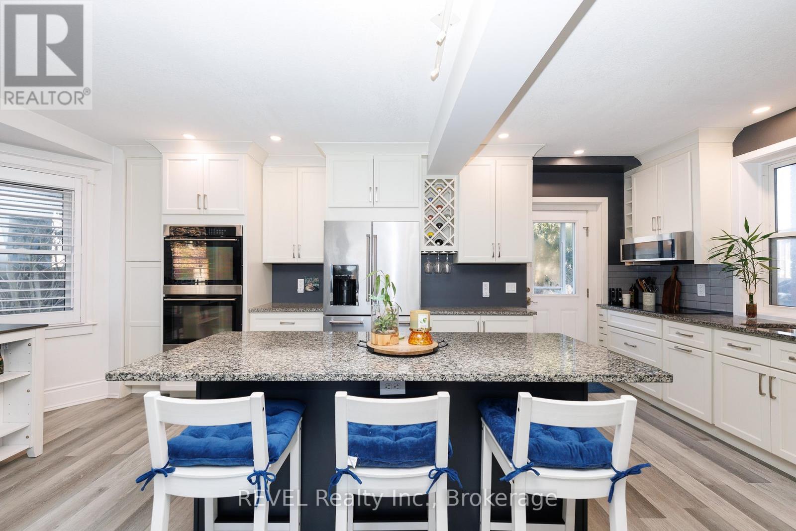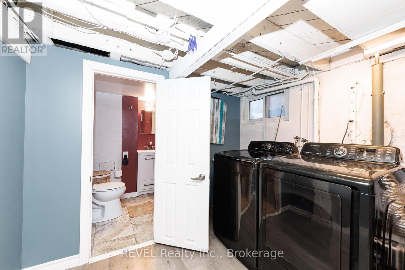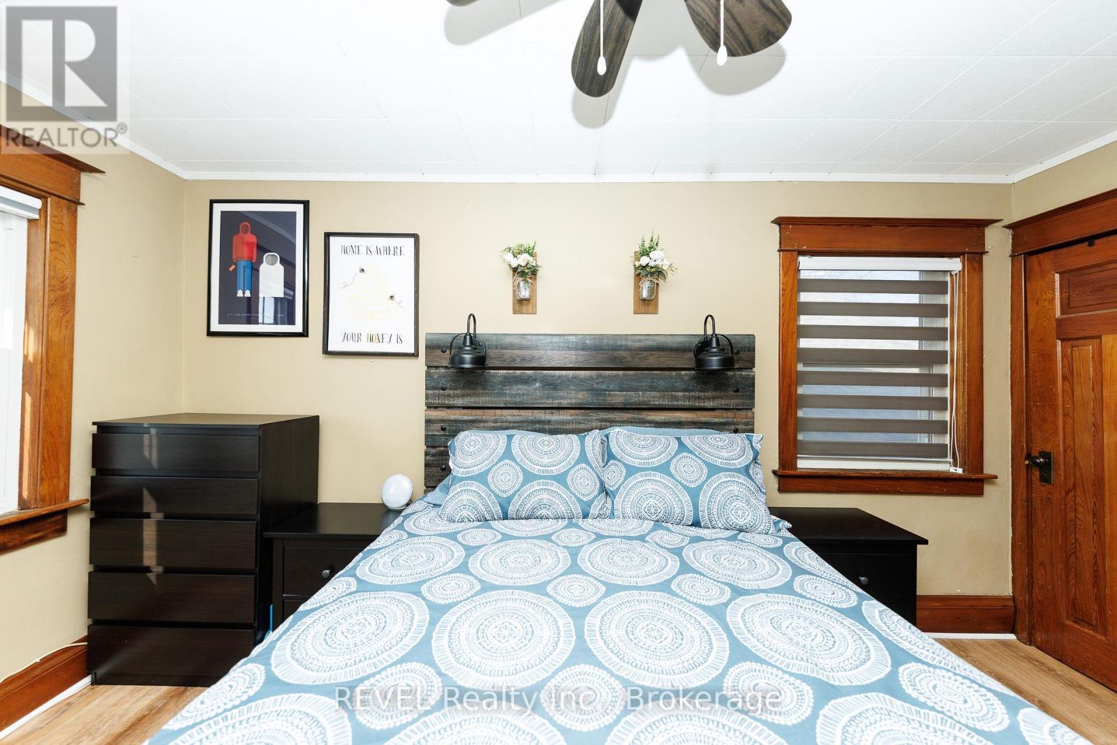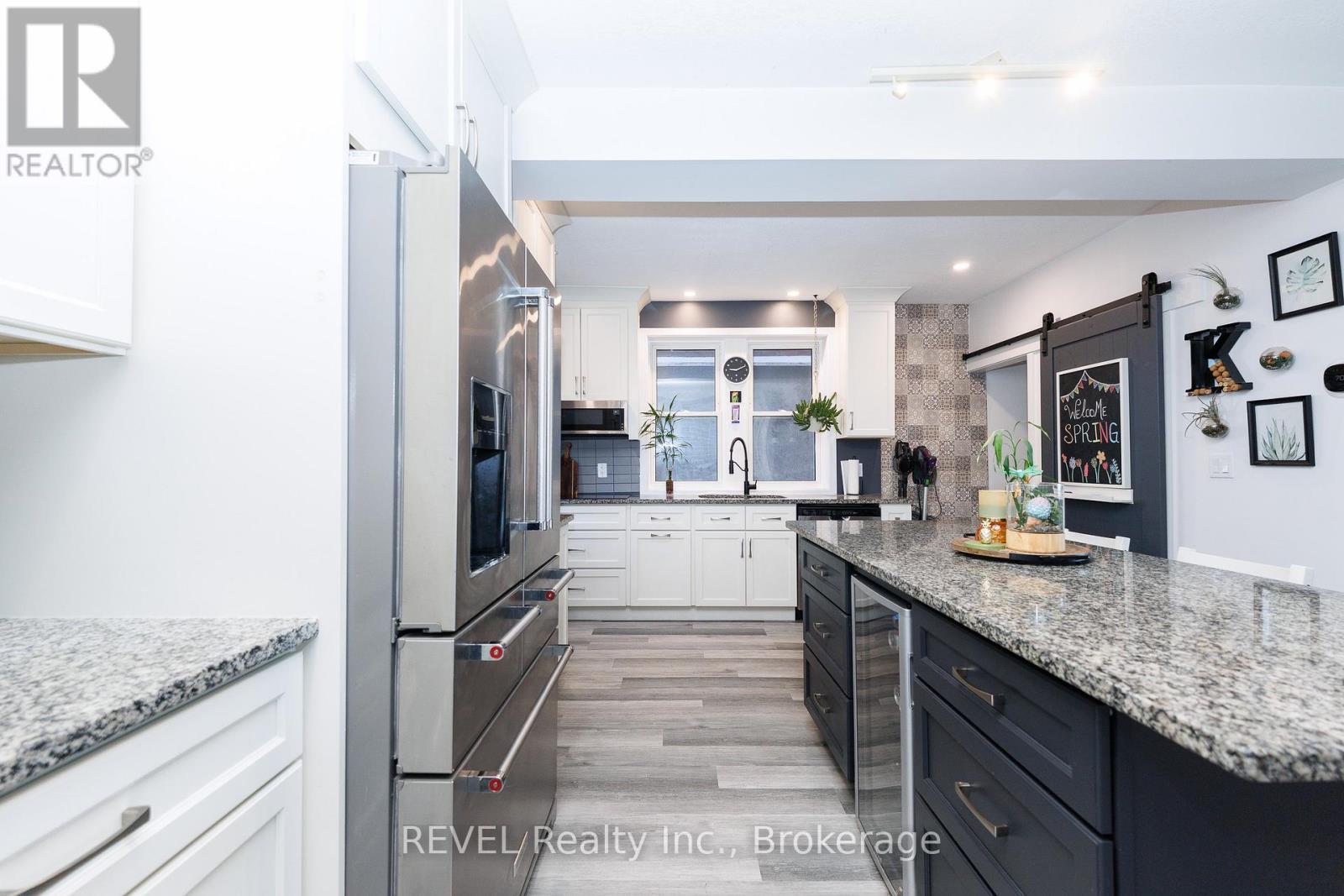 Solid all brick 2 story century home thats been updated throughout with a modern feel while conserving the character features throughout the home. This stunning century home includes 3 bedrooms, 2 full bathrooms, dry finished basement with rec room/ bar area, and another updated full bathroom with separate side-door entrance to basement. Fully fenced backyard oasis when all vegetation is in bloom with covered deck, 10x10 shed. When entering the home the completely renovated main floor has that modern open concept feel with living room/dining area leading you to a very spacious custom kitchen with island, granite countertops, double oven, high end appliances and soft close cupboards. California shutters, luxury vinyl flooring, beautiful 10" baseboards throughout with California ceilings, encased with crown molding are all sure to impress. The upper level has all new luxury vinly flooring throughout (2025) updated full bathroom, spacious bedrooms with closets. Main floor renos, roof, windows, furnace, A/C, HWT, and kitchen appliances updated in (2020). City sewer line updated from the road (2023) Washer/Dryer (2024). Great West Welland location close to ALL amenities and multiple schooling options for elementary and High School. Pupos Grocery-store is a short walk across the street. The perfect location to enjoy the community recreation waterway, splash pads and beautiful parks, lined with trails. House shows great and a must see you wont be disappointed! (id:64974)