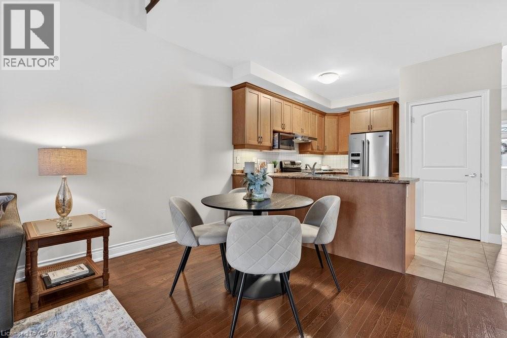Welcome to this beautifully upgraded bungaloft in Burlington's highly sought-after Tansley community, nestled within a quiet and well-maintained adult lifestyle enclave. Offering 3 bedrooms and 2.5 bathrooms, this thoughtfully designed home is perfect for downsizers seeking comfort, convenience, and low-maintenance living without compromising on space. The main level features a bright and inviting living area with rich maple hardwood flooring, complemented by elegant California ceilings that add a modern, refined touch. The upgraded kitchen features stainless steel appliances and maple cabinetry, offering both style and functionality. The kitchen peninsula overlooks the open-concept living and dining space, ideal for everyday living and entertaining. A spacious main floor primary suite offers ease of living, while the loft level provides additional flexibility with an extra bedroom and a bathroom, perfect for guests, a home office, or hobby space. Additional builder upgrades include an upgraded railing and banister, adding warmth and character throughout. Residents of this vibrant community enjoy access to the private clubhouse, featuring regular bingo nights, bridge, pool table, and a variety of card games, creating a welcoming social atmosphere. The clubhouse can also be reserved for private events. Located a quick walk from the Tansley Woods Recreation Centre, parks, trails, shopping, restaurants, and all major amenities. Enjoy the convenience of nearby grocery stores, medical services, and easy highway access, all within a peaceful, community oriented setting tailored to those seeking a relaxed and connected lifestyle. Don't miss this rare opportunity to enjoy refined, low maintenance living in one of Burlington's most desirable adult communities. Bell Fibe High Speed Internet & TV Service included in condo fee. (id:64974)